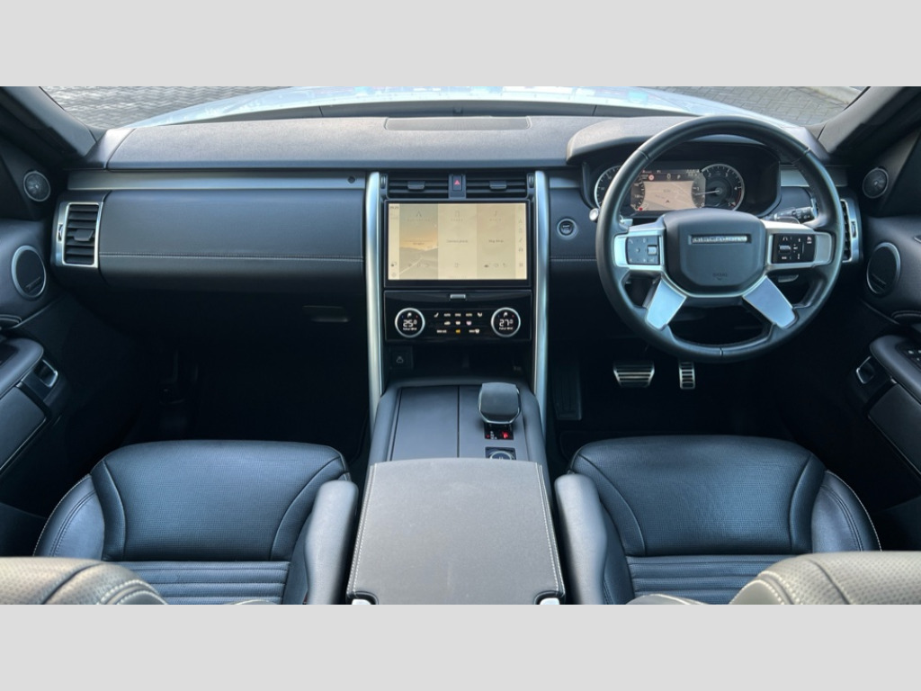 Land Rover Discovery 3.0 D300 R-Dynamic SE 5dr Auto 11.4" touchscreen, 3D surround camera, Adaptive cruise control, Android Auto, Apple car play, Blind spot assist, Driver condition monitor, Electric power assisted steering (EPAS), Emergency services call system, Front and rear parking aid, Lane keep assist, Power inner tailgate, Push button start, Rear collision monitor, Rear traffic monitor, Remote, Remote boot release, Service interval indicator, Speed proportional steering, Sportshift selector, Stop/start system, Traffic sign recognition with adaptive speed limiter, Trip computer, Wade Sensing, Adaptive dynamics, Dynamic stability control, Electronic air suspension, Front axle open differential, Digital Audio Broadcast radio-DAB, Dynamic volume control, Pivi pro connected, USB/aux input socket, Acoustic laminated windscreen, Animated directional indicators, Auto dimming interior rear view mirror, Automatic headlight levelling, Automatic headlights, Body colour bumpers, Body colour door handles, Centre high mounted stop light, D300 badge, Electric heated/power fold memory door mirrors with approach lights and auto dimming driver side, Electric windows with one touch open/close and anti-trap, Heated rear window, Heated windscreen, LED darkend tail lights, Metal treadplates with R-Dynamic branding, Narvik black Discovery script, Privacy glass, Puddle lights, Rain sensing windscreen wipers, Rear fog lights, Rear side wing doors, Rear wash/wipe, Trailer stability assist, Variable intermittent wiper, 12V power sockets, 12V USB charging socket in loadspace, 2 seat bench in 3rd row, 3 seat bench in 2nd row, Central hinged twin lidded storage, Ebony morzine headlining, First and second row door bins, Footwell lights, Front and rear 12V with front USB, Front passenger seat isofix location point, In-facia storage, Isofix child seat preparation for front passenger seat, Loadspace cover, Loadspace Hook, Loadspace light, Lockable glovebox, Lower centre console storage, Luggage tie downs in loadspace, Multi function steering wheel, Overhead lighting console, Premium carpet mats, Rear ISOFIX, Shopping bag hook, Single front passenger seat, Storage glovebox, Sunvisors with illuminated vanity mirrors, Third row storage, Twin front cupholders with cover, USB with 12V socket in centre console, Online pack with data plan - Discovery, R-Dynamic black exterior pack - Discovery, 3x3 point rear seatbelts, Anti-lock braking system (ABS), Brake pre-fill technology, Cornering brake control, Curtain airbags, Customer configurable autolock, Driver and passenger airbags, EBD - Electronic brakeforce distribution, Electronic traction control, Emergency brake assist, Emergency braking, ESP, Front side airbags, Gradient acceleration control, Hill descent control, Hill launch assist, Power operated child locks, Rear airbags, Roll stability control, Seat belt reminder, Torque vectoring brake, Tyre pressure monitoring system, Immobiliser, Intrusion sensor, Keyless entry, Locking wheel nuts, Remote central locking, All terrain tyres