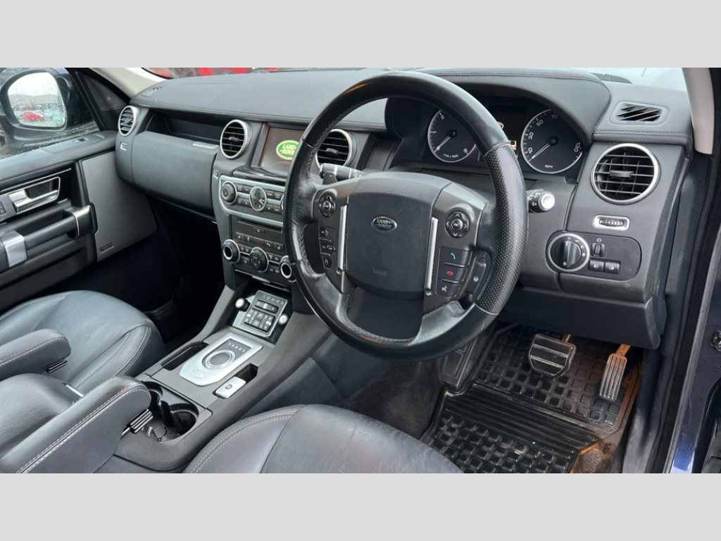 Land Rover Discovery 3.0 SDV6 HSE Luxury 5dr Auto Bluetooth telephone connectivity, Cruise control, Front park distance control, PAS, Premium navigation including voice and TMC with touch screen, Rear park distance control, Rear view camera, Trip computer, Active roll mitigation, Diesel particulate filter, Electronic air suspension/variable ride height, Terrain Response, DAB Digital radio, Digital TV, Meridian audio system with radio/single cd player/MP3/825W amp + 17 speakers, Rear seat DVD entertainment system, Steering wheel mounted audio controls, USB/iPod connection, 'Global' closing of front/rear windows, Bi-xenon adaptive headlights, Body colour bumpers, Body colour rear applique panel, Body colour tailgate handle, Body coloured wheel arches, Daytime running lights, Electric front sunroof and fixed rear glass, Electric heated + adjustable door mirrors, Extended roof rails, Front and rear electric windows, Heated windscreen + washer jets, Power foldback door mirrors, Tailgate wash/wipe, Accessory socket in rear, Auto climate control, Complex 35/30/35 2nd row seat, Cup holders, Driver and front passenger leather armrests, Electric height/reach adjustable steering column, Front and rear premium carpet mats, Front headrests, Heated leather steering wheel, Heated seats front and rear, Illuminated vanity mirrors, Interior mood lighting, Isofix, Loadspace cover, Luggage net, Parking heater, Rear headrests, Split fold rear seat (65/35), Third row map lights, Bright pack - Discovery, Extended leather pack - Discovery, Windsor leather pack - Discovery, ABS + EBD + EBA, Cornering brake control (CBC), Curtain airbags, Driver/Front Passenger airbags, DSC - Dynamic Stability Control, Electronic parking brake, Electronic traction control, Electronic tyre pressure monitoring, Front and rear head airbags, Gradient acceleration control, Hill descent control, Hill start assist, Roll stability control, Seatbelt warning, Electric steering column lock, Engine immobiliser, Keyless smart entry with push button start, Locking wheel nuts, Remote locking, Volumetric anti theft alarm, Full size alloy spare wheel