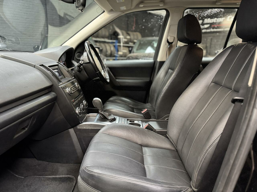 ++TWO SETS OF KEYS++MOT FOR 12 MONTHS++MASSIVE SPEC++COMPETITIVE FINANCE AVAILABLE++6 MONTHS NATIONWIDE WARRANTY AND BREAKDOWN COVER INCLUDED++ Looking for a ride with style and smarts? This Land Rover Freelander SD4 is a fantastic example – well cared for, freshly MOT’d (12 months!), and packed with high-spec features.Top Features Include:Luxurious leather interior Sleek screen display Electric seats, mirrors, and windows for that touch of convenience Bluetooth connectivity – stay connected on the move A stunning finish in Santorini Black Metallic Over £900 in Added Extras, including:Metallic paint upgrade Clearview Pack: Headlamp washers + front fog lamps Body side mouldings for extra style and protection Santorini black metallic Comes with a 6-month nationwide warranty AND breakdown cover – peace of mind from day one. Finance? We’ve Got You Covered!We offer competitive rates and flexible finance options, including HP and PCP deals. As FCA-regulated, licensed credit brokers, we’re ready to tailor a package that suits your budget. Part Exchange Welcome!Trading in? Let us give you a fair and fast valuation – just give us a call. Call Our Friendly Sales Team Today: 0131 344 4675We’re here to help with finance, part exchange, or just to answer any questions. Nationwide Delivery Available Credit & debit cards acceptedDon’t miss out – this Freelander is ready to hit the road. Contact us now and make it yours!SHOULD YOU REQUIRE ANY FURTHER DETAILS PLEASE DO NOT HESITATE TO CONTACT US ON 0131 344 4675. 5in colour display, 8 speakers, Audio system - Auxillary Socket with MP3 Compatibility, Audio System - DAB, Auxiliary Power Sockets 12v - Front, Auxillary Power Sockets - Rear and Load Space, Bluetooth Telephone Connectivity, Land Rover Audio System - 80w with 8 Speakers and 5in colour display, USB Connectivity, Cruise Control, Driver Information System, Parking Aid - Rear, Terrain Response, 17in 6-spoke alloy wheels Style 1, Antenna - side window glass - tailgate glass for FM and VICS/TMC, Door Handles - Black, Electric Windows - Front and Rear with Drivers and Front Passengers One Touch Open/Close, Exterior Mirrors - Electric adjustment - Heated and Power Folding, Grille with Bright Finisher, Land Rover - Tyre Repair System, Locking Wheel Nuts, Rear Bumper - Part Body Colour, Rear Window Wash-Wipe System with Intermittent Function, Side Power Vents - Titan Finish, Signature Strip with Bright Insert, Tailpipes - Single, Daytime Running Lights, Headlights - Halogen with LED Signature Lights, Air Filtration, Auxiliary Heater - Electrical Positive Temperature Coefficient, Centre console - Covered Storage Compartment, Climate Control - Automatic with Air Filtration, Diesel Misfuelling Protection Device, Leather Steering Wheel, Lumbar Support, Roller Blind Luggage Cover, Seats - 60/40 Split, Seats - Driver Manual Height Adjustment, Seats - Heated - Driver and Front Passenger, Seats - Rear Centre Head Restraint, Soft feel paint on interior door grabs, Steering Column - Manual For Height and Reach Adjustment, Steering Wheel Mounted Audio Controls, Power Assisted Steering, Airbags - Driver and Passenger Side, Airbags - Driver Knee, Airbags - Full Size Driver, Airbags - Full Size Passenger, Airbags - Row One and Two Head Curtain, Alarm System - Perimetric, All-Terrain ABS - Anti-Lock Braking System, CBC - Cornering Brake Control, DSC - Dynamic Stability Control, EBA - Emergency Brake Assist, EBD - Electronic Brake-Force Distribution, EPB - Electronic Park Brake, ETC - Electronic Traction Control, HDC - Hill Descent Control, ISOFIX Child Seat Anchor Points, Rear Child Seat Top Tethers, Remote Central Locking, RSC - Roll Stability Control, Seat belts - front pre-tensioners with load limiters.