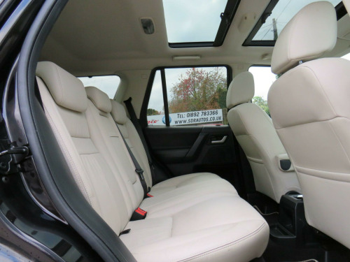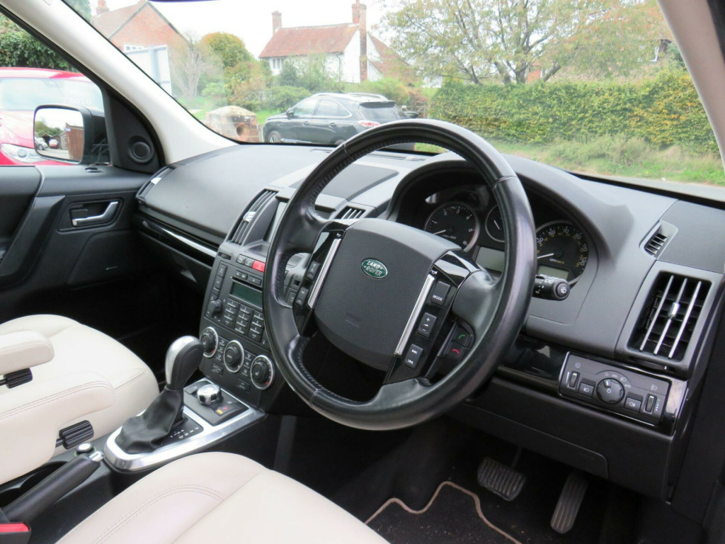 EXCELLENT EXAMPLE OF A FREELANDER 2 HSE WITH THE RELIABLE 2.2 SD4 ENGINE, FINISHED IN 'BAROLO BLACK', WHICH BOASTS: JUST 1 OWNER FROM NEW, FULL SERVICE HISTORY, SERVICED AT: 15K, 30K, 40K, 50K, 58K, 64K, 70K, 75K, 80K, 92K, 105K & 111K, CAM BELT & WATERPUMP REPLACED AT 111K, 12 MONTHS MOT INCLUDED, 19'' ALLOY WHEELS, FULL IVORY LEATHER INTERIOR, HEATED SEATS, ELECTRICALLY ADJUSTABLE SEATS, SUN ROOF, PRIVACY GLASS, FRONT & REAR PARKING SENSORS, ELECTRIC FOLDING WING MIRRORS, AUTOMATIC HEADLIGHTS, XENON LIGHTS, ALPINE SOUNDSYSTEM, SATELLITE NAVIGATION, AIR CONDITIONING, RAIN SENSING WIPERS, CRUISE CONTROL, BLUETOOTH PHONE CONNECTION, MULTIFUNCTION STEERING WHEEL, REMOTE CENTRAL LOCKING, 2 KEYS AND MUCH MORE, THIS FREELANDER IS IN EXCELLENT CONDITION & DRIVES SUPERBLY, MUST BE SEEN & DRIVEN, ***PLEASE VISIT OUR WEBSITE FOR MORE VEHICLES*** * ALL OF OUR VEHICLES COME WITH WARRANTY * PART EXCHANGE WELCOME* CALL MOBILE ANYTIME: 07775568545, adlights - xenon with washers and front fog lights, 19in 10-spoke alloy wheels - diamond turned with contrast paint style 2, 19in 10spoke diamond turned alloy wheels, 19in alloy spare wheel, glass - privacy - rear of b post, privacy glass to rear of b post, spare wheel - full size alloy, finish - grand black lacquer, leather- windsor- ivory & ebony & premium pack & 8way driver & 6way passenger electric seat adjustment, windsor leather - ivory, 18in 10spoke sparkle silver finish alloy wheels, 18in alloy wheels - 10-spoke sparkle silver, airbags - driver knee, airbags - full size driver, airbags - full size passenger, airbags - row one and two head curtain, airbags - driver and passenger head and rear outboard passenger, alarm system - perimetric, all-terrain abs - anti-lock braking system, armrest - rear centre with storage compartment and 2 cupholders, audio system - alpine branded dolby prologic 7.1 surround sound with radio and 6 disc cd player, audio system - dab, audio system - auxillary socket with mp3 compatibility, automatic headlights, auxillary power sockets - front-rear and load space, black metallic trim, bluetooth telephone connectivity, cbc - cornering brake control, carpet mat set - front and rear, clearview pack, climate control - automatic with air filtration and air quality sensing for automatic recirculation, cold climate pack, cruise control, dsc - dynamic stability control, dark chestnut wood trim, design pack, door mirrors - electrically adjustable - heated and power folding with memory function, driver and passenger armrest, eba - electronic brake assist, eba - emergency brake assist, ebd - electronic brake-force distribution, electric windows - front and rear with drivers and front passengers one touch open/close, electric drivers seat adjustment, four electric windows with one touch opening, front fog lights, front&rear carpet mats, headlight power wash, headlights - halogen and manual levelling, heated front seats, isofix child seat anchor points, interior rear view mirror - auto dimming with humidity sensor, lacquered piano black steering wheel, leather steering wheel, memory function - with three settings for drivers seat and exterior mirrors, navigation system - dvd with full colour 7in touch screen, parking aid - front, parking aid - rear, push button start, rsc - roll stability control, rain sensing windscreen wipers, rear window wash-wipe system with intermittent function, remote audio controls, remote central locking, roller blind luggage cover, satin silver metallic trim, seats - 60/40 split, seats - rear centre head restraint, spoiler - tailgate mounted, steering wheel mounted audio controls, sunroof - electric - sliding front glass, tyre repair kit, veneer - dark chestnut, windscreen - heated, windscreen wash-wipe system with variable intermittment function, windscreen washer jets - heated