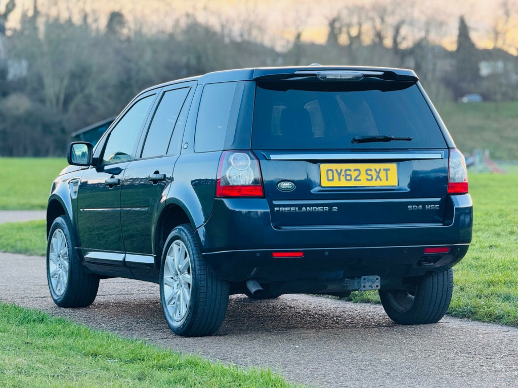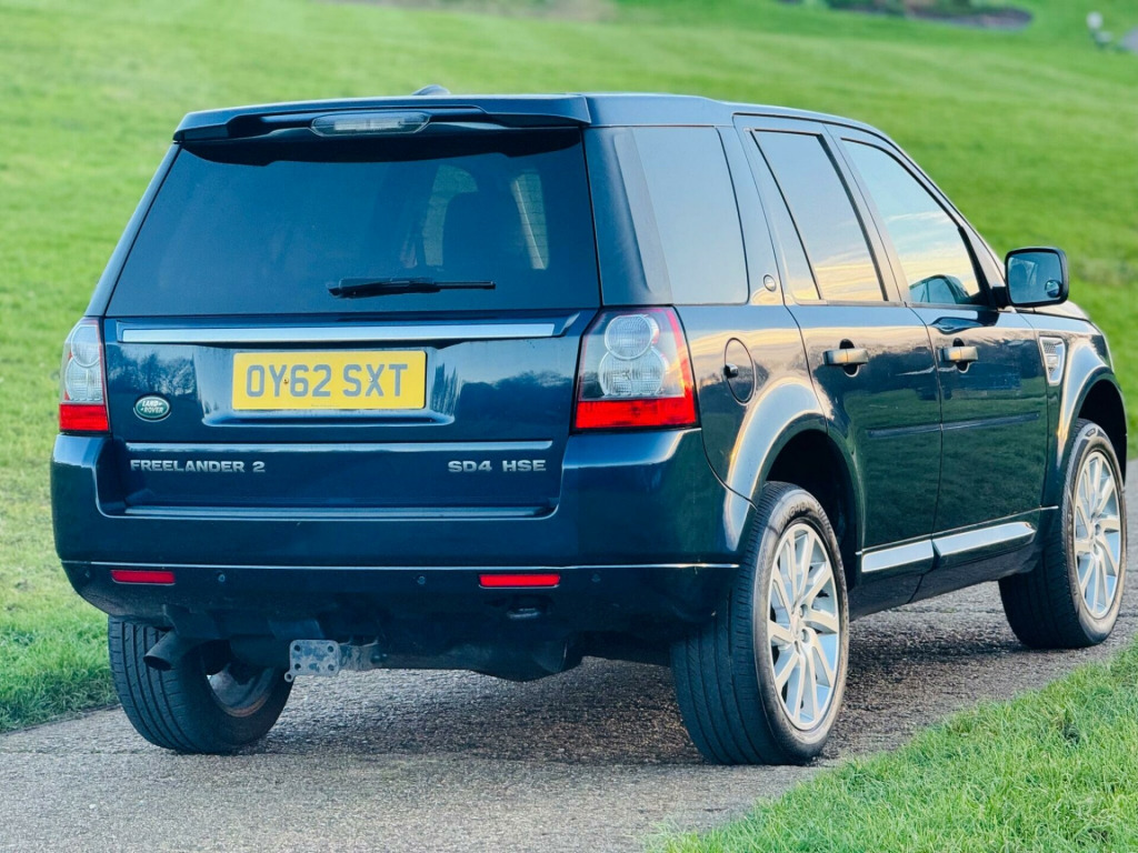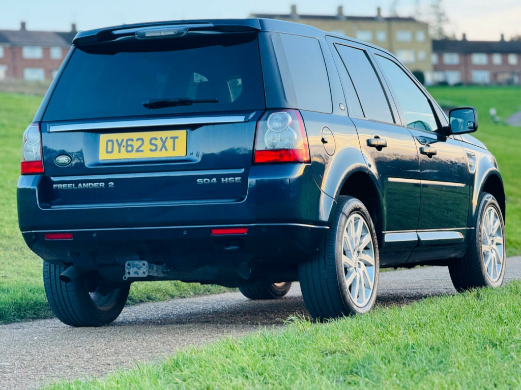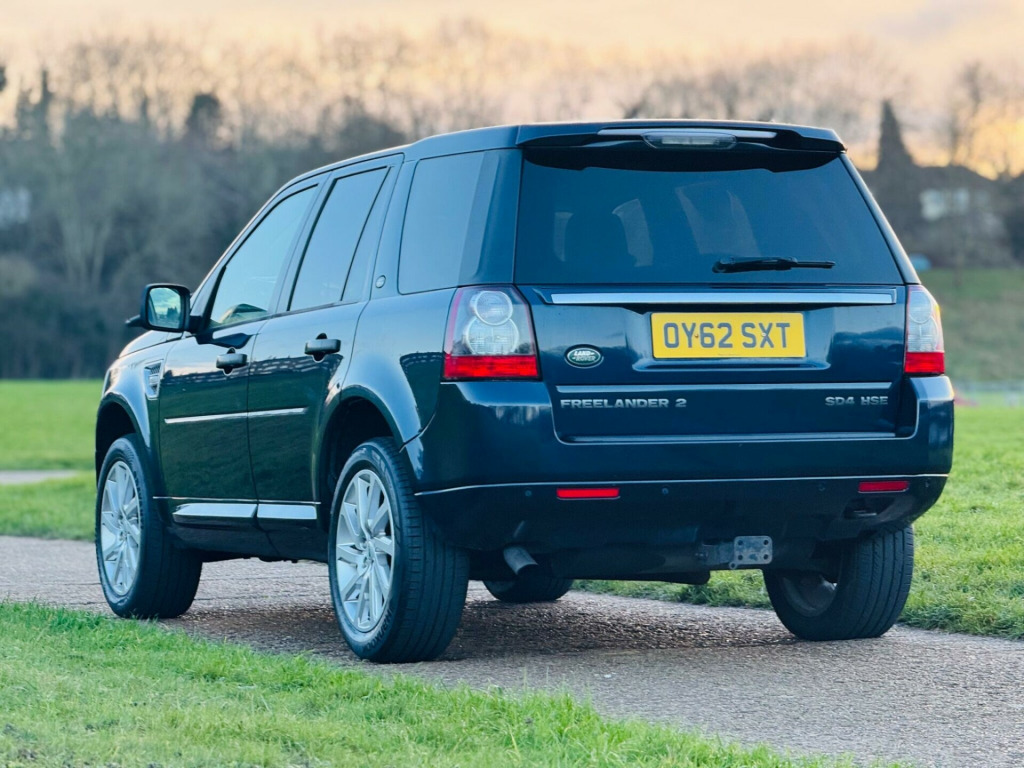 Stunning Freelander in beautiful condition and drives fabulous and low mileage This 2012 Land Rover Freelander 2 SD4 HSE is a standout example with remarkably low mileage for its age, having covered just 84,000 miles. As a capable Four Wheel Drive model, it features a robust 2.2 litre diesel engine, offering a compelling blend of performance and efficiency. The HSE trim level ensures a premium experience, enhanced by desirable features such as front and rear parking aids with sensors for effortless manoeuvring, and heated front seats for added comfort during colder journeys. Stay connected on the go with Bluetooth telephone connectivity, and enjoy the open air with the electric sliding front glass sunroof.The Freelander 2 SD4 HSE offers several advantages that set it apart from other vehicles in its class. Its impressive acceleration, reaching 0 to 60mph in just 8.7 seconds, demonstrates its strong performance capabilities. Furthermore, its low insurance group rating means potentially lower running costs, making it an economical choice. The generous boot space provides ample room for luggage, shopping, or outdoor equipment, highlighting its practicality for everyday use and adventures alike. in 10spoke sparkle silver finish alloy wheels, 18in alloy wheels - 10-spoke sparkle silver, airbags - driver knee, airbags - full size driver, airbags - full size passenger, airbags - row one and two head curtain, airbags - driver and passenger head and rear outboard passenger, alarm system - perimetric, all-terrain abs - anti-lock braking system, armrest - rear centre with storage compartment and 2 cupholders, audio system - alpine branded dolby prologic 7.1 surround sound with radio and 6 disc cd player, audio system - dab, audio system - auxillary socket with mp3 compatibility, automatic headlights, auxillary power sockets - front-rear and load space, black metallic trim, bluetooth telephone connectivity, cbc - cornering brake control, carpet mat set - front and rear, clearview pack, climate control - automatic with air filtration and air quality sensing for automatic recirculation, cold climate pack, cruise control, dsc - dynamic stability control, dark chestnut wood trim, design pack, door mirrors - electrically adjustable - heated and power folding with memory function, driver and passenger armrest, eba - electronic brake assist, eba - emergency brake assist, ebd - electronic brake-force distribution, electric windows - front and rear with drivers and front passengers one touch open/close, electric drivers seat adjustment, four electric windows with one touch opening, front fog lights, front&rear carpet mats, headlight power wash, headlights - halogen and manual levelling, heated front seats, isofix child seat anchor points, interior rear view mirror - auto dimming with humidity sensor, lacquered piano black steering wheel, leather steering wheel, memory function - with three settings for drivers seat and exterior mirrors, navigation system - dvd with full colour 7in touch screen, parking aid - front, parking aid - rear, push button start, rsc - roll stability control, rain sensing windscreen wipers, rear window wash-wipe system with intermittent function, remote audio controls, remote central locking, roller blind luggage cover, satin silver metallic trim, seats - 60/40 split, seats - rear centre head restraint, spoiler - tailgate mounted, steering wheel mounted audio controls, sunroof - electric - sliding front glass, tyre repair kit, veneer - dark chestnut, windscreen - heated, windscreen wash-wipe system with variable intermittment function, windscreen washer jets - heated, ashtray - front with cigar lighter, leather- napoli 6way driver 4way passenger electric seat adjustment & front&rear armrests