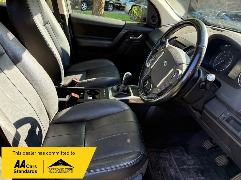JUST ARRIVED THIS FANTASTIC LOVELY EXAMPLE OF A 2014/63 LANDROVER FREELANDER 2.2 TD4 GS FINISHED IN METALLIC BLACK WITH FULL UNMARKED BLACK LEATHER INTERIOR WITH ONLY 97,000 MILES AND BEING A GS MODEL IT HAS A LOVELY SPEC INDEED , 6 SPEED MANUAL DIESEL IT DOES AN AMAZING 50 MILES PER GALLON + , REALLY GENUINE LOVELY EXAMPLE INDEED AND A PLEASURE TO DRIVE AND GREAT VALUE VEHICLE , HIGHLY RECOMMEND THIS ONE GUYS WVEN COMES WITH NEW MOT AND 12 MONTHS PARTS AND LABOUR WARRANTY INCLUDED EXTENDABLE UPTO 36 MONTHS !!PLEASE CALL TO RESERVE ASAP RAN CARS AND COMMERCIALS LIMITED in 6-spoke alloy wheels style 1, antenna - side window glass - tailgate glass for fm and vics/tmc, door handles - black, electric windows - front and rear with drivers and front passengers one touch open/close, exterior mirrors - electric adjustment - heated and power folding, grille with dark finisher, land rover - tyre repair system, locking wheel nuts, rear bumper - part body colour, rear window wash-wipe system with intermittent function, side power vents - titan finish, signature strip with bright insert, tailpipes - single, 5in colour display, 8 speakers, audio system - dab, audio system - auxillary socket with mp3 compatibility, auxiliary power sockets 12v - front, auxillary power sockets - rear and load space, bluetooth telephone connectivity, land rover audio system - 80w with 8 speakers and 5in colour display, usb connectivity, air filtration, auxiliary heater - electrical positive temperature coefficient, centre console - covered storage compartment, climate control - automatic with air filtration, diesel misfuelling protection device, leather steering wheel, lumbar support, roller blind luggage cover, seats - 60/40 split, seats - driver manual height adjustment, seats - heated - driver and front passenger, seats - rear centre head restraint, soft feel paint on interior door grabs, steering column - manual for height and reach adjustment, steering wheel mounted audio controls, airbags - driver knee, airbags - driver and passenger side, airbags - full size driver, airbags - full size passenger, airbags - row one and two head curtain, alarm system - perimetric, all-terrain abs - anti-lock braking system, cbc - cornering brake control, dsc - dynamic stability control, eba - emergency brake assist, ebd - electronic brake-force distribution, epb - electronic park brake, etc - electronic traction control, hdc - hill descent control, isofix child seat anchor points, rsc - roll stability control, rear child seat top tethers, remote central locking, seat belts - front pre-tensioners with load limiters, cruise control, driver information system, parking aid - rear, power assisted steering, terrain response, daytime running lights, headlights - halogen with led signature lights