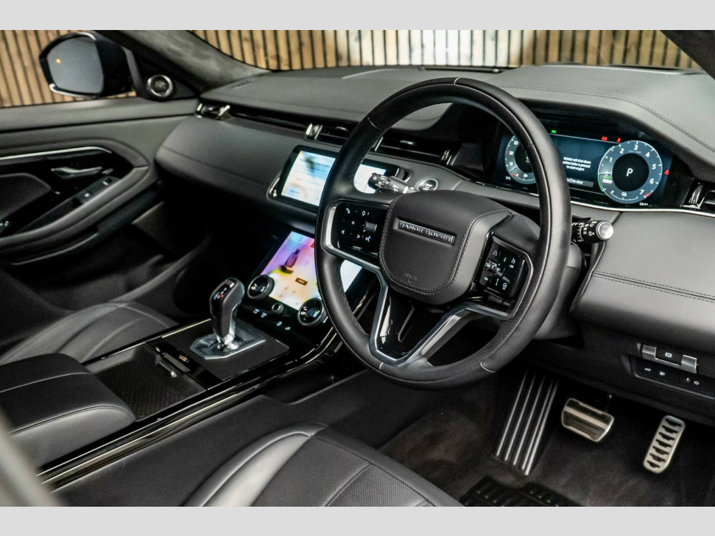 This 2023 Land Rover Range Rover Evoque P300e Autobiography is a superb example, having had only one owner since new. This sophisticated model boasts a 1.5 litre petrol plug in hybrid engine paired with Four Wheel Drive, ensuring both efficiency and capability. As a Euro 6 compliant vehicle, it meets stringent emission standards. Inside, you'll find luxurious 14 way heated and cooled electric seats with driver memory and 2 way manual headrests, alongside convenient Bluetooth connectivity and wireless device charging. For added safety and ease, it features blind spot assist and keyless entry.The performance of this Evoque is truly impressive, accelerating from 0 to 60 miles per hour in just 6.1 seconds. This quick acceleration demonstrates its advanced engineering and offers a more dynamic driving experience compared to many other vehicles in its class. The Autobiography trim level signifies a high standard of refinement and technology, making this Range Rover Evoque a compelling choice for those seeking a premium and capable SUV.. 10in Deployable Touchscreen with Lower Touchscreen, 14-Way Heated and Cooled Electric Seats with Driver Memory and 2-Way Manual Headrests, 40-20-40 Folding Rear Seats, ABS - Anti Lock Braking System, ACC - Adaptive Cruise Control, ATPC - All Terrain Progress Control, All Season Tyres, Ambient Interior Lighting, Android Auto, Animated Directional Indicators, Apple CarPlay, Approach Lights, Autobiography Badge, Autobiography Exterior Pack, Automatic Headlight Levelling, Automatic Headlights, Blind Spot Assist, Bluetooth Connectivity, Body Coloured Roof, Brake Pad Wear Indicator, Bright Metal Pedals, ClearSight Interior Rear View Mirror, Configurable Dynamics, Customer Configurable Autolock, DAB - Digital Audio Broadcast, DSC - Dynamic Stability Control, Driver Condition Monitor, EBA - Emergency Brake Assist, EBD - Electronic Brake-Force Distribution, EPAS - Electronic Power Assisted Steering, ETC - Electronic Traction Control, Electric Parking Brake, Electric Windows with One-Touch Open-Close and Anti-Trap, Electrically Adjustable Steering Column, Emergency Braking, Evoque Badge, Fixed Panoramic Roof Including Powered Blind, Flush Deployable Door Handles, Front and Rear Parking Aid, Full Extended Leather Upgrade, HDC - Hill Descent Control, Headlining - Ebony Suedecloth, Heated Electric Power Fold Door Mirrors with Approach Lights and Auto-dimming Driver Side, Heated Rear Window with Timer, Hill Launch Assist, Home Charging Cable, Illuminated Metal Treadplates with Brand-Name Script, Interactive Driver Display, Intrusion Sensor, Keyless Entry, Lane Keep Assist, Locking Wheel Nuts, Low Traction Launch, Matrix LED Headlights with Signature DRL, Meridian Surround Sound System, Natural Grey Ash Veneer, Online Pack with Data Plan, Overhead Lighting Console, Overhead Stowage for Sunglasses, P300e Badge, Passive Front Headrests, Passive Suspension, Perforated Full Leather Steering Wheel, Pivi Pro - Connected, Power Operated Child Locks, Power Socket Pack 1, Premium Cabin Lighting, Premium Carpet Mats, Public Charging Cable, Push Button Start, RSC - Roll Stability Control, Rain Sensing Windscreen Wipers, Rear Air Vents, Rear Centre Headrest, Rear Collision Monitor, Rear Fog Lights, Rear ISOFIX, Rear Traffic Monitor, Rear View Camera, Red Painted Brake Calipers, Remote, Satin Chrome Gearshift Paddles, Seat Belt Reminder, Secure Tracker (12 Month Subscription From New), Six Airbags, Steering Wheel - Heated, Sun Visors - Illuminated Vanity Mirrors, TPMS - Tyre Pressure Monitoring System, TVBB - Torque Vectoring by Braking, Tailgate Spoiler, Terrain Response 2, Traffic Sign Recognition and Adaptive Speed Limiter, Twin Sliding Front Centre Armrest, Two-Zone Climate Control, Windscreen - Heated, Windscreen Washer Jets - Heated, Wireless Device Charging, Gesture Tailgate, Carpathian Grey, 20in Alloy Wheels - Style 5079 - Gloss Black, Head-Up Display, Privacy Glass, Sliding Panoramic Roof Including Powered Blind.