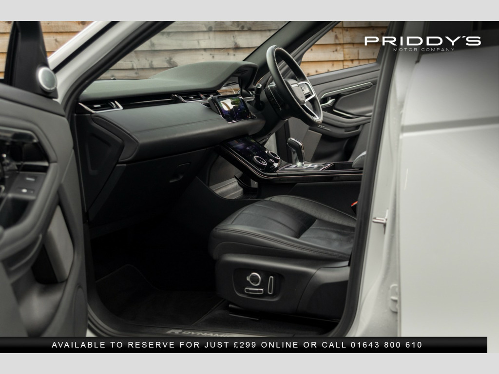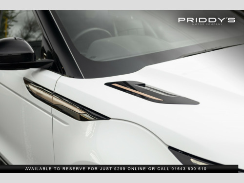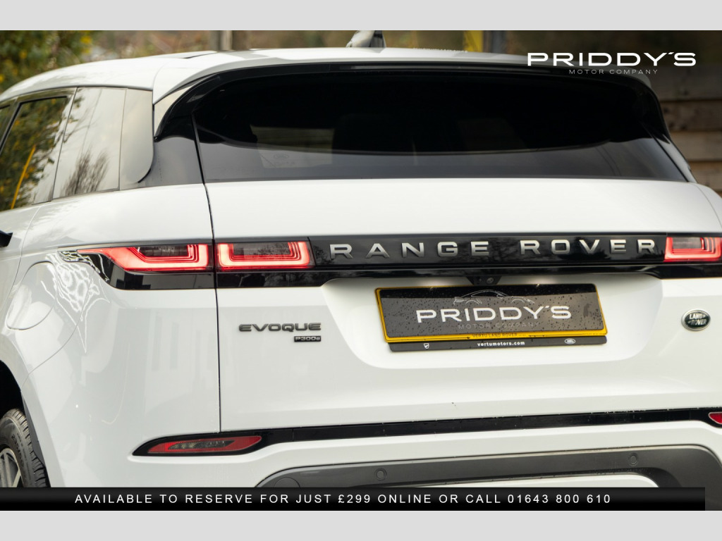 ** This vehicle has recently passed our meticulous pre-purchase inspection and has now arrived on site, where it has undergone a second detailed assessment and extended test drive. The photographs capture the car exactly as it arrived — already presenting beautifully, as only the finest examples ever make it into our collection. It is now undergoing final preparation behind the scenes and will require only light finishing touches before being ready for handover. Given its superb condition and desirability, we recommend reserving early to secure it ahead of other discerning buyers **, , , Priddys Motor Company are delighted to present this exceptional Range Rover Evoque P300e R‑Dynamic HSE: a refined embodiment of luxury, performance and electrified efficiency. With only 19,767 miles on the clock, this striking SUV fuses 309 hp of combined output, sophisticated tech and premium detailing — ready for the kind of discerning buyer who demands more than just an SUV. , From the moment you slide into the cabin its obvious that this is no ordinary Evoque. The fixed glass panoramic roof floods the interior with light, while a black headliner, leather strip across the dash and leather door cards give the ambience of a high-end lounge rather than just a car. Memory front seats that are heated, a heated steering wheel, paddle shifters, keyless start and Meridian surround-sound all reinforce that youre seated in something special. , Beneath that engaging architecture lies a plug-in hybrid powertrain that marries a 1.5-litre petrol engine with electric drive to deliver 309 ps and 540 Nm of torque. Official figures indicate an electric-only range of up to 34 miles (approximately) in this model. What that means in real-world terms is that for many commuters, this vehicle can handle the daily routine entirely on electric power — emissions-free, quietly and efficiently. , Driving this Evoque is about composure and capability. The Adaptive Cruise Control and Lane Assist systems glide you smoothly through traffic, while reverse camera and parking-aid systems ensure ease and precision in urban settings. Power-fold mirrors, glass roof, heated seats, paddle shifters and that beautifully finished interior combine to make every moment behind the wheel a pleasure. The exterior is equally polished, projecting a balanced presence that suits urban sophistication and weekend escapes alike. , The service history is impressively maintained: first PDI at 3 miles, then recent service at 16,923 miles and another inspection at 19,767 miles. This shows that the vehicle has been cared for and is kept in prime condition. With only ~20k miles on the clock, the tyres, brakes and major components retain a premium feel consistent with the vehicles specification and usage. , In summary, this is a Range Rover Evoque P300e R-Dynamic HSE done exactly right — immediate usability, ultra-premium spec, low mileage and technology that suits todays world of mixed driving modes. If youre seeking a luxury SUV that combines silence, refinement, presence and performance, this is the one. , , , , Why Buy from Priddys Motor Company, , , Excellence isnt optional — its standard.