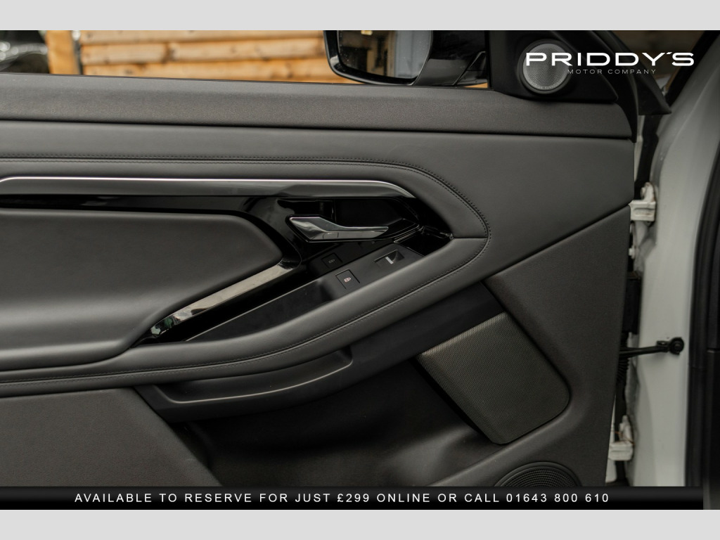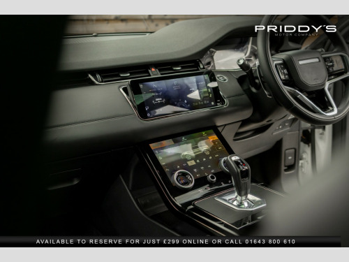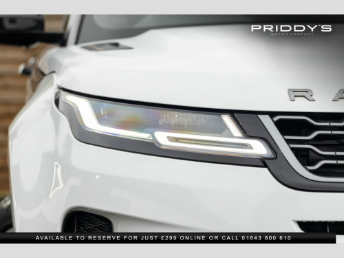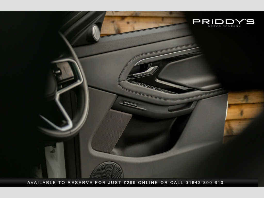 £1,000 OFF THIS VEHICLE FOR THE REMAINDER OF 2025! , THE PRICE YOU SEE HAS ALREADY BEEN REDUCED TO REFLECT THIS CHANGE! , , , Priddys Motor Company are delighted to present this exceptional Range Rover Evoque P300e R‑Dynamic HSE: a refined embodiment of luxury, performance and electrified efficiency. With only 19,767 miles on the clock, this striking SUV fuses 309 hp of combined output, sophisticated tech and premium detailing — ready for the kind of discerning buyer who demands more than just an SUV. , From the moment you slide into the cabin its obvious that this is no ordinary Evoque. The fixed glass panoramic roof floods the interior with light, while a black headliner, leather strip across the dash and leather door cards give the ambience of a high-end lounge rather than just a car. Memory front seats that are heated, a heated steering wheel, paddle shifters, keyless start and Meridian surround-sound all reinforce that youre seated in something special. , Beneath that engaging architecture lies a plug-in hybrid powertrain that marries a 1.5-litre petrol engine with electric drive to deliver 309 ps and 540 Nm of torque. Official figures indicate an electric-only range of up to 34 miles (approximately) in this model. What that means in real-world terms is that for many commuters, this vehicle can handle the daily routine entirely on electric power — emissions-free, quietly and efficiently. , Driving this Evoque is about composure and capability. The Adaptive Cruise Control and Lane Assist systems glide you smoothly through traffic, while reverse camera and parking-aid systems ensure ease and precision in urban settings. Power-fold mirrors, glass roof, heated seats, paddle shifters and that beautifully finished interior combine to make every moment behind the wheel a pleasure. The exterior is equally polished, projecting a balanced presence that suits urban sophistication and weekend escapes alike. , The service history is impressively maintained: first PDI at 3 miles, then recent service at 16,923 miles and another inspection at 19,767 miles. This shows that the vehicle has been cared for and is kept in prime condition. With only ~20k miles on the clock, the tyres, brakes and major components retain a premium feel consistent with the vehicles specification and usage. , In summary, this is a Range Rover Evoque P300e R-Dynamic HSE done exactly right — immediate usability, ultra-premium spec, low mileage and technology that suits todays world of mixed driving modes. If youre seeking a luxury SUV that combines silence, refinement, presence and performance, this is the one. , , , , Why Buy from Priddys Motor Company, , , Excellence isnt optional — its standard.
