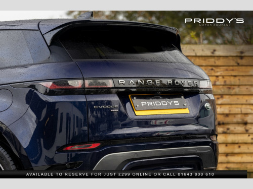 This Range Rover Evoque 1.5 P300e R-Dynamic HSE is just a lovely thing — the perfect balance of style, luxury and forward-thinking technology. With only 13,939 miles from new, its barely been run in, and its exactly the kind of car that feels like its led a very easy life. Sold by a Land Rover main dealer just last year, it still looks, feels and drives like a near-new example. , The plug-in hybrid system suits the Evoque perfectly — its quiet and refined when gliding around town on electric power, yet when you ask for more, that 300hp petrol engine wakes up and delivers instant, seamless performance. The combination gives you all the refinement youd expect from a Range Rover, but with a much more efficient, modern edge. , Inside, its nothing short of stunning. The two-tone black and white leather interior gives the cabin a really fresh, contemporary feel. The seats are supportive yet soft, with memory settings, heating, and power adjustment for both driver and passenger. The leather dashboard and door cards add a real sense of craftsmanship, and the black headliner ties it all together perfectly. Sitting in here, it feels like a proper luxury car — beautifully made, comfortable and unmistakably Range Rover. , The Meridian surround sound system is sublime, and the fixed glass panoramic roof lets in just the right amount of light, giving the cabin an airy and sophisticated atmosphere. Youve also got adaptive cruise control, lane assist, reverse camera, heated steering wheel, keyless start, paddle shifters, speed limiter recognition, and even an electric tow bar neatly tucked away when not in use. Every detail has been thought through to make this Evoque not only beautiful but genuinely effortless to live with. , , , Service History, , Maintained properly from day one, with every entry either by Land Rover themselves or a marque specialist. Its a history that reflects careful ownership — no skipped intervals, no corners cut:, , 24.03.2023 – Land Rover Main Dealer – PDI, 03.01.2024 – Land Rover Main Dealer – New/Used Preparation, 25.04.2025 – Land Rover Main Dealer – Oil, Brake Fluid, Pollen, Inspection, 17.10.2025 – Priddys Motor Company – Oil, Inspection, , , The car sits on Pirelli Scorpion Zero JLR-rated tyres all round, all matching and in lovely condition with 5.5–6mm on the fronts and 6mm on the rears. Discs and pads are in equally good order, clean and with plenty of life remaining — its clear this car has been driven gently and cared for properly. , In short, this is a low-mileage, beautifully kept Evoque that feels every bit as premium as the day it left the showroom. Finished in a stunning colour, packed with specification and underpinned by impeccable history — its the kind of example that really stands out. , , , , , , Why Buy from Priddys Motor Company, , , Excellence isnt optional — its standard.