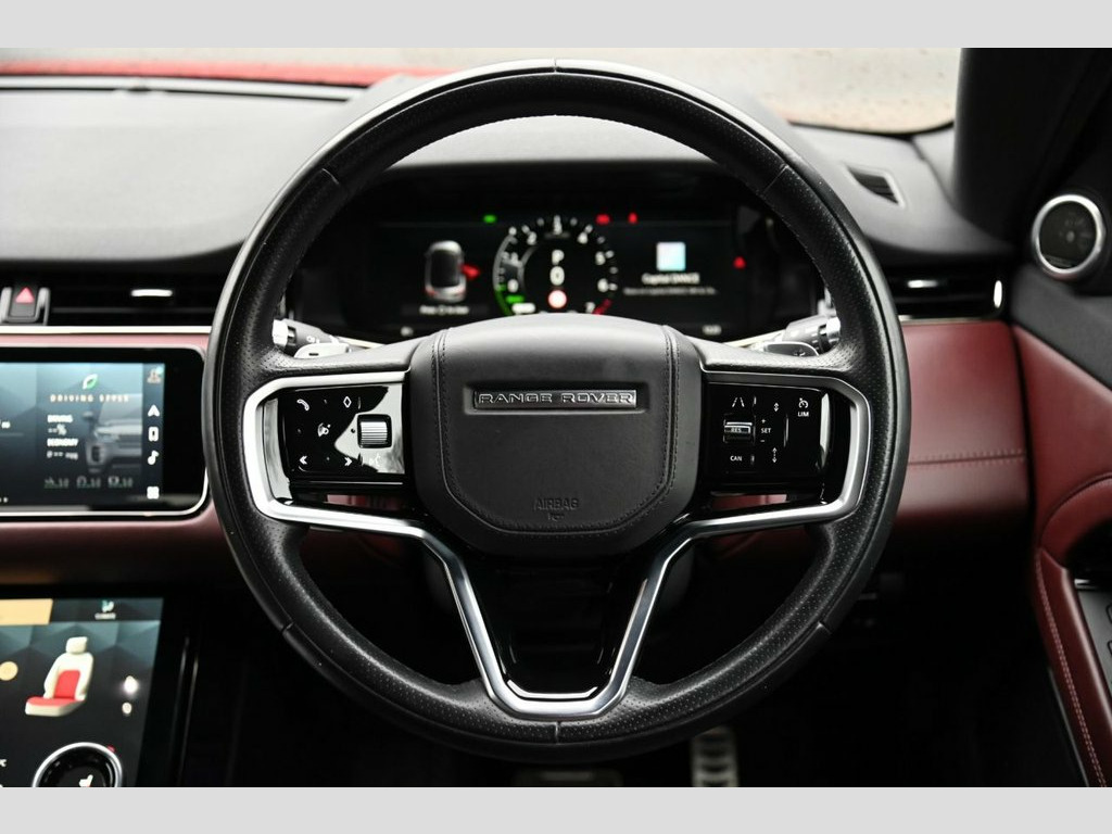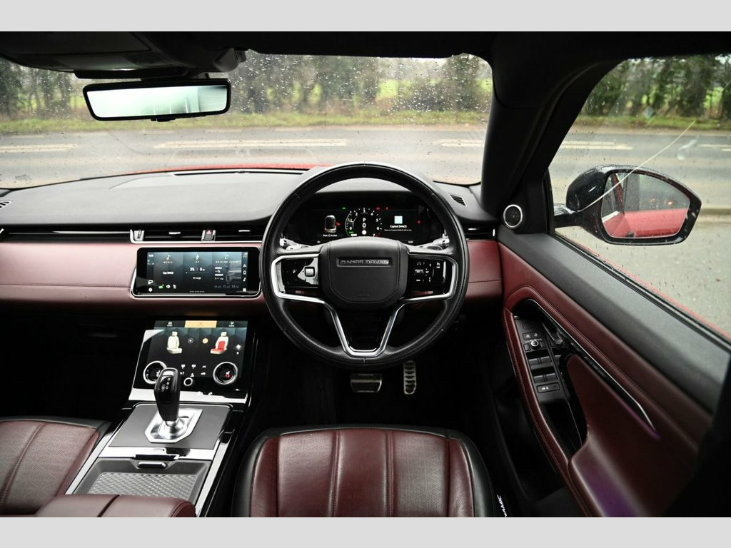 Prestige Car Supermarket in York presents this 2021 Range Rover Evoque 1.5 P300e R-Dynamic HSE, a refined plug-in hybrid SUV delivering 309 ps through an automatic four-wheel drive system. Finished in Firenze Red, this Evoque features the R-Dynamic exterior pack, body coloured roof, flush deployable door handles, animated directional indicators, matrix LED headlights with signature DRL, privacy glass and 20in 5 split-spoke alloy wheels in gloss dark grey with contrast diamond turned finish. The interior is appointed with perforated Windsor leather in a distinctive duo-tone Deep Garnet and Ebony, complemented by the extended leather upgrade, Ebony Morzine headlining, graduated linear dark aluminium trim and ambient interior lighting. Comfort and convenience are enhanced by 14-way heated electric front seats with driver memory, heated steering wheel, two-zone climate control, powered tailgate, keyless entry and the ClearSight interior rear view mirror. Technology highlights include the Interactive Driver Display, Pivi Pro connected infotainment with Touch Pro Duo, Apple CarPlay, Android Auto, DAB radio, Bluetooth connectivity and Meridian sound system. Driver assistance and safety features include adaptive cruise control, blind spot assist, lane keep assist, emergency braking, driver condition monitor, front and rear parking aid, rear view camera, rear traffic monitor, Clear Exit Monitor, Terrain Response 2, All Terrain Progress Control and torque vectoring by braking, making t ClearSight Interior Rear View Mirror, Perforated Windsor Leather - Duo-Tone - , Firenze Red, 14-Way Heated Electric Seats with Driver, 20in Alloy Wheels - 5 Split-Spoke - Styl, 40-20-40 Folding Rear Seats, ABS - Anti Lock Braking System, ACC - Adaptive Cruise Control, ATPC - All Terrain Progress Control, Airbags - Front - Driver and Front Passe, Ambient Interior Lighting, Android Auto, Animated Directional Indicators, Apple CarPlay, Approach Lights, Auto-Dimming Interior Rear View Mirror, Automatic Headlight Levelling, Automatic Headlights, Blind Spot Assist, Bluetooth Connectivity, Body Coloured Roof, Brake Pad Wear Indicator, Bright Metal Pedals, Cabin Lighting, Chrome Treadplates, Clear E