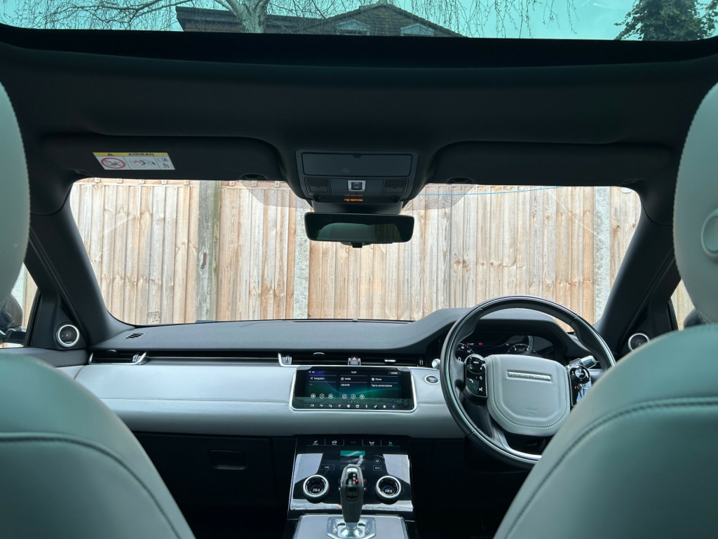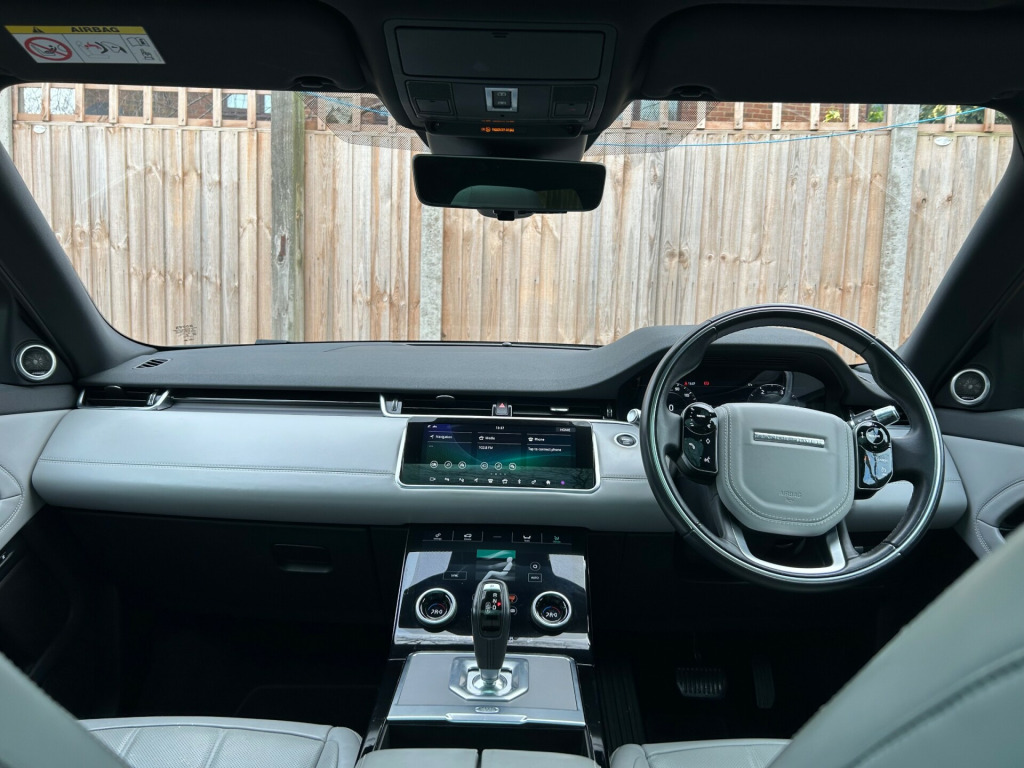 This 2019 Land Rover Range Rover Evoque 2.0 D150 HSE SUV 5dr Diesel Auto 4WD Euro 6 (s/s) (150 ps) with 43000 miles on the clock is the perfect family vehicle, with 3 comfortable and spacious seats in the back and 5 doors for easy access. This SUV is ULEZ compliant and powered by a reliable diesel engine, ensuring great fuel efficiency. The MOT is valid until 20/06/2026, giving you peace of mind for the years to come. The luxurious interior includes 16-way heated electric memory front seats, 40-20-40 split fold rear seat, ambient interior lighting, carpet mats, and a ClearSight interior rearview mirror, providing comfort and convenience for both driver and passengers. Whether you're driving around town or going on an off-road adventure, this vehicle delivers style, performance, and practicality in equal measure. -way heated electric memory front seats, 40-20-40 split fold rear seat, ambient interior lighting, carpet mats, clearsight interior rear view mirror, extended leather upgrade, gesture tailgate, headlining - light oyster morzine, interactive driver display, leather steering wheel with atlas bezel, manually adjustable steering column, overhead lighting console, overhead stowage for sunglasses, passive front headrests, push button start, rain sensing windscreen wipers, rear air vents, seats - rear centre head restraint, smart settings, standard treadplates, sun visors - illuminated vanity mirrors, trim finish - gradated linear bright aluminium, twin front cupholders with cover, twin sliding front centre armrest, two-zone climate control, 20in alloy wheels - 5 split-spoke - style 5076 - gloss mid-silver with contrast diamond turned finish, all season tyres, auto-dimming power fold - heated door mirrors with memory and approach lights, body coloured roof, d150 badge, electric windows with one-touch open-close and anti-trap, evoque badge, flush deployable door handles, front and rear animated directional indicators, hse badge, heated rear window with timer, locking wheel nuts, rear fog lights, shadow atlas - range rover - bonnet and tailgate script, standard roof, tailgate spoiler, tyre repair system, windscreen - heated, windscreen washer jets - heated, 360 degree parking aid, acc - adaptive cruise control, atpc - all terrain progress control, blind spot assist, brake pad wear indicator, driver condition monitor, epas - electronic power assisted steering, efficient driveline, park assist, passive suspension, rear view camera, tpms - tyre pressure monitoring system, terrain response 2, torque vectoring, traffic sign recognition and adaptive speed limiter, voice control, abs - anti lock braking system, airbags - driver knee, airbags - front - driver and front passenger, autonomous emergency braking, clear exit monitor, customer configurable autolock, dsc - dynamic stability control, eba - emergency brake assist, ebd - electronic brake-force distribution, etc - electronic traction control, electric parking brake, hdc - hill descent control, high speed emergency braking, hill launch assist, intrusion sensor, keyless entry, lane keep assist, low traction launch, power operated child locks, rsc - roll stability control, rear isofix, rear traffic monitor, seat belt reminder, side curtain airbags and thorax, android auto, apple carplay, bluetooth connectivity, dab - digital audio broadcast, incontrol - remote app, incontrol apps, meridian sound system 380w, navigation pro, power socket pack 1, pro services and wi-fi hotspot, touch pro duo, automatic headlight levelling, automatic headlights, headlights - automatic high beam assist, premium led headlights with signature drl