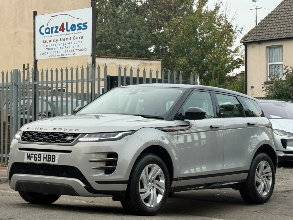 ONE OWNER FROM NEW, MOT TILL SEP 2026, 360 SURROUND CAMERA, CLEAR SIGHT REAR VIEW MIRROR, VISIT OUR WEBSITE FOR FURTHER DETAILS WE OFFER FINANCE DEALS AT COMPETITIVE APR, WWW.CARZ4LESS.CO.UKThis 2019 Land Rover Range Rover Evoque D150 R Dynamic S offers a refined driving experience with its 2.0L diesel engine. As a Euro 6 compliant vehicle, it represents a commitment to lower emissions. This R Dynamic S trim level comes equipped with practical features designed to enhance your journey, including front and rear parking aids with sensors and a rear view camera for effortless manoeuvring. Stay connected and entertained with seamless Bluetooth connectivity, Apple CarPlay, and Android Auto integration.The Evoque D150 R Dynamic S stands out with its low CO2 emissions, indicating a more environmentally conscious choice compared to many similar vehicles. This particular model combines sophisticated styling with the capability expected from a Land Rover, making it a compelling option for those seeking a premium compact SUV that balances performance, technology, and efficiency.. 10-Way Heated Electric Front Seats, 10in Touch Pro, 18in Alloy Wheels - 5-Split Spoke - Style 5074 - Gloss Sparkle Silver, 40-20-40 Split Fold Rear Seat, ABS - Anti Lock Braking System, Airbags - Driver Knee, Airbags - Front - Driver and Front Passenger, All Season Tyres, Analogue Dials with Central TFT Display, Android Auto, Apple CarPlay, Auto-Dimming - Power Fold - Heated Door Mirrors with Approach Lights, Auto-Dimming Interior Rear View Mirror, Autonomous Emergency Braking, Bluetooth Connectivity, Body Coloured Roof, Brake Pad Wear Indicator, Bright Metal Pedals, Carpet Mats, Chrome Treadplates, Climate Control - Rear Vents, Cruise Control and Speed Limiter, Customer Configurable Autolock, D150 Badge, DAB - Digital Audio Broadcast, DSC - Dynamic Stability Control, Driver Condition Monitor, EBA - Emergency Brake Assist, EBD - Electronic Brake-Force Distribution, EPAS - Electronic Power Assisted Steering, ETC - Electronic Traction Control, Electric Parking Brake, Electric Windows with One-Touch Open-Close and Anti-Trap, Evoque and R-Dynamic Badge, Flush Deployable Door Handles, Front and Rear Parking Aid, Headlining - Ebony Morzine, Heated Rear Window with Timer, InControl - Remote App, InControl Apps, Interior Lighting, Intrusion Sensor, LED Headlights, Lane Keep Assist, Locking Wheel Nuts, Manual Headlight Levelling, Manual Tailgate, Manually Adjustable Steering Column, Navigation Pro, Overhead Lighting Console, Overhead Stowage for Sunglasses, Passive Front Headrests, Passive Suspension, Perforated Leather Steering Wheel, Power Operated Child Locks, Power Socket Pack 1, Pro Services and Wi-Fi Hotspot, Push Button Start, R-Dynamic Exterior Pack, RSC - Roll Stability Control, Rain Sensing Windscreen Wipers and Automatic Headlights - Automatic, Rear Fog Lights, Rear ISOFIX, Rear View Camera, S Badge, Seat Belt Reminder, Seats - Rear Centre Head Restraint, Shadow Atlas - RANGE ROVER - Bonnet and Tailgate Script, Side Curtain Airbags and Thorax, Smart Settings, Sound System, Sun Visors - Illuminated Vanity Mirrors, TPMS - Tyre Pressure Monitoring System, Tailgate Spoiler, Traffic Sign Recognition and Adaptive Speed Limiter, Trim Finish - Gradated Linear Dark Aluminium, Twin Front Cupholders with Cover, Twin Sliding Front Centre Armrest, Two-Zone Climate Control, Tyre Repair System, Voice Control, Windscreen - Heated, Windscreen Washer Jets - Heated.