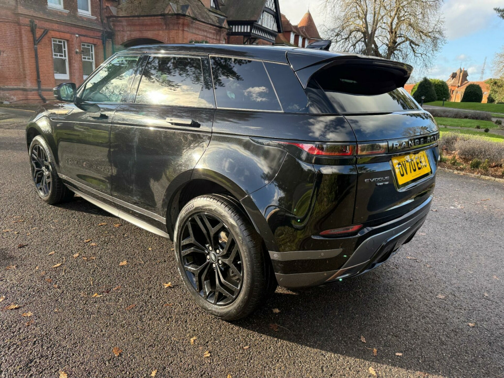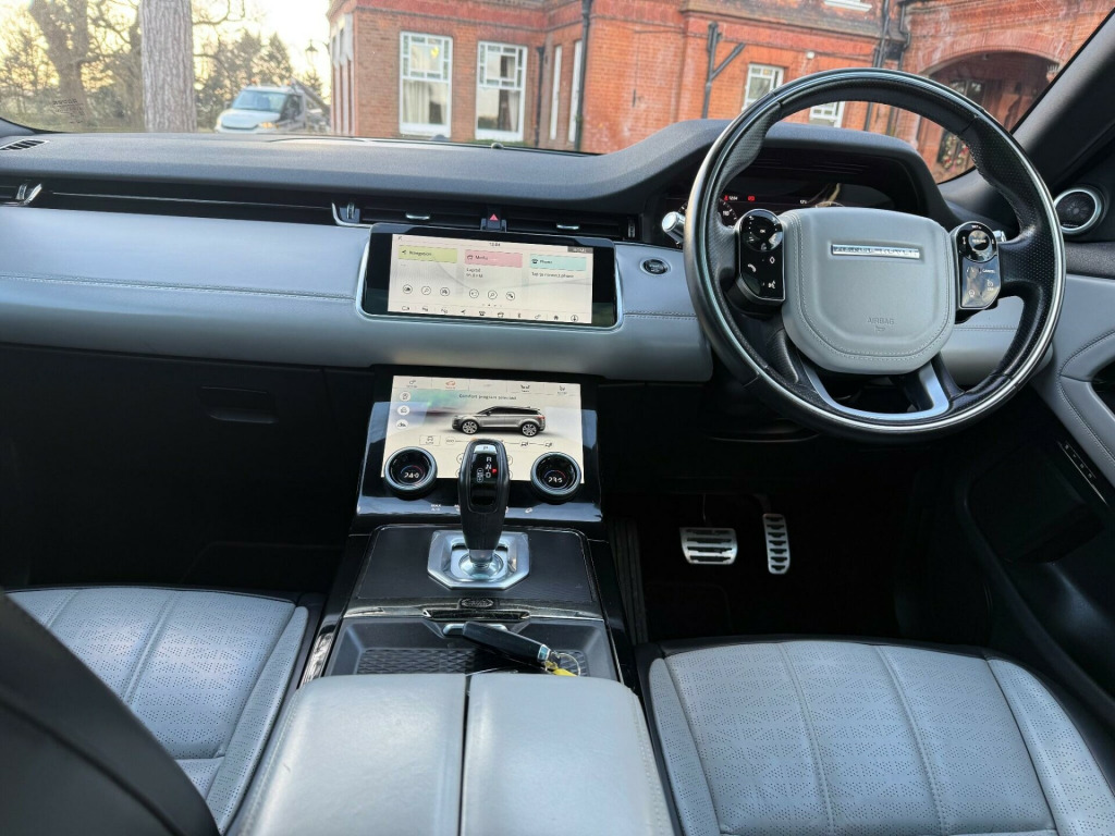 FULL SERVICE HISTORY, HPI CLEAR ,WARRANTY AVAILABLE, SOUTH WEST SURREY CAR SALES,WE ARE BASED IN COBHAM, WOODLANDS LANE, MANOR FARM, SURREY, KT113PY , Call dealer now Phone Number Tel: (07548)238192 ATTENTION PLEASE THERE IS AN ADDITIONAL £360 ADMIN FEE WHEN YOU BUY YOUR VEHICLE THROUGH FINANCIAL COMPANY. 16-way Heated Electric Memory Front Seats, 20in Alloy Wheels - 5 Split-Spoke - Style 5079 - Gloss Dark Grey with Contrast Diamond Turned Finish, 360 Degree Parking Aid, 40-20-40 Split Fold Rear Seat, ABS - Anti Lock Braking System, ACC - Adaptive Cruise Control, ATPC - All Terrain Progress Control, Airbags - Driver Knee, Airbags - Front - Driver and Front Passenger, All Season Tyres, Ambient Interior Lighting, Android Auto, Apple CarPlay, Auto-Dimming Power Fold - Heated Door Mirrors with Memory and Approach Lights, Automatic Headlight Levelling, Automatic Headlights, Autonomous Emergency Braking, Black Gearshift Paddles, Blind Spot Assist, Bluetooth Connectivity, Body Coloured Roof, Brake Pad Wear Indicator, Bright Metal Pedals, Carpet Mats, Chrome Treadplates, Clear Exit Monitor, ClearSight Interior Rear View Mirror, Customer Configurable Autolock, D180 Badge, DAB - Digital Audio Broadcast, DSC - Dynamic Stability Control, Driver Condition Monitor, EBA - Emergency Brake Assist, EBD - Electronic Brake-Force Distribution, EPAS - Electronic Power Assisted Steering, ETC - Electronic Traction Control, Efficient Driveline, Electric Parking Brake, Electric Windows with One-Touch Open-Close and Anti-Trap, Evoque and R-Dynamic Badge, Extended Leather Upgrade, Flush Deployable Door Handles, Front and Rear Animated Directional Indicators, Gesture Tailgate, HDC - Hill Descent Control, HSE Badge, Headlights - Automatic High Beam Assist, Headlining - Ebony Morzine, Heated Rear Window with Timer, High Speed Emergency Braking, Hill Launch Assist, InControl - Remote App, InControl Apps, Interactive Driver Display, Intrusion Sensor, Keyless Entry, Lane Keep Assist, Leather Steering Wheel with Atlas Bezel, Locking Wheel Nuts, Low Traction Launch, Manually Adjustable Steering Column, Meridian Sound System 380W, Navigation Pro, Overhead Lighting Console, Overhead Stowage for Sunglasses, Park Assist, Passive Front Headrests, Passive Suspension, Power Operated Child Locks, Power Socket Pack 1, Premium LED Headlights with Signature DRL, Pro Services and Wi-Fi Hotspot, Push Button Start, R-Dynamic Exterior Pack, RSC - Roll Stability Control, Rain Sensing Windscreen Wipers, Rear Air Vents, Rear Fog Lights, Rear ISOFIX, Rear Traffic Monitor, Rear View Camera, Seat Belt Reminder, Seats - Rear Centre Head Restraint, Side Curtain Airbags and Thorax, Smart Settings, Standard Roof, Sun Visors - Illuminated Vanity Mirrors, TPMS - Tyre Pressure Monitoring System, Tailgate Spoiler, Terrain Response 2, Torque Vectoring, Touch Pro Duo, Traffic Sign Recognition and Adaptive Speed Limiter, Trim Finish - Gradated Linear Dark Aluminium, Twin Front Cupholders with Cover, Twin Sliding Front Centre Armrest, Two-Zone Climate Control, Tyre Repair System, Voice Control, Windscreen - Heated, Windscreen Washer Jets - Heated, Meridian Surround Sound System 825W, Headlight Power Wash, Fixed Panoramic Roof Including Powered Blind. Full service history