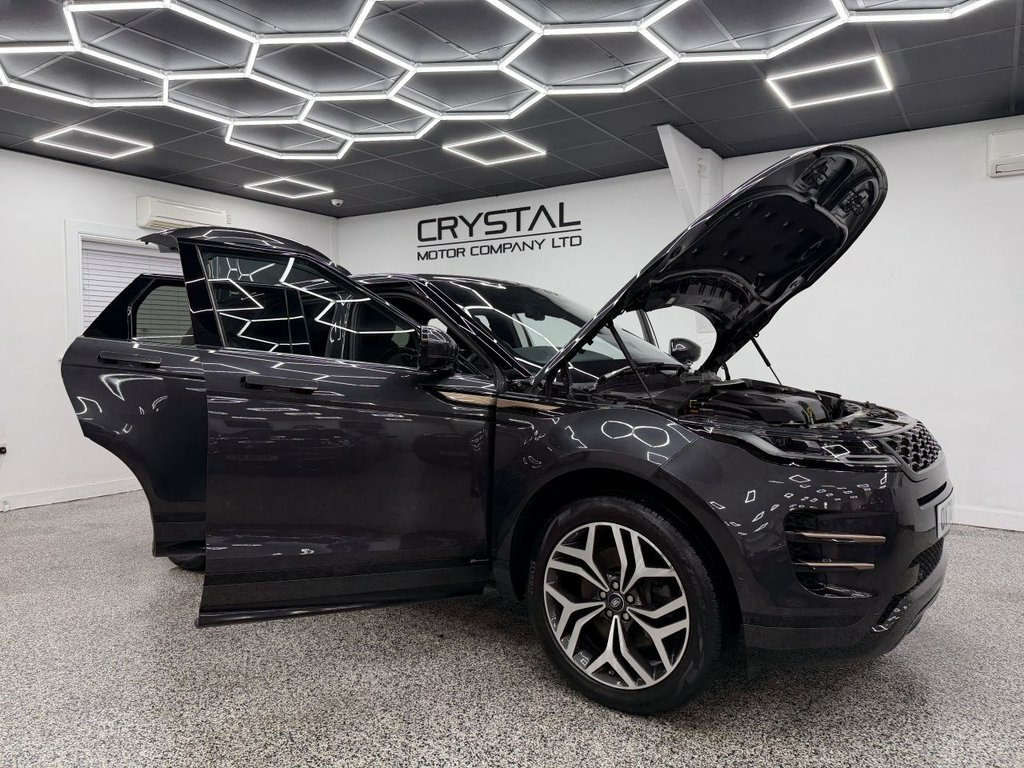 Crystal motor company are delighted to offer for sale this beautifully presented 2020 LAND ROVER RANGE ROVER EVOQUE 2.0 D180 MHEV R-Dynamic HSE SUV 5dr Diesel Auto 4WD Euro 6 (s/s) (180 ps) finished in CARPATHIAN GREY. This car comes with TWO KEYS, ONE FORMER KEEPER, FULL LAND ROVER SERVICE HISTORY. This car is equipped with 20" ALLOY WHEELS, FRONT AND REAR PARKING SENSORS, REAR REVERSING CAMERA, ELECTRIC REAR TAILGATE, ELECTRIC FOLDING WING MIRRORS, BLIND SPOT ASSIST, FIXED PANORAMIC ROOF, BLACK LEATHER SEATS, ELECTRIC MEMORY FRONT SEATS, HEATED FRONT SEATS, PADDLE SHIFT, ADAPTIVE CRUISE CONTROL, HEATED STEERING WHEEL, VIRTUAL COCKPIT, MERIDIAN SOUND SYSTEM, CLEARVIEW INTERIOR MIRROR, DAB RADIO, BLUETOOTH AUDIO, BLUETOOTH PHONE CONNECTION, SATNAV, APPLE CARPLAY, ANDROID AUTO. The car is 100% HPi clear. Part exchange and finance are available and all major credit and debit cards accepted. Crystal Motor Company Ltd Used Programme includes a full PDI inside and out, MOT, mileage certificate and a full inside and out valet. You can request a personalised video with attention given to any specifics you would like a better view of and we will be pleased to assist you. Likewise, we offer our customers a free collection service. Our journey began in 1996 with the aim to deliver the best possible customer experience, you will enjoy a completely hassle free approach, no pressure and great prices, values we stand by to this day. Looking to finance your next car? We have over 30 16-way Heated Electric Memory Front Seat, 20in Alloy Wheels - 5 Split-Spoke - Styl, 360 Degree Parking Aid, 40-20-40 Split Fold Rear Seat, ABS - Anti Lock Braking System, ACC - Adaptive Cruise Control, Airbags - Driver Knee, Airbags - Front - Driver and Front Passe, Ambient Interior Lighting, Android Auto, Apple CarPlay, ATPC - All Terrain Progress Control, Auto-Dimming Power Fold - Heated Door Mi, Automatic Headlight Levelling, Automatic Headlights, Autonomous Emergency Braking, Black Gearshift Paddles, Blind Spot Assist, Bluetooth Connectivity, Body Coloured Roof, Brake Pad Wear Indicator, Bright Metal Pedals, Carpathian Grey, Carpet Mats, Chrome Treadplates, Clear Exit Monitor, ClearSight