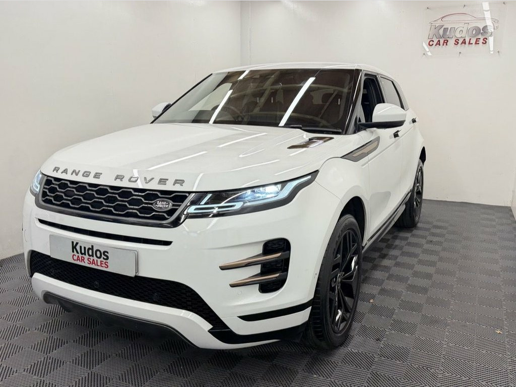 2020 LAND ROVER RANGE ROVER EVOQUE 2.0 D180 R-Dynamic SE 5dr Automatic - A REAL HEAD TURNING CAR, FINISHED IN STUNNING FUJI WHITE WITH ROSE GOLD DETAIL. NO DEPOSIT FINANCE AVAILABLE FROM £460 per mth. 6 MONTH WARRANTY INCLUDED. EACH VEHICLE COMES WITH A FREE HPI CLEAR REPORT AND AA BREAKDOWN COVER. ONLY 50000 MILES. FULL SERVICE HISTORY AND JUST HAD A SERVICE. MOT UNTIL 20/11/2026. SUCH A STUNNING CAR AND REALLY LOVELY TO DRIVE. **LUXURY SPEC** FULL BLACK LEATHER INTERIOR, MEMORY ELECTRIC FRONT SEATS, HEATED FRONT SEATS, TOUCH DIGITAL DASHBOARD TOUCH SCREEN SAT NAV, REAR PARKING CAMERA, FRONT AND REAR PARKING SENSORS, CRUISE CONTROL, KEYLESS PUSH BUTTON START, ADJUSTABLE DRIVING MODES, MERIDIAN SOUND SYSTEM, INDIVIDUAL CLIMATE CONTROL, LED LIGHTS, BLIND SPOT ALERT, AIRCON, BLUETOOTH, DAB RADIO, POWER OPEN BOOT, POWER FOLDING MIRRORS, ELEC WINDOWS AND MIRRORS. UNMARKED 20'' ALLOY WHEELS. FINANCE PACKAGES - With a number of lenders on board i am able to offer Finance to suit individual circumstances, including Sub Prime. All CARS ARE HPI CHECKED AND CLEAR. WARRANTY - At KUDOS CAR SALES every vehicle comes with a FREE 6 MONTH Warranty. Any repairs under warranty can be carried out at your local garage -Extended warranty available on request at extra cost. PREVIOUS NON SMOKER. 2 KEYS. ***ALL PART EXCHANGE'S CONSIDERED*** 14-way - Heated Electric Memory Front Se, 14-way - Heated Electric Memory Front Se, 20in Alloy Wheels - 5 Split-Spoke - Styl, 20in Alloy Wheels - 5 Split-Spoke - Styl, 360 Degree Parking Aid, 40-20-40 Split Fold Rear Seat, ABS - Anti Lock Braking System, Airbags - Driver Knee, Airbags - Front - Driver and Front Passe, All Season Tyres, Ambient Interior Lighting, Android Auto, Apple CarPlay, ATPC - All Terrain Progress Control, Auto-Dimming Interior Rear View Mirror, Auto-Dimming Power Fold - Heated Door Mi, Automatic Headlight Levelling, Automatic Headlights, Autonomous Emergency Braking, Black Gearshift Paddles, Bluetooth Connectivity, Body Coloured Roof, Brake Pad Wear Indicator, Bright Me