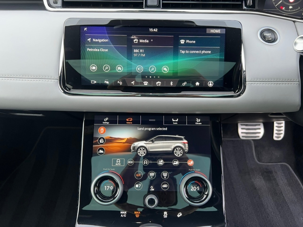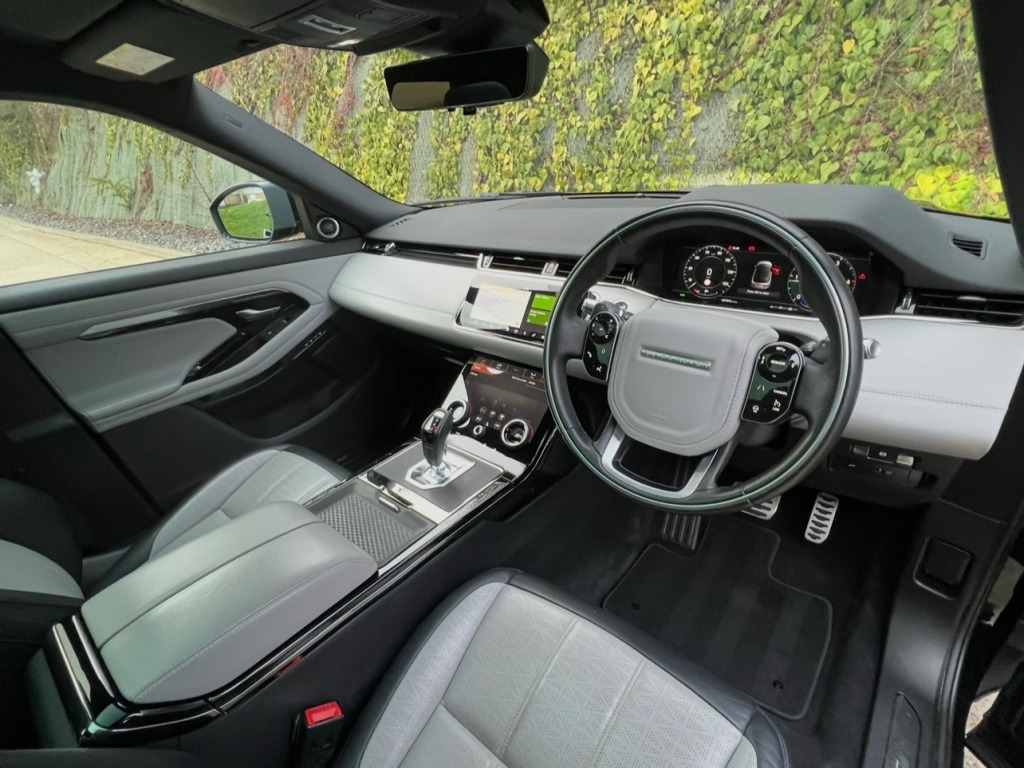 Immaculately Presented Land Rover Evoque 2.0 R-Dynamic HSE, In Black With A Two Tone Interior, Full Service History, 2 Keys, And A Huge Spec, Full Leather Electric Heated Seats, Memory Seats, Full Leather Heated Multifunctional Steering Wheel, Meridian Surround Sound System, Multi Media Interface, AppleCarplay, Android Auto, FM, DAB, Bluetooth Connectivity, SatNav, Voice Recognition, Multiple Display Settings, Multiple Driving Modes, Adaptive Cruise Control, Speed Limiter, Lane Assist, Park Assist, Collision Avoidance, Speed Limit Awareness, Steering Assistance, Front And Rear Parking Aid, Reversing Camera, Rear View Mirror Camera, Glass Roof, Privacy Glass, Heated Front Windscreen, Electric Windows, Electric Heated Folding Mirrors, Electric Tailgate. UK HOME DELIVERY AVAILABLE. FINANCE AVAILABLE.We Take Great Pride In Preparing And Detailing Our Vehicles To The Highest Standard As Well As Having 6 Months Warranty With A Fresh MOT And Health Check On All Of Our Vehicles For Additional Peace Of Mind.For Viewings And Enquiries ContactTel: 07827975566Email: elysiummotorsoutlook.com -way heated electric memory front seats, 40-20-40 split fold rear seat, ambient interior lighting, black gearshift paddles, bright metal pedals, carpet mats, chrome treadplates, clearsight interior rear view mirror, extended leather upgrade, gesture tailgate, headlining - ebony morzine, interactive driver display, leather steering wheel with atlas bezel, manually adjustable steering column, overhead lighting console, overhead stowage for sunglasses, passive front headrests, push button start, rain sensing windscreen wipers, rear air vents, seats - rear centre head restraint, smart settings, sun visors - illuminated vanity mirrors, trim finish - gradated linear dark aluminium, twin front cupholders with cover, twin sliding front centre armrest, two-zone climate control, 20in alloy wheels - 5 split-spoke - style 5079 - gloss dark grey with contrast diamond turned finish, all season tyres, auto-dimming power fold - heated door mirrors with memory and approach lights, body coloured roof, d180 badge, electric windows with one-touch open-close and anti-trap, evoque and r-dynamic badge, flush deployable door handles, front and rear animated directional indicators, hse badge, heated rear window with timer, locking wheel nuts, r-dynamic exterior pack, rear fog lights, shadow atlas - range rover - bonnet and tailgate script, standard roof, tailgate spoiler, tyre repair system, windscreen - heated, windscreen washer jets - heated, 360 degree parking aid, acc - adaptive cruise control, atpc - all terrain progress control, blind spot assist, brake pad wear indicator, driver condition monitor, epas - electronic power assisted steering, efficient driveline, park assist, passive suspension, rear view camera, tpms - tyre pressure monitoring system, terrain response 2, torque vectoring, traffic sign recognition and adaptive speed limiter, voice control, abs - anti lock braking system, airbags - driver knee, airbags - front - driver and front passenger, autonomous emergency braking, clear exit monitor, customer configurable autolock, dsc - dynamic stability control, eba - emergency brake assist, ebd - electronic brake-force distribution, etc - electronic traction control, electric parking brake, hdc - hill descent control, high speed emergency braking, hill launch assist, intrusion sensor, keyless entry, lane keep assist, low traction launch, power operated child locks, rsc - roll stability control, rear isofix, rear traffic monitor, seat belt reminder, side curtain airbags and thorax, android auto, apple carplay, bluetooth connectivity, dab - digital audio broadcast, incontrol - remote app, incontrol apps, meridian sound system 380w, navigation pro, power socket pack 1, pro services and wi-fi hotspot, touch pro duo, automatic headlight levelling, automatic headlights, headlights - automatic high beam assist, premium led headlights with signature drl