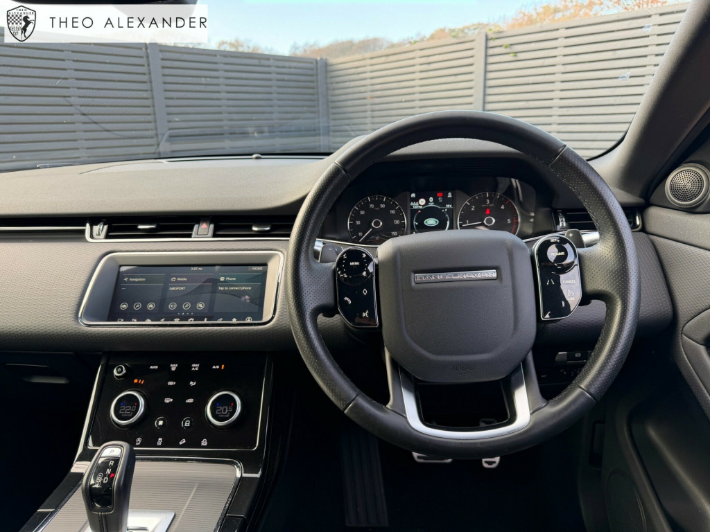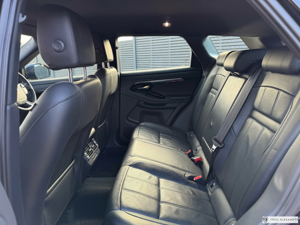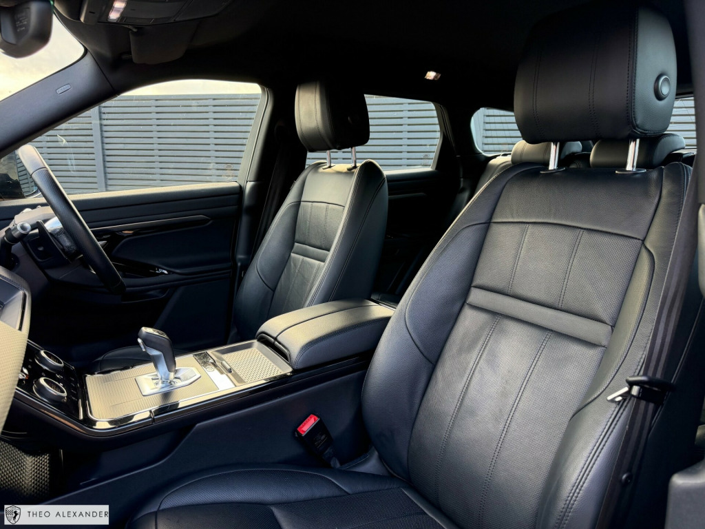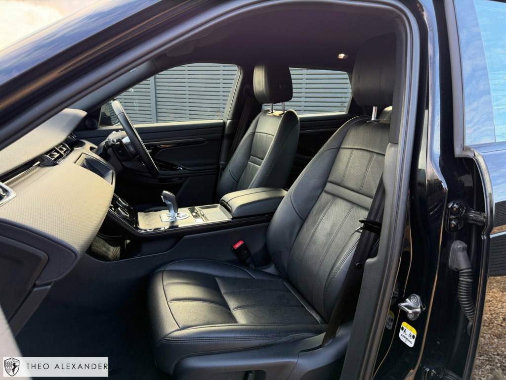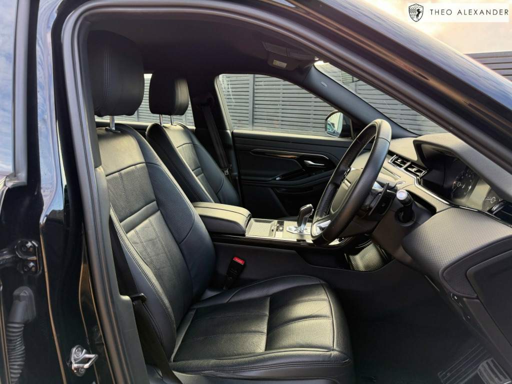 Theo Alexander are pleased to offer this Range Rover Evoque R-Dynamic, presented in Metallic Black with Black leather interior and complete with full history. This Car Comes With Black Metallic Black Leather Interior Apple Car Play Reversing Camera Heated Seats 18'' Alloy Wheels -way heated electric front seats, 40-20-40 split fold rear seat, ambient interior lighting, analogue dials with central tft display, auto-dimming interior rear view mirror, black gearshift paddles, bright metal pedals, carpet mats, chrome treadplates, headlining - ebony morzine, leather steering wheel, manually adjustable steering column, overhead lighting console, overhead stowage for sunglasses, passive front headrests, push button start, rain sensing windscreen wipers, rear air vents, seats - rear centre head restraint, smart settings, sun visors - illuminated vanity mirrors, trim finish - gradated linear dark aluminium, twin front cupholders with cover, twin sliding front centre armrest, two-zone climate control, 10in touch pro, android auto, apple carplay, bluetooth connectivity, dab - digital audio broadcast, incontrol - remote app, incontrol apps, navigation pro, power socket pack 1, pro services and wi-fi hotspot, sound system, 18in alloy wheels - 5-split spoke - style 5074 - gloss sparkle silver, all season tyres, auto-dimming - power fold - heated door mirrors with approach lights, body coloured roof, d180 badge, electric windows with one-touch open-close and anti-trap, evoque and r-dynamic badge, flush deployable door handles, heated rear window with timer, locking wheel nuts, manual tailgate, r-dynamic exterior pack, rear fog lights, s badge, shadow atlas - range rover - bonnet and tailgate script, standard roof, tailgate spoiler, tyre repair system, windscreen - heated, windscreen washer jets - heated, abs - anti lock braking system, airbags - driver knee, airbags - front - driver and front passenger, autonomous emergency braking, customer configurable autolock, dsc - dynamic stability control, eba - emergency brake assist, ebd - electronic brake-force distribution, etc - electronic traction control, electric parking brake, hdc - hill descent control, hill launch assist, intrusion sensor, lane keep assist, low traction launch, power operated child locks, rsc - roll stability control, rear isofix, seat belt reminder, side curtain airbags and thorax, atpc - all terrain progress control, brake pad wear indicator, cruise control and speed limiter, driver condition monitor, epas - electronic power assisted steering, efficient driveline, front and rear parking aid, passive suspension, rear view camera, tpms - tyre pressure monitoring system, terrain response 2, torque vectoring, traffic sign recognition and adaptive speed limiter, voice control, automatic headlights, led headlights, manual headlight levelling
