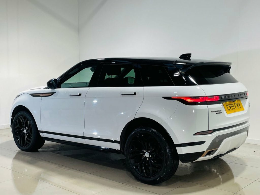 Range Rover Evoque R-Dynamic Auto 4WD – White Registration: CV19 FXY | Mileage: 67,000 miles This stunning Range Rover Evoque R-Dynamic Automatic 4WD is finished in White and has covered 67,000 miles from new. It offers bold R-Dynamic styling, premium comfort, and advanced technology. Exterior & Styling: R-Dynamic Exterior Styling White Paintwork Black Pack 20" Alloy Wheels Privacy Glass Electric Bootlid Interior & Comfort: Black Leather Interior Heated Front Seats Heated Steering Wheel Electric Seats Technology & Connectivity: Satellite Navigation Apple CarPlay & Android Auto Bluetooth Connectivity DAB / FM / AM Radio Safety & Driver Assistance: Reversing Camera 360° Parking Sensors Lane Assist Cruise Control Speed Limiter Vehicle Checks & Assurance: UVI Inspection Passed (Report Available) Free HPI Certificate Provided Nationwide Warranty Packages Available Any Inspection Welcome Additional Information: Up to 20 Photos Available on Our Website Indoor Viewing Available Over 100 Cars in Stock Debit Card Payments Accepted Approved Finance Partner (Consumer Credit Licence Held) Part Exchange Welcome Private Plate Transfers Available Delivery Service Available on Request Vehicle Can Be Reserved with a Deposit 10-Way Heated Electric Front Seats, 10in Touch Pro, 18in Alloy Wheels - 5-Split Spoke - Styl, 40-20-40 Split Fold Rear Seat, ABS - Anti Lock Braking System, ATPC - All Terrain Progress Control, Airbags - Driver Knee, Airbags - Front - Driver and Front Passe, All Season Tyres, Ambient Interior Lighting, Analogue Dials with Central TFT Display, Android Auto, Apple CarPlay, Auto-Dimming - Power Fold - Heated Door , Auto-Dimming Interior Rear View Mirror, Automatic Headlights, Autonomous Emergency Braking, Black Gearshift Paddles, Bluetooth Connectivity, Body Coloured Roof, Brake Pad Wear Indicator, Bright Metal Pedals, Carpet Mats, Chrome Treadplates, Cruise Control and Speed Limiter, Customer