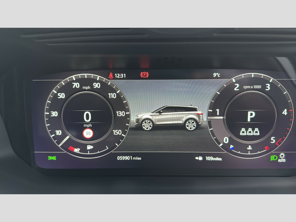 This 2019 Land Rover Range Rover Evoque 2.0 D180 SE SUV 5dr Diesel Auto 4WD Euro 6 (s/s) (180 ps) is a sleek and powerful SUV with low mileage of only 59358 miles. It runs on diesel and boasts 5 seats and 5 doors, making it perfect for family trips or off-road adventures. With an MOT that expires on 23/10/2026, this vehicle offers peace of mind for years to come. It is ULEZ compliant, ensuring that it meets stringent emissions standards, and includes desirable features such as 14-way heated electric memory front seats, a 40-20-40 split fold rear seat, ambient interior lighting, auto-dimming interior rearview mirror, and carpet mats. Don't miss out on this impressive SUV that combines luxury, capability, and efficiency in one stylish package. -way - heated electric memory front seats, 40-20-40 split fold rear seat, ambient interior lighting, auto-dimming interior rear view mirror, carpet mats, headlining - light oyster morzine, interactive driver display, leather steering wheel, manually adjustable steering column, overhead lighting console, overhead stowage for sunglasses, passive front headrests, powered tailgate, push button start, rain sensing windscreen wipers, rear air vents, seats - rear centre head restraint, smart settings, standard treadplates, sun visors - illuminated vanity mirrors, trim finish - gradated linear bright aluminium, twin front cupholders with cover, twin sliding front centre armrest, two-zone climate control, 20in alloy wheels - 5 split-spoke - style 5076 - gloss sparkle silver, all season tyres, auto-dimming power fold - heated door mirrors with memory and approach lights, body coloured roof, d180 badge, electric windows with one-touch open-close and anti-trap, evoque badge, flush deployable door handles, front and rear animated directional indicators, heated rear window with timer, locking wheel nuts, rear fog lights, se badge, shadow atlas - range rover - bonnet and tailgate script, standard roof, tailgate spoiler, tyre repair system, windscreen - heated, windscreen washer jets - heated, 360 degree parking aid, atpc - all terrain progress control, brake pad wear indicator, cruise control and speed limiter, driver condition monitor, epas - electronic power assisted steering, efficient driveline, park assist, passive suspension, rear view camera, tpms - tyre pressure monitoring system, terrain response 2, torque vectoring, traffic sign recognition and adaptive speed limiter, voice control, abs - anti lock braking system, airbags - driver knee, airbags - front - driver and front passenger, autonomous emergency braking, clear exit monitor, customer configurable autolock, dsc - dynamic stability control, eba - emergency brake assist, ebd - electronic brake-force distribution, etc - electronic traction control, electric parking brake, hdc - hill descent control, hill launch assist, intrusion sensor, lane keep assist, low traction launch, power operated child locks, rsc - roll stability control, rear isofix, rear traffic monitor, seat belt reminder, side curtain airbags and thorax, android auto, apple carplay, bluetooth connectivity, dab - digital audio broadcast, incontrol - remote app, incontrol apps, navigation pro, power socket pack 1, pro services and wi-fi hotspot, sound system, touch pro duo, automatic headlight levelling, automatic headlights, headlights - automatic high beam assist, premium led headlights with signature drl