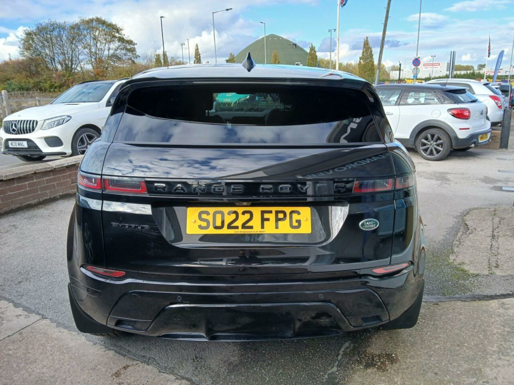 . 10in Deployable Touchscreen, 12-Way Driver and 10-Way Passenger Heated Electric Front Seats with 2-Way Manual Headrests and Rear Centre Armrest, 20in Alloy Wheels - Style 5079 - Gloss Black, 40-20-40 Folding Rear Seats, ABS - Anti Lock Braking System, ACC - Adaptive Cruise Control, ATPC - All Terrain Progress Control, All Season Tyres, Ambient Interior Lighting, Analogue Dials with Central TFT Display, Android Auto, Apple CarPlay, Approach Lights, Auto-Dimming Interior Rear View Mirror, Automatic Headlights, Black Exterior Pack, Bluetooth Connectivity, Body Coloured Roof, Brake Pad Wear Indicator, Bright Metal Pedals, Cabin Lighting, Carpet Mats, Chrome Treadplates, Customer Configurable Autolock, DAB - Digital Audio Broadcast, DSC - Dynamic Stability Control, Driver Condition Monitor, EBA - Emergency Brake Assist, EBD - Electronic Brake-Force Distribution, EPAS - Electronic Power Assisted Steering, ETC - Electronic Traction Control, Efficient Driveline, Electric Parking Brake, Electric Windows with One-Touch Open-Close and Anti-Trap, Emergency Braking, Evoque Badge, Fixed Panoramic Roof Including Powered Blind, Flush Deployable Door Handles, Front and Rear Parking Aid, HDC - Hill Descent Control, Headlining - Ebony Morzine, Heated Electric Power Fold Door Mirrors with Approach Lights and Auto-dimming Driver Side, Heated Rear Window with Timer, Hill Launch Assist, Intrusion Sensor, LED Headlights, Lane Keep Assist, Leather Steering Wheel, Locking Wheel Nuts, Low Traction Launch, Manual Headlight Levelling, Manually Adjustable Steering Column, Meridian Sound System, Online Pack with Data Plan, Overhead Lighting Console, Overhead Stowage for Sunglasses, Passive Front Headrests, Passive Suspension, Pivi Pro - Connected, Power Operated Child Locks, Power Socket Pack 1, Powered Tailgate, Privacy Glass, Push Button Start, R-Dynamic Exterior Pack, RSC - Roll Stability Control, Rain Sensing Windscreen Wipers, Rear Air Vents, Rear Animated Directional Indicators, Rear Centre Headrest, Rear Collision Monitor, Rear Fog Lights, Rear ISOFIX, Rear View Camera, Remote, Satin Chrome Gearshift Paddles, Seat Belt Reminder, Secure Tracker (12 Month Subscription From New), Six Airbags, Steering Wheel - Heated, Sun Visors - Illuminated Vanity Mirrors, TPMS - Tyre Pressure Monitoring System, TVBB - Torque Vectoring by Braking, Tailgate Spoiler, Terrain Response 2, Traffic Sign Recognition and Adaptive Speed Limiter, Trim Finish - Gradated Linear Dark Aluminium, Twin Sliding Front Centre Armrest, Two-Zone Climate Control, Windscreen - Heated, Windscreen Washer Jets - Heated, Wireless Device Charging.