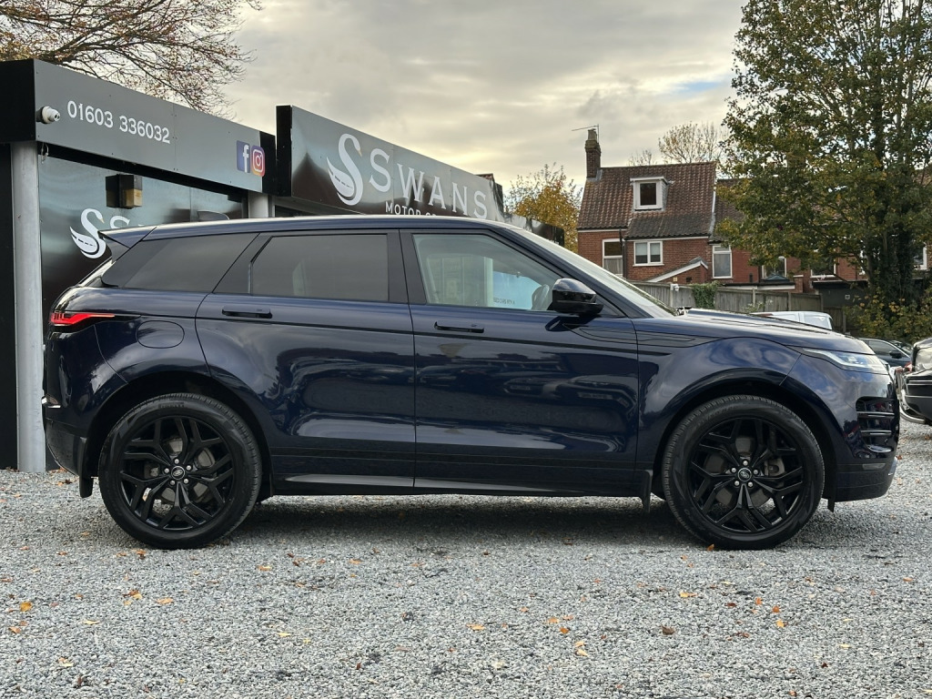 2022 Land Rover Range Rover Evoque 2.0 D200 MHEV R-Dynamic SE 5 Door SUV Blue , , ???? THIS VEHICLE HAS JUST HAD PROFESSIONAL PAINT CORRECTION AND LOOKS AS GOOD AS NEW! ????, , **MEGA SPEC INCLUDING: ELECTRICALLY DEPLOYABLE TOWBAR, MERIDIAN SOUND SYSTEM, FACTORY BLACK PACK, 20 INCH ALLOYS, FACTORY BLACK PACK, ELECTRIC MEMORY SEATS, REAR CAMERA, AUTOMATIC TERRAIN RESPONSE, DYNAMIC DRIVING MODE, PLUS MUCH MORE.**, , Having recently arrived with us, this stunning Range Rover Evoque finished in Portofino Blue with Ebony Leather Interior is presented in absolutely immaculate condition all-round. We have paid for a full professional detail which included a two-stage machine polish to ensure the car looks as good as it can. Specified with some fantastic optional extras including electrically deployable towbar, black pack and more. , - 64903 MILES. - 1 FORMER KEEPER. - 195 POUNDS ROAD TAX PER YEAR. - TWO KEYS. - HPI CLEAR. - FULL LAND ROVER SERVICE HISTORY WITH 3 ENTRIES IN TOTAL. , All of our retail vehicles are sold with the Swans Promise, and will go through our rigorous preparation process which includes:, - A minimum of 9 months MOT at point of sale. - No-obligation 2 Year Service Plan quote provided for every customer. - A routine service carried out, if due within next 3 months or 3,000 miles at point of sale. - Thorough safety check and road test carried out by our experienced vehicle technicians. Our on-site workshop takes pride in professionally preparing your new car to a satisfactory standard. - 3 Months Warranty (Upgrades available, please ask for details). - Full HPI Report - all of our cars are HPI checked. - Drive away insurance available, please ask for details, - We do not charge any admin fees*, , **PART EXCHANGE AVAILABLE** , , **PARTNERS WITH CLOSE BROTHER MOTOR FINANCE**, , **COMPETITIVE FINANCE OPTIONS AVAILABLE FOR ALL CREDIT PROFILES, APPLY BELOW AND GET ACCEPTED TODAY! **, , **BROKERS CHARGE FEES, WE DO NOT! TALK TO US FOR A NO-OBLIGATION QUOTE TO ENSURE YOU GET THE LOWEST MONTHLY PAYMENT POSSIBLE**, , **EVERY CAR RECEIVES A PROFESSIONAL VALET UPON ARRIVAL AND REFRESH PRIOR TO COLLECTION**, , **ASK ABOUT OUR UPGRADED VALETING OPTIONS**, , Swans Motor Group are proud to be a highly reputable, family run used vehicle dealership in the Norwich area. Having originally established our business in 2012, we have a friendly team who all benefit from previous main-dealer experience cited to assist you along the journey of purchasing your next vehicle. We have over 60 combined years of experience in various sectors of the motor industry, so you can rest assured that you are in safe hands with Swans. Customer satisfaction is our number one priority; therefore, we offer a stress-free, personable buying experience. We look forward to welcoming you to our business soon!, , We are located close to Norwich City Centre, at 231-245 Heigham Street, Norwich, NR2 4LN. , DISCLAIMER, Although we make every effort to ensure our advertised vehicle specifications are correct, due to being computer-generated, there can sometimes be errors. Please call us to verify any vehicle specifications if you are unsure or require clarification. , Admin fees may apply when using out-of-house finance companies/brokers Please contact us for details. We do not charge any admin fees for using our in-house finance options.