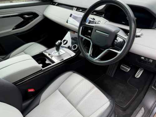 NATION WIDE DELIVERY-Good service history pan roof great spec ! The 2021 Land Rover Range Rover Evoque D200 R-Dynamic SE combines luxury with practical features. The R-Dynamic SE trim complements the vehicle's sleek design, while the Euro 6 compliant 2.0L diesel engine ensures efficient performance. Experience superior handling with its four-wheel drive system.Inside, enjoy the comfort of 12-way heated electric driver memory seats, complete with 2-way manual headrests and heated rear seats. The Meridian Surround Sound System transforms every journey into an auditory delight. Manoeuvring is made easy with the 3D Surround Camera, which includes parking assistance with 360-degree, front, and rear sensors. The premium carpet mats add a touch of elegance, and the 20in alloy wheels enhance the vehicle's sophisticated appearance. The acceleration of 0-60mph in 7.9 seconds demonstrates its responsive performance, making it a joy to drive. ridian surround sound system, 20in alloy wheels - 5 split-spoke - style 5076 - gloss mid-silver with contrast diamond turned finish, 12-way heated electric driver memory seats with 2-way manual headrests and heated rear seats, premium carpet mats, 12-way heated electric driver memory seats with 2-way manual headrests, 20in alloy wheels - 5 split-spoke - style 5079 - gloss sparkle silver, 3d surround camera, abs - anti lock braking system, atpc - all terrain progress control, airbags - front - driver and front passenger, all season tyres, android auto, animated directional indicators, apple carplay, auto-dimming interior rear view mirror, automatic headlight levelling, blind spot assist, bluetooth connectivity, body coloured roof, bright metal pedals, cabin lighting, carpet mats, chrome treadplates, clear exit monitor, cruise control and speed limiter, dab - digital audio broadcast, driver condition monitor, epas - electronic power assisted steering, efficient driveline, electric windows with one-touch open-close and anti-trap, emergency braking, front and rear parking aid, headlights - automatic high beam assist, headlining - ebony morzine, heated electric power fold door mirrors with approach lights and auto-dimming driver side, interactive driver display, intrusion sensor, lane keep assist, locking wheel nuts, manually adjustable steering column, online pack with data plan, passive suspension, perforated leather steering wheel, pivi pro - connected, power socket pack 1, powered tailgate, premium led headlights with signature drl, r-dynamic exterior pack, rear isofix, remote, satin chrome gearshift paddles, secure tracker - 12 month subscription, sound system, standard roof, tpms - tyre pressure monitoring system, terrain response 2, touch pro duo, traffic sign recognition and adaptive speed limiter, trim finish - gradated linear dark aluminium, two-zone climate control, tyre repair system, wade sensing, windscreen - heated, windscreen washer jets - heated
