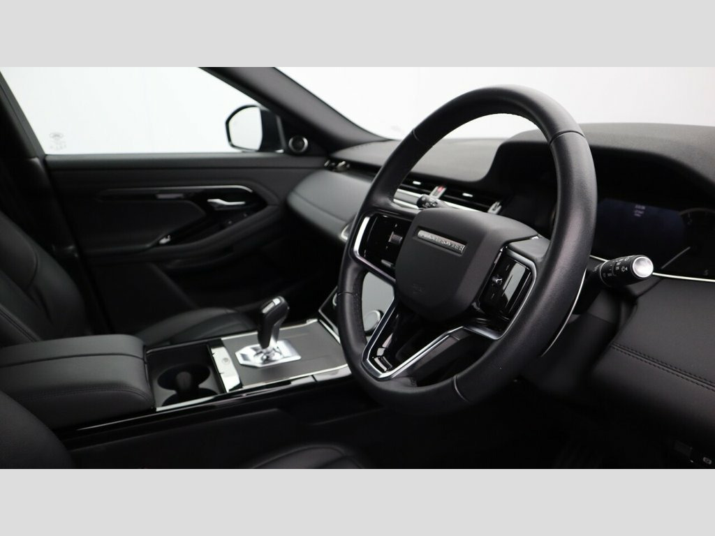 This Amazing Evoque R-Dynamic SE Model Is Finished In Santorini Black With Black Leather & Black Pack! This Stunning Car Has Had Just One Owner From New, Covered Only 21,000 Miles With Service History! Full Specification Includes: Full Black Leather Interior, Black Exterior Pack, Black Contrast Roof, 20in Alloy Wheels - Style 5079 - Gloss Black, Privacy Glass, Full Touch Screen Satellite Navigation & Command Centre, Interactive Driver Display, Bluetooth & Bluetooth Audio Connection, Reverse Parking Camera, Front & Rear Parking Sensors, Electric Adjustable Heated Seats With Memory Functional Seats, Multi Function Steering Wheel With Paddle Shift Controls, Cruise Control, R-Dynamic Exterior Pack, Premium LED Headlights with Signature DRL, Lane Keep Assist, DAB Radio, Apple Car Play, Android Auto, Electric Folding Door Mirrors, Flush Deployable Door Handles, Dual Zone Electronic Climate Control With Auto Air Conditioning.