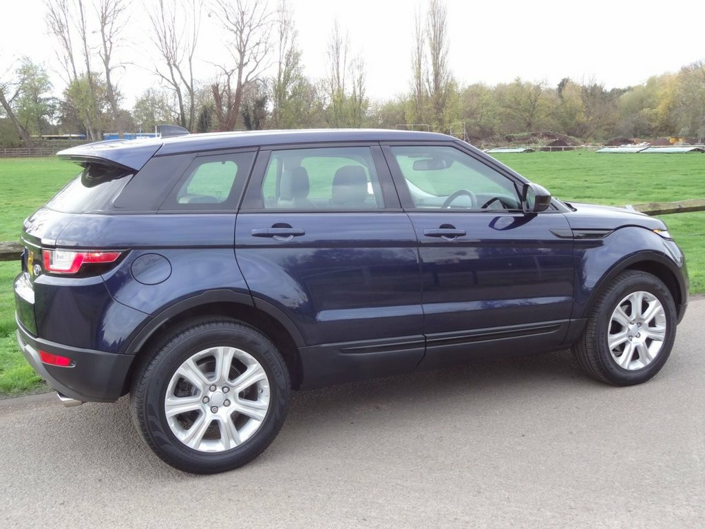 SWANCAR ESTABLISHED IN 1974 ARE DELIGHTED TO OFFER THIS RANGE ROVER EVOQUE 2.0D SE TECH eD4 6SP MANUAL FINISHED IN METALLIC LOIRE BLUE WITH 2 TONE BLACK AND BEIGE LEATHER INTERIOR. SPECIFICATION INCLUDES-- SATELLITE NAVIGATION, HEATED FRONT SEATS, FRONT AND REAR PARK DISTANCE CONTROL, ELECTRIC FRONT SEATS, MULTI FUNCTION STEERING WHEEL WITH CRUISE CONTROL, 18 INCH 7 SPOKE ALLOY WHEELS, BLUETOOTH FOR HANDS-FREE, ELECTRIC MIRRORS AND REMOTE CENTRAL LOCKING. Loire Blue, 12-12 Way - Electric Seats, 12V Auxiliary Power Sockets - Front and , 18in Alloy Wheels - 7 Spoke - Style 706 , 5in TFT Driver Information Centre, 8in High Resolution Touch Screen, ABS - Anti Lock Braking System, Airbags - Driver Knee, Airbags - Front - Driver and Front Passe, Airbags - Side Curtain - Driver and Fron, Auto-Dimming Interior Mirror, Auxiliary Power Socket - Front and Lugga, Bluetooth Telephone Connectivity with St, Body Coloured Door Handles, Body Coloured Roof with Matching Spoiler, Body-coloured Door Claddings, Cabin Air Quality Sensor, Carpet Mats with Edging, Centre console - Covered Storage Compart, Climate Control - Automatic with Air Fil, Climate Control - R