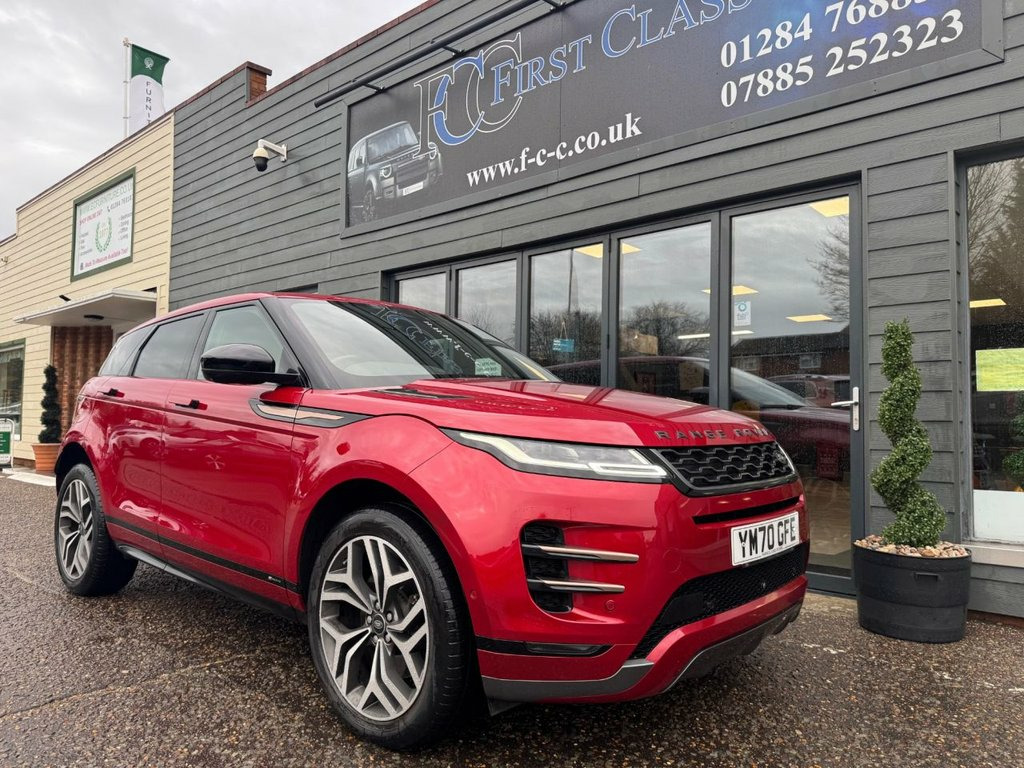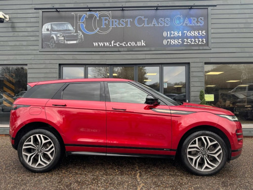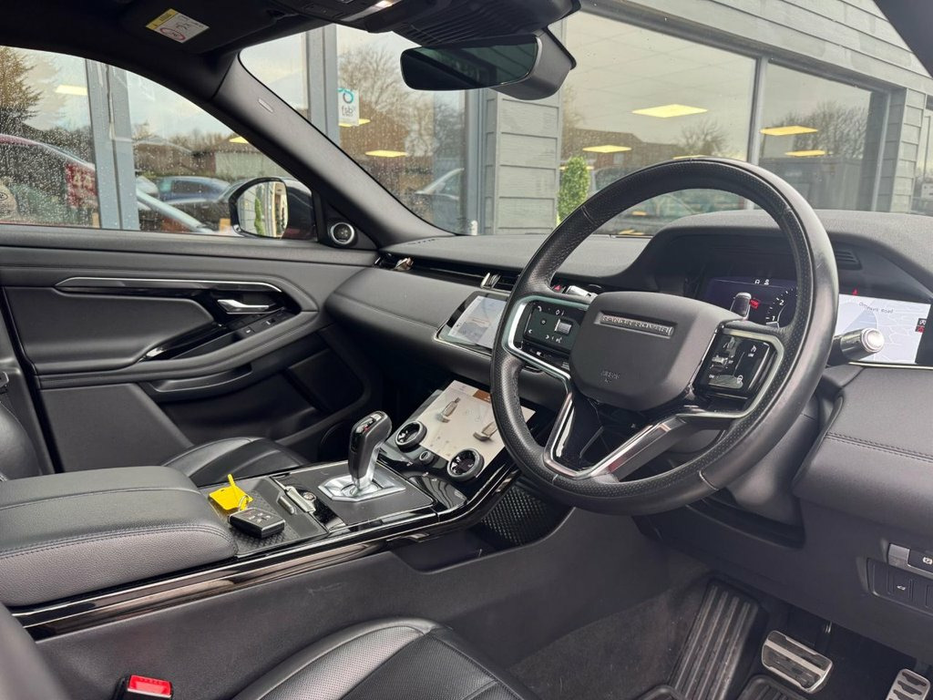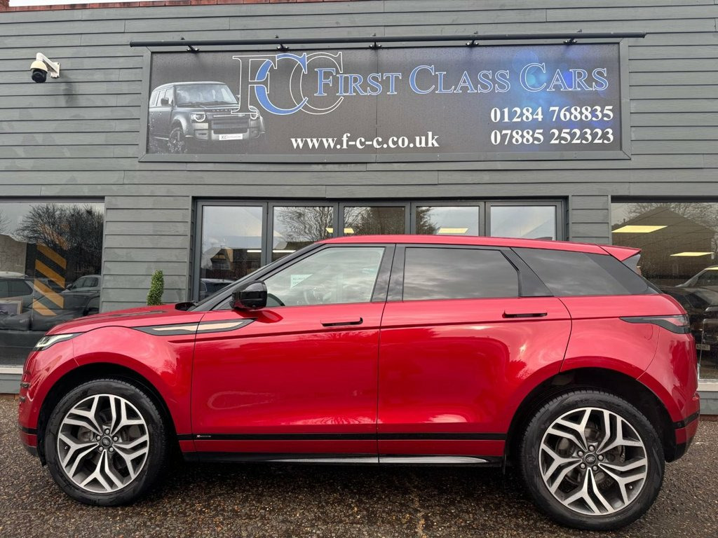 THIS RANGE ROVER EVOQUE 2.0ltr PETROL MHEV R-DYNAMIC SE AUTO IS VERY WELL SPECIFIED, BOASTING FULL PANORAMIC GLASS ROOF, FRONT & REAR HEATED LEATHER SEATS, HEATED STEERING WHEEL, PRIVACY GLASS, BLIND SPOT MONITOR AND 360 SURROUND CAMERAS. THE CAR IS SUPPLIED WITH TWO KEYS, 6 MONTH RAC WARRANTY AND 12 MONTH ROADSIDE ASSISTANCE. PLEASE CALL FOR A BESPOKE FINANCE DEAL WITH RATES FROM 8.9%APR STS AND PROFILE CHECKS. WE MAY RECEIVE A COMMISSION FROM THE LENDER ON INTRO TO THEM. ASK FOR MORE DETAILS. OPEN 6 DAYS A WEEK, CLOSED ON SUNDAYS. Meridian Sound System, 12-Way Heated Electric Driver Memory Sea, 20in Alloy Wheels - 5 Split-Spoke - Styl, Fixed Panoramic Roof Including Powered B, Grained Leather - Ebony with Ebony-Ebony, Firenze Red, Steering Wheel - Heated, Privacy Glass, 12-Way Heated Electric Driver Memory Sea, 20in Alloy Wheels - 5 Split-Spoke - Styl, 3D Surround Camera, ABS - Anti Lock Braking System, ATPC - All Terrain Progress Control, Airbags - Front - Driver and Front Passe, All Season Tyres, Android Auto, Animated Directional Indicators, Apple CarPlay, Auto-Dimming Interior Rear View Mirror, Automatic Headlight Levelling, Blind Spot Assist, Bluetooth Connectivity, Body Coloured Roof, Bright Metal Pedals, Cabin