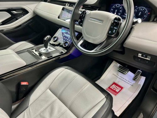 Massive Specification, Super Rare 'Petrol' P250 and Just 2 Owners From New. Our 'First Edition' Evoque is Presented in Nolita Grey with Ebony and Cloud Leather Upholstery, a Full length Panoramic Roof and 20 Inch Diamond Turned alloy wheels. A truly stunning car with a near endless specification. Factory trim includes Touch Screen Navigation, Bluetooth and Multi-media Connectivity, 3 Stage seat Heating, a Heated Steering wheel and Heated Windscreen, 'Heads Up' Display, a Meridian Music System, Apple Car Play and Android Auto, Electric seat adjustment with 3 Memory settings for driver and passenger, an Automated Parking System, Front and Rear Park Assist plus a Reverse Angle Camera, Dual zone digital climate control, Adaptive Cruise Control, Configurable Ambient lighting, Factory Privacy Glass and a Power operated tailgate. Supplied with 2 Keys, Original Hand book pack and Land Rover Main Dealer Service Confirmation at 8186m, 15645m and 25334 miles