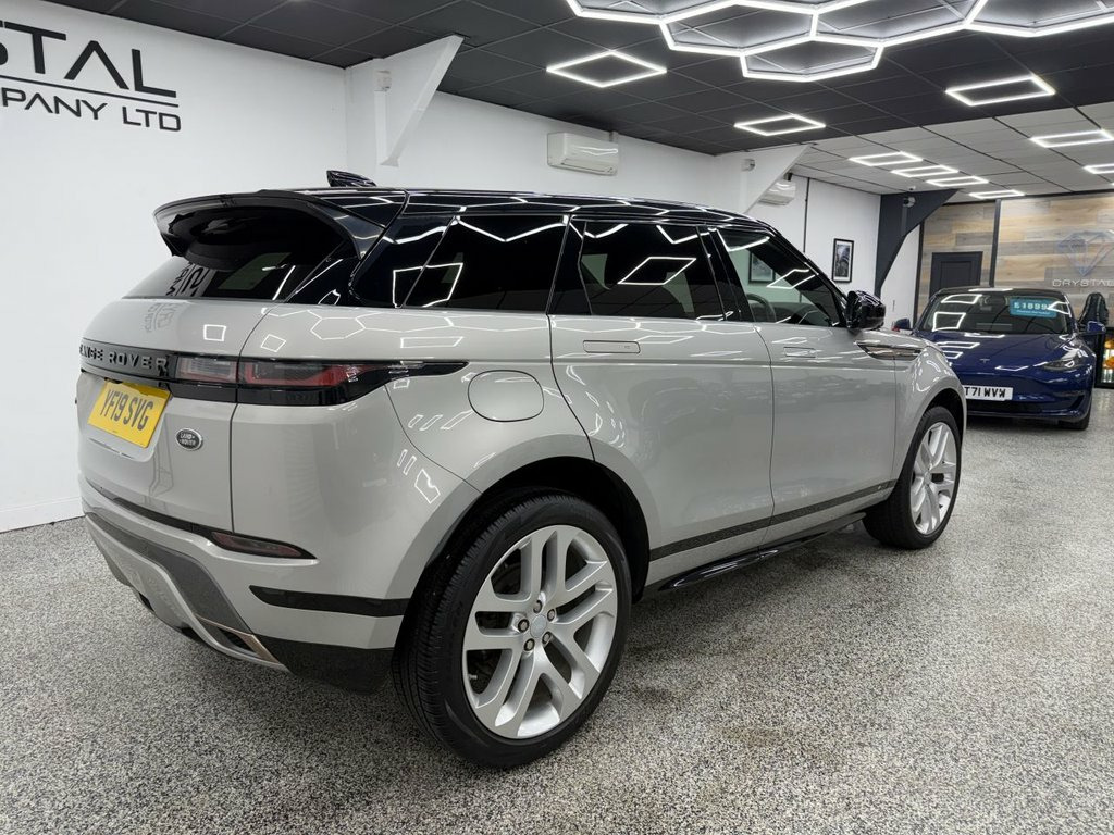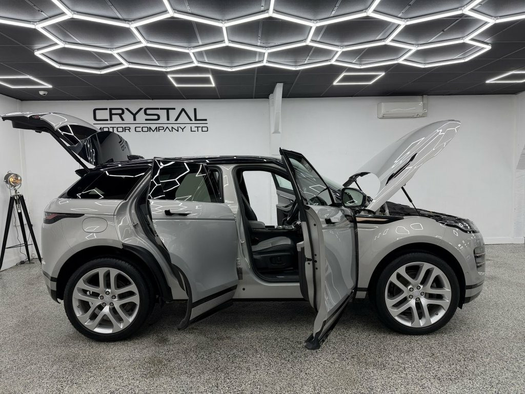 Crystal motor company are delighted to offer for sale this beautifully presented 2019 LAND ROVER RANGE ROVER EVOQUE 2.0 P250 MHEV First Edition SUV 5dr Petrol Auto 4WD Euro 6 (s/s) (249 ps) finished in SEOUL PEARL SILVER. This car comes with TWO KEYS, TWO FORMER KEEPERS, LAND ROVER SERVICE HISTORY. This car is equipped with 21" ALLOY WHEELS, FRONT AND REAR PARKING SENSORS, REAR REVERSING CAMERA, ELECTRIC REAR TAILGATE, ELECTRIC FOLDING WING MIRRORS, BLIND SPOT ASSIST, LED MATRIX HEADLIGHTS, FIXED PANORAMIC ROOF, TWO TONE LEATHER INTERIOR, ELECTRIC MEMORY FRONT SEATS, HEATED FRONT SEATS, HEATED STEERING WHEEL, ADAPTIVE CRUISE CONTROL, VIRTUAL COCKPIT, HEADS UP DISPLAY, MERIDIAN SOUND SYSTEM, AMBIENT LIGHTING (10 COLOUR CHOICE), CLEARSIGHT INTERIOR MIRROR, DAB RADIO, BLUETOOTH AUDIO, BLUETOOTH PHONE CONNECTION, SATNAV, APPLE CARPLAY, ANDROID AUTO. The car is 100% HPi clear. Part exchange and finance are available and all major credit and debit cards accepted. Crystal Motor Company Ltd Used Programme includes a full PDI inside and out, MOT, mileage certificate and a full inside and out valet. You can request a personalised video with attention given to any specifics you would like a better view of and we will be pleased to assist you. Likewise, we offer our customers a free collection service. Our journey began in 1996 with the aim to deliver the best possible customer experience, you will enjoy a completely hassle free approach, no pressure and great prices, values we st 14-way - Heated Electric Memory Front Se, 21in Alloy Wheels - 5 Split-Spoke - Styl, 360 Degree Parking Aid, 40-20-40 Split Fold Rear Seat, ABS - Anti Lock Braking System, ACC - Adaptive Cruise Control, Airbags - Driver Knee, Airbags - Front - Driver and Front Passe, All Season Tyres, Android Auto, Apple CarPlay, ATPC - All Terrain Progress Control, Auto-Dimming Power Fold - Heated Door Mi, Automatic Headlight Levelling, Automatic Headlights, Autonomous Emergency Braking, Badge Removal, Black Contrast Roof, Black Gearshift Paddles, Blind Spot Assist, Bluetooth Connectivity, Brake Pad Wear Indicator, Bright Metal Pedals, Clear Exit Monitor, ClearSight Interior Rear View Mirror, Configurable Am
