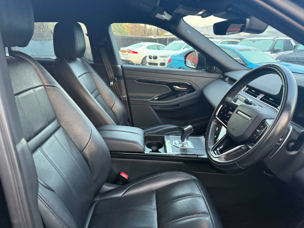 ***WE ARE A RAC APPROVED & AA APPROVED GARAGE***THE CAR COMES WITH A FULL SERVICE HISTORY/LATEST SERVICE CARRIED OUT/OIL SERVICE CARRIED OUT/2 KEYS/ALLOYS HAVE BEEN REFURBISHED TO A HIGH STANDARD/GOOD TYRES/ULEZ FREE/90 DAYS PARTS AND LABOUR WARRANTY INCLUDED IN THE ASKING PRICE/EXTENDED WARRANTIES AVAILABLE STARTING FROM £80.00 A MONTH/WARRANTIES AVAILABLE UP TO 3 YEARS/MINIMUM 6 MONTHS MOT/FREE 12 MONTHS BREAKDOWN COVER PROVIDED WITH AA/FINANCE AVAILABLE/DELIVERY AVAILABLE/PDI CARRIED OUT ON ALL VEHICLES/HPI CLEAR/PART EXCHANGES WELCOME ANY QUESTIONS PLEASE DO GET IN CONTACT WITH US*****ADMIN FEE APPLIES ON ALL USED CARS*****LOCATED BEHIND TOP GOLF*****KT15 2DW*****PLEASE SEE T & C'S ON OUR WEBSITE FOR MORE INFORMATION***** in front cupholders with cover, privacy glass, 18in alloy wheels - 5-split spoke - style 5074 - gloss sparkle black, steering wheel - heated, premium carpet mats, black contrast roof, black exterior pack, 10-way heated electric front seats, 10in touch pro, 18in alloy wheels - 5-split spoke - style 5074 - gloss sparkle silver, 40-20-40 split fold rear seat, abs - anti lock braking system, atpc - all terrain progress control, airbags - driver knee, airbags - front - driver and front passenger, all season tyres, ambient interior lighting, analogue dials with central tft display, android auto, apple carplay, auto-dimming - power fold - heated door mirrors with approach lights, auto-dimming interior rear view mirror, automatic headlights, autonomous emergency braking, black gearshift paddles, bluetooth connectivity, body coloured roof, brake pad wear indicator, bright metal pedals, carpet mats, chrome treadplates, cruise control and speed limiter, customer configurable autolock, dab - digital audio broadcast, dsc - dynamic stability control, driver condition monitor, eba - emergency brake assist, ebd - electronic brake-force distribution, epas - electronic power assisted steering, etc - electronic traction control, efficient driveline, electric parking brake, electric windows with one-touch open-close and anti-trap, evoque and r-dynamic badge, flush deployable door handles, front and rear parking aid, hdc - hill descent control, headlining - ebony morzine, heated rear window with timer, hill launch assist, incontrol - remote app, incontrol apps, intrusion sensor, led headlights, lane keep assist, leather steering wheel, locking wheel nuts, low traction launch, manual headlight levelling, manual tailgate, manually adjustable steering column, navigation pro, overhead lighting console, overhead stowage for sunglasses, p250 badge, passive front headrests, passive suspension, power operated child locks, power socket pack 1, pro services and wi-fi hotspot, push button start, r-dynamic exterior pack, rsc - roll stability control, rain sensing windscreen wipers, rear air vents, rear fog lights, rear isofix, rear view camera, s badge, seat belt reminder, seats - rear centre head restraint, side curtain airbags and thorax, smart settings, sound system, standard roof, sun visors - illuminated vanity mirrors, tpms - tyre pressure monitoring system, tailgate spoiler, terrain response 2, torque vectoring, traffic sign recognition and adaptive speed limiter, trim finish - gradated linear dark aluminium, twin sliding front centre armrest, two-zone climate control, tyre repair system, voice control, windscreen - heated, windscreen washer jets - heated
