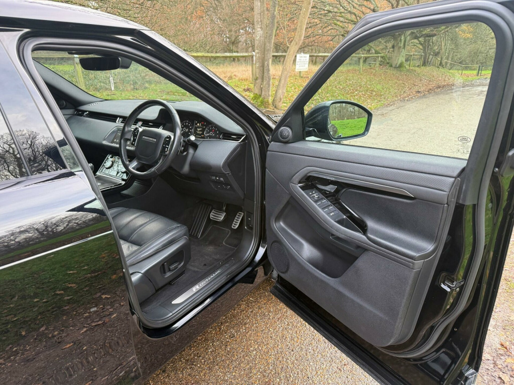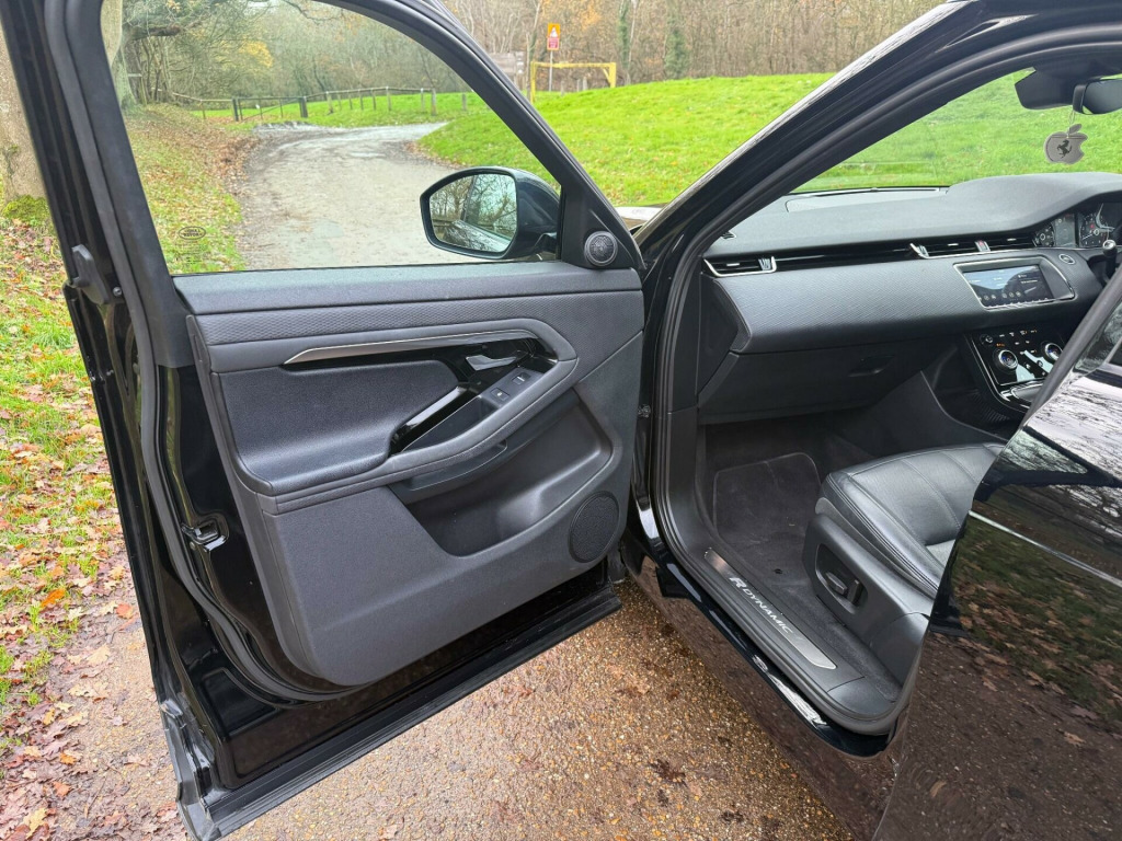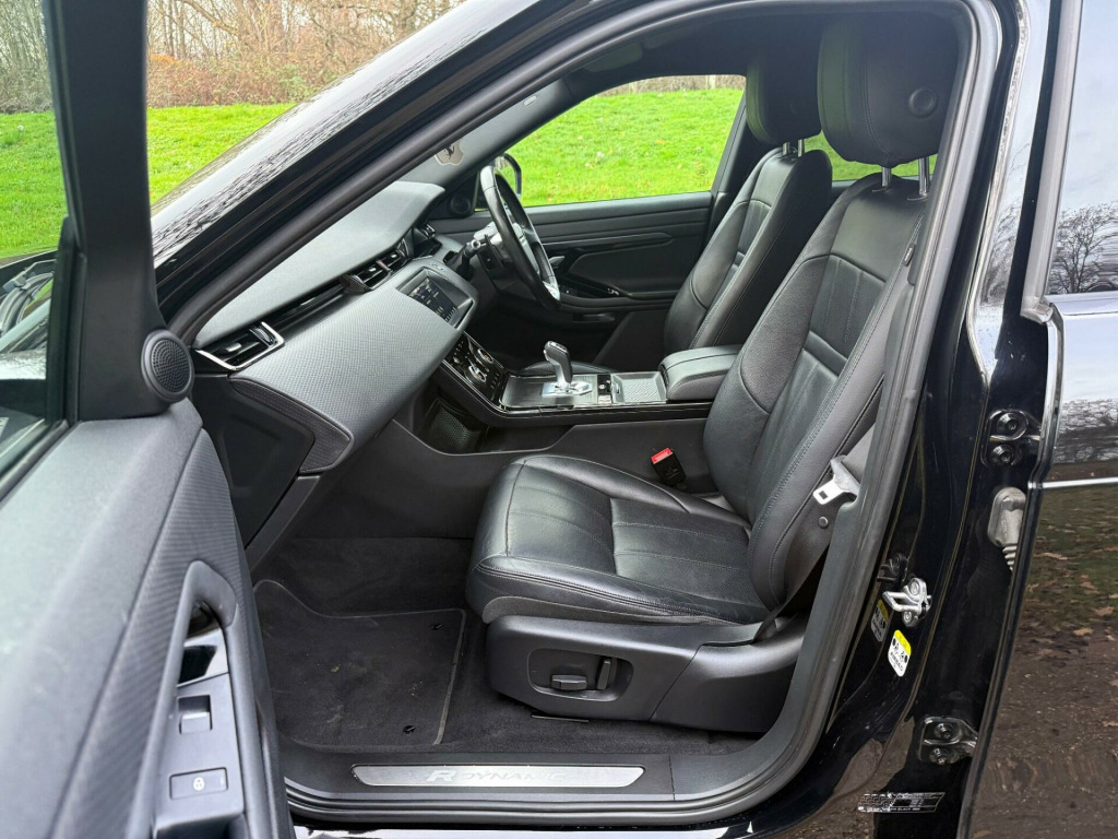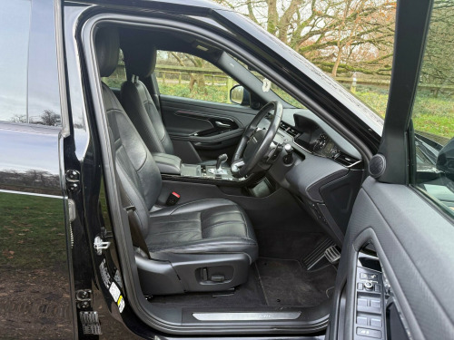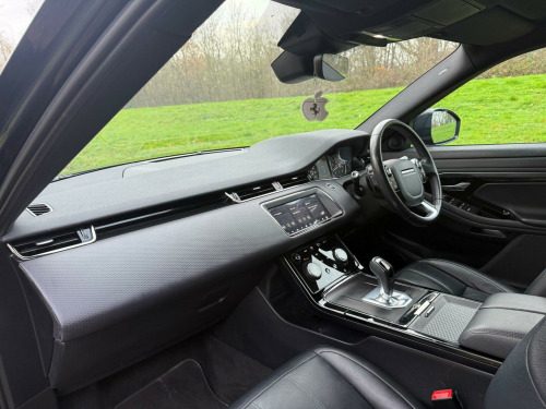This 2019 Land Rover Range Rover Evoque P250 R Dynamic S boasts a clear vehicle history, offering peace of mind for its next owner. This stylish SUV features a 2.0 litre petrol engine paired with a four wheel drive system, ensuring capable performance in various conditions. Its Euro 6 emission class meets current environmental standards. Notable features include a striking Black Contrast Roof, an enhanced Black Exterior Pack, and Premium Carpet Mats for added comfort and a touch of luxury. The Power Socket Pack 2 provides convenient charging options, and the P250 badge signifies its specific engine variant.The Evoque P250 R Dynamic S delivers an engaging driving experience, highlighted by its brisk acceleration from 0 to 60 miles per hour in just 7.0 seconds. This performance metric indicates a more dynamic and responsive feel compared to many other vehicles in its class. The combination of its sophisticated design, robust Land Rover engineering, and the specific R Dynamic S trim level makes this Evoque a compelling choice for those seeking a premium and capable compact SUV. wer socket pack 2, black contrast roof, black exterior pack, privacy glass, grained leather - ebony with ebony-ebony interior, premium carpet mats, front fog lights, 10-way heated electric front seats, 10in touch pro, 18in alloy wheels - 5-split spoke - style 5074 - gloss sparkle silver, 40-20-40 split fold rear seat, abs - anti lock braking system, atpc - all terrain progress control, airbags - driver knee, airbags - front - driver and front passenger, all season tyres, analogue dials with central tft display, android auto, apple carplay, auto-dimming - power fold - heated door mirrors with approach lights, auto-dimming interior rear view mirror, autonomous emergency braking, black gearshift paddles, bluetooth connectivity, body coloured roof, brake pad wear indicator, bright metal pedals, carpet mats, chrome treadplates, climate control - rear vents, cruise control and speed limiter, customer configurable autolock, dab - digital audio broadcast, dsc - dynamic stability control, driver condition monitor, eba - emergency brake assist, ebd - electronic brake-force distribution, epas - electronic power assisted steering, etc - electronic traction control, efficient driveline, electric parking brake, electric windows with one-touch open-close and anti-trap, evoque and r-dynamic badge, flush deployable door handles, front and rear parking aid, hdc - hill descent control, headlining - ebony morzine, heated rear window with timer, hill launch assist, incontrol - remote app, incontrol apps, interior lighting, intrusion sensor, led headlights, lane keep assist, locking wheel nuts, low traction launch, manual headlight levelling, manual tailgate, manually adjustable steering column, navigation pro, overhead lighting console, overhead stowage for sunglasses, p250 badge, passive front headrests, passive suspension, perforated leather steering wheel, power operated child locks, power socket pack 1, pro services and wi-fi hotspot, push button start, r-dynamic exterior pack, rsc - roll stability control, rain sensing windscreen wipers and automatic headlights - automatic, rear fog lights, rear isofix, rear view camera, s badge, seat belt reminder, seats - rear centre head restraint, shadow atlas - range rover - bonnet and tailgate script, side curtain airbags and thorax, smart settings, sound system, sun visors - illuminated vanity mirrors, tpms - tyre pressure monitoring system, tailgate spoiler, terrain response 2, torque vectoring, traffic sign recognition and adaptive speed limiter, trim finish - gradated linear dark aluminium, twin front cupholders with cover, twin sliding front centre armrest, two-zone climate control, tyre repair system, voice control, windscreen - heated, windscreen washer jets - heated