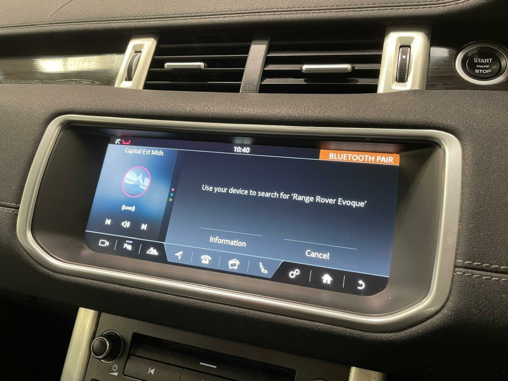 FINANCE & PART EXCHANGE AVAILABLE* - Only 36,336 miles from new, SERVICE HISTORY, 2 KEYS - this RARE 4WD RANGE ROVER EVOQUE HSE DYNAMIC is finished in stunning sports black & is complimented with contrasting full black leather sports trim and extends itself to the following additional features - Range Rover Dynamic sports styling, full glass panoramic sunroof with electric sun blind, on board satellite navigation system, reverse camera, dual zone climate control / automatic air conditioning, trip computer, cruise control, leather trimmed multi function steering wheel with paddle shift, front & rear park distance control, driver & passenger electric heated front seats with memory, Bluetooth telephone prep, DAB digital radio, media input, InControl Apps, Apple CarPlay / Android Auto, web browser, Meridian sound system, voice command, keyless start, start / stop, terrain mode select, heated front screen, lane departure warning, cross traffic detection, blind spot monitoring, autonomous emergency braking, lumbar support, electric tailgate, electric folding & heated exterior mirrors, Xenon auto headlights, rain sensor, power assisted steering, abs, airbags, electric mirrors, electric windows, remote central locking, head restraints, Range Rover 20'' sports alloy wheels, Range Rover anti theft system. ***FINANCE AVAILABLE - subject to status. T&C's apply.***PART EXCHANGE AVAILABLE***ALL VEHICLES ARE HPI & NATIONAL MILEAGE REGISTER CHECKED***THE AA WARRANTY IS SUBJECT TO TERMS & CONDITIONS AND DOES NOT COVER VEHICLES THAT ARE BEING USED FOR TAXI, PRIVATE HIRE, CHAUFFEURING PURPOSES OR FOR REWARD.***Please note, that the specifications/components/features etc. are generic to that vehicle of the type advertised but may not be included in the specific vehicle that is for sale. It is for the intended purchaser to satisfy themselves of the presence or absence of any specifications/components/features before sale. Please ask if you are uncertain of anything and we will see if we can assist.. 10.2in High Resolution Touch Screen, 12-12 Way - Electric Memory Seats, 12V Auxiliary Power Sockets - Front and Luggage Compartment, 20in Alloy Wheels - 5 Split Spoke Style 504 - Sparkle Silver Finish, 5in TFT Driver Information Centre, ABS - Anti Lock Braking System, ATPC - All Terrain Progress Control, Active Driveline, Airbags - Driver Knee, Airbags - Front - Driver and Front Passenger, Airbags - Side Curtain - Driver and Front Passenger and Row Two, Auto-Dimming Interior Mirror, Auxiliary Power Socket - Front and Luggage Compartment, Bluetooth Telephone Connectivity with Streamed Audio, Body Coloured Door Handles, Body Coloured Roof with Matching Spoiler, Body-coloured Door Claddings, Bright Pedals, CD-DVD Player, Cabin Air Quality Sensor, Carpet Mats with Edging, Centre console - Covered Storage Compartment, Climate Control - Automatic with Air Filtration and Automatic Recirculation, Climate Control - Rear Vents, Customer Configurable Interior Mood Lighting, DAB - Digital Audio Broadcast, DSC - Dynamic Stability Control, Door Mirrors - Narvik Black, Dynamic Body Style, Dynamic Front and Rear Bumper, EBA - Emergency Brake Assist, EBD - Electronic Brake-Force Distribution, EDC - Engine Drag Torque Control, EPAS - Electronic Power Assisted Steering, Electric Parking Brake, Engine Badge - HSE Si4, Evoque Badge in Red, Exhaust Finishers - Bright Square, Exterior Mirrors - Electric Adjustment-Heated-Power Fold-Puddle Lamps with Projected Evoque Graphic-Direction Indicators-Memory Function with Auto Dipping in Reverse Gear, Front Fog Lights, Front Height-adjustable Seat Belts, Front and Rear Parking Aid, Global Opening for all Windows, Grille Surround - Corris Grey, HDC - Hill Descent Control, HSA - Hill Start Assist, Hazard Warning Lights Under Heavy Braking, Headlight Power Wash, Headlights - Automatic High Beam Assist, Headlights - Xenon with Automatic Levelling and LED Signature Lights, Heated Front Seats, Heated Rear Screen, ISOFIX Mounting Points in Outboard Rear Seats, Illuminated Range Rover Treadplates, Illumination - White Ambient Lighting, Illumination - White Lighting, Illumination for Footwell-Glovebox-Load Compartment Lamp x1, InControl Protect, InControl Touch Pro - Level 2, InControl Touch Pro Navigation, Lane Departure Warning with Autonomous Emergency Braking, Locking Wheel Nuts, Luggage Compartment - Anchor Points, Luggage Cover, Manual Tailgate, Manually Adjustable Steering Column - Four-Way, Narvik Black Bonnet Louvres, Narvik Black Fender Blade, Narvik Black Grille, Narvik Black Inner and Indus Silver Outer Front and Rear Tow Eye Finishers, Paddle Shift and Sport Mode, Parking Aid - Front, Perforated Oxford Leather Steering Wheel with Audio Controls and Cruise Control, Proximity Sensing and Touch Detection For Overhead Map Lights, Push Button Start, RSC - Roll Stability Control, Rain Sensing Windscreen Wipers and Automatic Headlights - Automatic, Range Rover Smart Key Controls - Remote lock-Unlock-Double Lock-Lights on Tailgate Open, Rear Centre Armrest, Rear View Camera, Satin Brushed Aluminium Centre Console Finisher, Seat Belt Reminder, Seats - Rear Centre Head Restraint, Side Sills - Anthracite, Sun Visors - Illuminated Vanity Mirrors, TCS - Traction Control System, TPMS - Tyre Pressure Monitoring System, TSA - Trailer Stability Assist, Tailgate Finisher in Narvik Black, Terrain Response, Three Seat Bench - 60-40 Split, Torque Vectoring, Trim Finisher - Textured Aluminium, Tyre Repair System, USB Connectivity, Volumetric Alarm, Windscreen - Heated, Windscreen Washer Jets - Heated, Autonomous Emergency Braking, Body Coloured Lower Door Claddings, Bonnet and Tailgate Badging - Atlas, Dynamic Body Styling, Engine Badge - HSE, Exhaust Finishers - Dynamic Bright, Fender Vent Blade - Narvik Black, Fixed Panoramic Roof Including Powered Blind, Fog Light Finisher - Narvik Black, Front and Rear Bumpers - Body Coloured, Front and Rear Lower Bumpers - Anthracite, Grille Bars - Narvik Black, Grille Ou