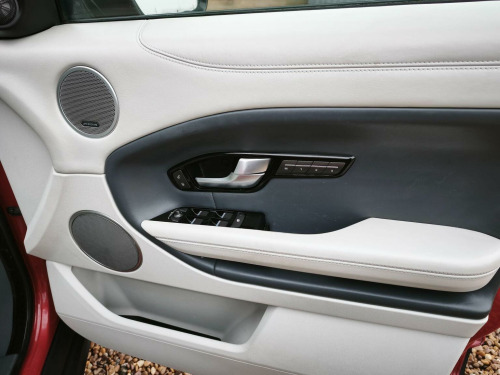 New Stock, Just Arrived is this fantastic 4X4 Boasting a full dealership service history and a clear vehicle history check, this 2017 Land Rover Range Rover Evoque TD4 Autobiography presents a well maintained example. This four wheel drive model features a 2.0L diesel engine and meets Euro 6 emissions standards. It comes with a 12 month warranty for your peace of mind, and its MOT is valid until August 2026. Notable features include a striking Santorini Black contrast painted roof with a matching spoiler, Heated and Cooled seats, front passenger memory seats, automatic headlights, heated rear seats, and an advanced Blind Spot Monitor system with Closing Vehicle Sensing and Reverse Traffic Detection. Experience impressive efficiency with a highlighted fuel economy of 55 mpg, alongside low CO2 emissions that make it a more environmentally conscious choice. The generous boot space offers practicality for all your needs, while its acceleration from 0-60mph in 8.5 seconds demonstrates a capable performance. These highlights indicate that this Range Rover Evoque offers a superior blend of economy, practicality, and driving dynamics compared to other vehicles in its class.