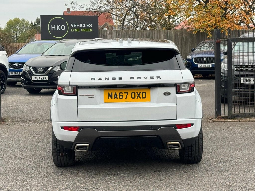 Welcome to HKO Vehicles Lyme Green. We are proud to offer this outstanding 2017 (67) Land Rover Range Rover Evoque 2.0 TD4 HSE Dynamic Lux SUV Auto 4WD Euro 6 (180PS), finished in stunning Fuji White with a luxurious two-tone ivory and grey leather interior. This vehicle combines premium styling with impressive capability, comfort, and performance ? perfectly suited for both urban driving and long-distance journeys. Key Details: ? Registration: MA67OXD ? Year: 2017 (67) ? Mileage: 93,000 miles ? Transmission: Automatic ? Engine: 2.0 TD4 Diesel (Euro 6) ? Drive: 4WD ? Owners: 3 ? Colour: Fuji White Specification & Features: ? Panoramic glass roof ? 19-inch gloss black alloy wheels ? Satellite navigation system ? Premium Meridian sound system ? Two-tone ivory and grey leather interior ? Heated front seats with electric adjustment and memory function ? Dual-zone climate control ? Keyless entry and start ? Cruise control and speed limiter ? Front and rear parking sensors with reversing camera ? Automatic LED headlights and rain-sensing wipers ? Power tailgate ? Bluetooth connectivity and DAB radio ? Ambient interior lighting ? Multi-function steering wheel ? Stop/start system Purchase Benefits from HKO Vehicles: ? AA Approved Dealer ? 12 months free AA Breakdown Cover included with your purchase ? Finance available ? tailored packages to suit your needs ? 12 months MOT ? 3 months warranty for complete peace of mind ? ?75 off your next service an 12-12 Way - Electric Memory Seats, 20in Alloy Wheels - 5 Split Spoke Style , ABS - Anti Lock Braking System, Airbags - Driver Knee, Airbags - Front - Driver and Front Passe, Auto-Dimming Interior Mirror, Bluetooth Telephone Connectivity with St, Body Coloured Door Handles, Body Coloured Roof with Matching Spoiler, CD-DVD Player, Carpet Mats with Edging, Climate Control - Automatic with Air Fil, Climate Control - Rear Vents, Customer Configurable Interior Mood Ligh, DAB - Digital Audio Broadcast, DSC - Dynamic Stability Control, Door Mirrors - Narvik Black, EBA - Emergency Brake Assist, EBD - Electronic Brake-Force Distributio, EPAS - Electronic Power Assisted Steerin, Engine Badge - HSE, Evo