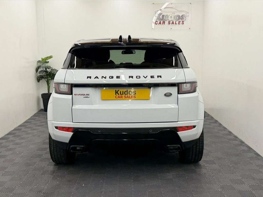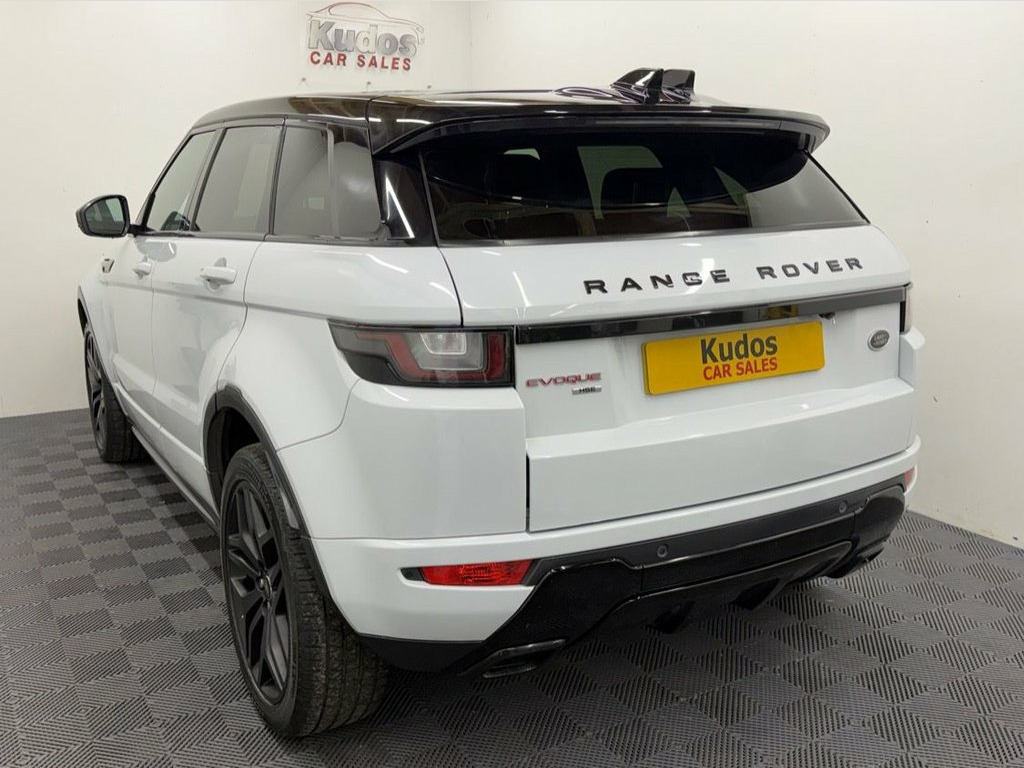 2017 LAND ROVER RANGE ROVER EVOQUE 2.0 TD4 HSE DYNAMIC 5dr Automatic - **OVER £4500 OF FACTORY FITTED EXTRAS**HEAD TURNING CAR, FINISHED IN STUNNING YULONG WHITE PEARL AND PIANO BLACK. NO DEPOSIT FINANCE AVAILABLE. FROM ONLY £230 per mth. 6 MONTH WARRANTY INCLUDED. EACH VEHICLE COMES WITH A FREE HPI CLEAR REPORT AND AA BREAKDOWN COVER. 87000 MILES. FULL SERVICE HISTORY AND RECENTLY SERVICE. MOT UNTIL 08/10/26. SUCH A STUNNING CAR AND REALLY LOVELY TO DRIVE. **HUGE LUXURY SPEC** FULL BLACK LEATHER INTERIOR, 3 SETTING MEMORY ELECTRIC FRONT SEATS, HEATED FRONT SEATS, BLACK PACK, TOUCH SCREEN SAT NAV, REAR PARKING CAMERA, FULL PANORAMIC GLASS ROOF WITH ELEC BLIND, FRONT AND REAR PARKING SENSORS, CRUISE CONTROL, KEYLESS ENTRY, KEYLESS PUSH BUTTON START, ELECTRIC POWER OPEN BOOT, ADJUSTABLE DRIVING MODES, TOUCH SCREEN DISPLAY, MERIDIAN SOUND SYSTEM, INDIVIDUAL CLIMATE CONTROL, XENON LIGHTS, LED DAYTIME LIGHTS, AIRCON, BLUETOOTH, DAB RADIO, POWER FOLDING MIRRORS, ELEC WINDOWS AND MIRRORS. UNMARKED 19'' ALLOY WHEELS. FINANCE PACKAGES - With a number of lenders on board i am able to offer Finance to suit individual circumstances, including Sub Prime. All CARS ARE HPI CHECKED AND CLEAR. WARRANTY - At KUDOS CAR SALES every vehicle comes with a FREE 6 MONTH Warranty. Any repairs under warranty can be carried out at your local garage -Extended warranty available on request at extra cost. PREVIOUS NON SMOKER. 2 KEYS. ***ALL PART EXCHANGE'S CONSIDERED*** 10.2in High Resolution Touch Screen, 12-12 Way - Electric Memory Seats, 14-14 Way - Electric Memory Seats, 19in Alloy Wheels - 7 Split Spoke Style , 20in Alloy Wheels - 5 Split Spoke Style , 360 Park Assist, ABS - Anti Lock Braking System, Airbags - Driver Knee, Airbags - Front - Driver and Front Passe, Auto-Dimming Interior Mirror, Autonomous Emergency Braking, Black Pack, Bluetooth Telephone Connectivity with St, Body Coloured Door Handles, Body Coloured Lower Door Claddings, Body Coloured Roof with Matching Spoiler, Bonnet and Tailgate Badging - Atlas, Carpet Mats with Edging, CD-DVD Player, Climate Control - Automatic with Air Fil, Climate Control - Rear Vents, Customer Configurable Inte