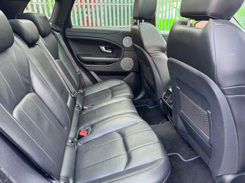 -12 way - electric seats, ambient interior lighting, auto-dimming interior mirror, carpet mats with edging, climate control - automatic with air filtration and automatic recirculation, climate control - rear vents, gesture tailgate, heated front seats, no engine badge, paddle shift and sport mode, rain sensing windscreen wipers and automatic headlights - automatic, rear centre armrest, seats - rear centre head restraint, stainless steel sports pedals, three seat bench - 60-40 split, trim finisher - dark satin brushed aluminium, windsor leather steering wheel with audio controls and cruise control, 19in alloy wheels - 7 split spoke style 707 - gloss dark grey finish, body coloured door handles, body coloured lower door claddings, bonnet and tailgate badging - atlas, carpathian grey contrast roof with matching spoiler, door mirrors - narvik black, dynamic body styling, evoque badge in red, exhaust finishers - dynamic bright, exterior mirrors - electric adjustment-heated-power fold-puddle lamps with projected evoque graphic-direction indicators, fender vent blade - graphite, fixed panoramic roof including powered blind, fog light finisher - graphite, front and rear bumpers - body coloured, front and rear lower bumpers - anthracite, graphite bonnet louvres, grille bars - graphite, grille outer surround - narvik black, grille surround - graphite, locking wheel nuts, parking sensors - body coloured outer - black inner, side sills - anthracite, tailgate finisher in narvik black, tow eye inner front and rear - narvik black, tow eye outer front and rear - carpathian grey, tyre repair system, windscreen - heated, windscreen washer jets - heated, 8in high resolution touch screen, bluetooth telephone connectivity with streamed audio, dab - digital audio broadcast, incontrol protect, incontrol touch - level 1, incontrol touch navigation, usb connectivity, abs - anti lock braking system, airbags - driver knee, airbags - front - driver and front passenger, autonomous emergency braking, dsc - dynamic stability control, eba - emergency brake assist, ebd - electronic brake-force distribution, hdc - hill descent control, hsa - hill start assist, keyless entry, rsc - roll stability control, side curtain airbags and thorax, tcs - traction control system, tsa - trailer stability assist, volumetric alarm, epas - electronic power assisted steering, front and rear parking aid, lane departure warning with autonomous emergency braking, tpms - tyre pressure monitoring system, terrain response, torque vectoring, front fog lights, headlight power wash, headlights - automatic high beam assist, headlights - xenon with automatic levelling and led signature lights