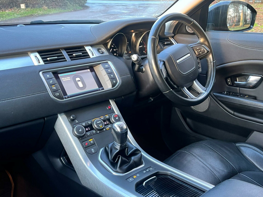 This 2016 Land Rover Range Rover Evoque TD4 SE Tech offers an impressive 59 miles per gallon, making it a highly economical choice. This Four Wheel Drive model features a 2.0L Diesel Engine and meets Euro 6 emissions standards. The SE Tech trim includes a Black Contrast Roof with a Matching Spoiler and Privacy Glass, enhancing its distinctive appearance. For added convenience and safety, it is equipped with a Rear View Camera for parking assistance, Lane Keeping Assist with Lane Departure Warning, Autonomous Emergency Braking, and Attention Assist Estimation.Beyond its stylish design and advanced safety features, this Range Rover Evoque boasts a large boot space, providing ample room for all your needs. Its low CO2 emissions are a testament to its efficient engineering, setting it apart from many other vehicles in its class. This combination of fuel efficiency, practicality, and sophisticated technology makes the 2016 Evoque TD4 SE Tech a compelling option for those seeking a premium and capable SUV., v power socket, 12v socket in loadspace, 3.5mm stereo auxiliary input socket, 5in tft driver information centre, 8in high resolution touch screen, abs - anti lock braking system, am-fm radio, air filtration, air quality sensor, airbags - driver knee, airbags - driver and passenger side, airbags - driver and passenger thorax-head, airbags - full size driver, airbags - full size passenger, alarm, armrest - rear centre with storage compartment and 2 cupholders, audible seat belt warning, audio connectivity system, audio system - dab, auto-dimming interior mirror, automatic headlight levelling, automatic headlights, autonomous emergency braking, bluetooth audio streaming, bluetooth phone connection, body coloured door handles, carpet mats - front and rear with edging - ebony, centre console with sliding armrest, centre console - covered storage compartment, climate control - automatic with air filtration and air quality sensing for automatic recirculation, climate control - rear vents, cruise control, dsc - dynamic stability control, dashboard - ebony, delete engine badge, diesel misfuelling protection device, door armrest - ebony, door inserts - ebony, door mirrors - electric adjustment - heated and power-folding with puddle lights, door mirrors - narvik black, eba - emergency brake assist, ebd - electronic brake-force distribution, edc - engine drag torque control, epas - electronic power assisted steering, epb - electronic park brake, electric windows - front and rear, evoque badge in silver, fender vent blade - narvik black, footwell lights - front, front door puddle lights, front fog lights, front and rear bumpers - body coloured, grille bars - narvik black, grille surround - brunel, hdc - hill descent control, hsa - hill start assist, hazard warning lights under heavy braking, headlight power wash, heated front seats, isofix child seat anchor points, illumination in glovebox, incontrol protect (3 year subscription from new), incontrol remote app essential, incontrol touch - level 1, incontrol touch navigation, interior mood lighting, led front signature lights, land rover - tyre repair system, lane departure warning, load compartment light, locking wheel nuts, luggage compartment - anchor points, multi-function steering wheel, optimised assitance call, oxford leather gear knob, parking aid - front, parking aid - rear, pollen filter, proximity sensing and touch detection for overhead map lights, rsc - roll stability control, rain sensing windscreen wipers, range rover smart key controls - remote lock-unlock-double lock-lights on tailgate open, remote central locking, roof - body coloured, roof spoiler - body coloured, sos emergency call with automatic collision detection, seat stitching - lunar, seats - 3 seat bench in rear, seats - 60/40 split, seats - driver height adjustable, seats - drivers 8-way power adjustment, seats - front passenger 8-way power adjustment, seats - rear centre head restraint, speakers x8, standard driveline, steering column - manual for height and reach adjustment, steering wheel - oxford leather, sun visors - illuminated vanity mirrors, tcs - traction control system, tpms - tyre pressure monitoring system, tsa - trailer stability assist, tailgate finisher in narvik black, terrain response, torque vectoring, trim finisher - satin brushed aluminium, trip computer, usb connectivity, windows - heated rear windscreen, windscreen - heated, windscreen washer jets - heated, xenon headlamps with led signature, 18in alloy wheels - 5 split spoke style 506 - sparkle silver finish, headlining - cirrus morzine, rear view camera, parking aid - rear view camera, lane keeping assist with lane departure warning autonomous emergency braking and attention assist estimation, 18in alloy wheels - 5 split spoke style 506 - sparkle silver finish, black contrast roof with matching spoiler, privacy glass