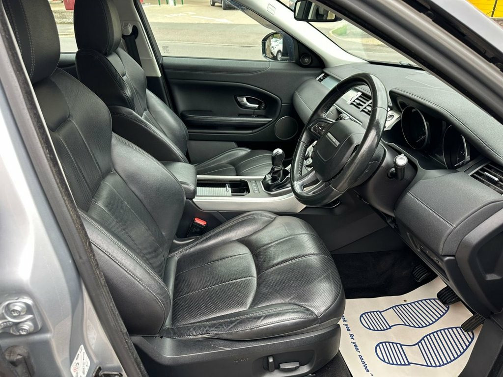 Stylish and reliable Range Rover Evoque (2016) finished in Metallic Silver with black leather interior and 20" gloss black alloys – a real head-turner! Trim Level includes Manual 6 speed Gear box, Rear Parking sensors, Black leather Seats with Electric adjustments, power fold mirrors, Satellite Navigation, Touch Screen DAB radio with BT USB and AUX connection, Cruise Control, Front Fog lights, Multi Functional Steering Wheel, Climate control A/C, Hill Decent Control, Heated front Screen. This Evoque has been well cared for with 6 service stamps, and clean MOTS, If you are looking for a Strong, Efficient and reliable 4Wheel Drive Vehicle for the Winter Months, this is it!! Only £165 per Year Road Tax* Timing Chain Replaced in 29/09/2023 @ 66K**Euro 6 ** Don't Miss This One** 12V Power Socket, 12V Socket in Loadspace, 18in Alloy Wheels - 5 Split Spoke Style , 3.5mm Stereo Auxiliary Input Socket, 5in TFT Driver Information Centre, 8in High Resolution Touch Screen, ABS - Anti Lock Braking System, Air Filtration, Air Quality Sensor, Airbags - Driver and Passenger Side, Airbags - Driver and Passenger Thorax-He, Airbags - Driver Knee, Airbags - Full Size Driver, Airbags - Full Size Passenger, Alarm, AM-FM Radio, Armrest - Rear Centre with Storage Compa, Audible Seat Belt Warning, Audio Connectivity System, Audio System - DAB, Auto-Dimming Interior Mirror, Automatic Headlight Levelling, Automatic Headlights, Autonomous Emergency Braking, Bluetooth Audio Streaming, Blue