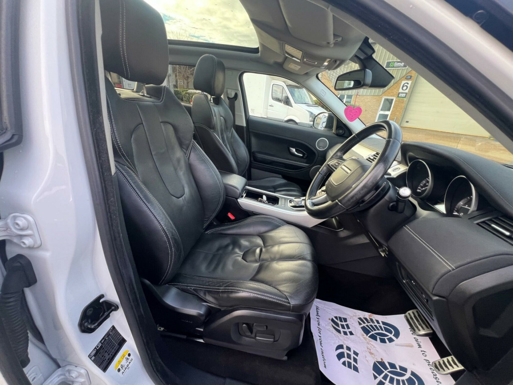 Here at SJS Motor Company, we now offer 12 MONTHS NATIONWIDE WARRANTY with every vehicle sold! This helps us to provide the best quality used vehicles possible, along with the top level of aftercare that you deserve! Every one of our vehicles is prepared to the best of our ability, before it goes on sale. This includes a full on site valet by our in house valeter, as well as any work required on the vehicle to ensure it meets our high standards. All alloy wheels will also be fully refurbished where required.All our vehicles come with service history, and represent excellent value for money as we are constantly checking the price of our vehicles to ensure they are amongst the best value in the market, compared to others of similar age, mileage and specification.When you come to view one of our vehicles, we will ensure you are given the chance to view at your own pace, without any pushy sales tactics. We will be happy to demonstrate anything in the car you would like to see, and once you are happy with the vehicle and what you have seen, we can take it on a test drive to ensure you're happy before your purchase.We will ensure every vehicle purchased comes with a minimum of 6 months MOT as well as our brand new 12 Month Nationwide Warranty. Once the car has received its MOT and Pre-Delivery Inspection, it will be fully re-cleaned to ensure that your new vehicle is as perfect as possible.With our in house Nationwide Warranty, we are able to offer up to a 3 year warranty with our vehicles, at extremely competitive prices, and can offer finance for all situations and great prices.We look forward to seeing you soon, to purchase your new vehicle from SJS Motor Company! speakers, 20in alloy sport style 6 - sparkle silver, 3.5mm stereo auxiliary input socket, 380w meridian surround sound system, 5in tft driver information centre, 8in high resolution touch screen, abs - anti lock braking system, adaptive dynamics, airbags - driver knee, airbags - full size driver, airbags - full size passenger, airbags - full length curtain, alarm system - volumetric, aluminium pedal finisher kit, armrest - rear centre with storage compartment and 2 cupholders, audible seat belt warning, audio connectivity system, audio system - 380 watt meridian sound system with radio and single slot cd, audio system - dab, automatic headlight levelling, automatic headlights, auxiliary heater - electrical positive temperature coefficient, auxillary power sockets - rear and load space, auxillary power sockets - front-rear and load space, bluetooth telephone connectivity, carpet mats with edging, centre console - covered storage compartment, climate control - automatic with air filtration, cornering lights, cruise control, cupholders x2, dsc - dynamic stability control, door mirrors - electrically adjustable - heated and power folding with memory function, dynamic exhaust, dynamic front bumper, dynamic perforated leather gearknob, dynamic perforated leather steering wheel, dynamic rear bumper, dynamic side sills, dynamic grille in narvik black, eba - emergency brake assist, ebd - electronic brake-force distribution, edc - engine drag torque control, epas - electronic power assisted steering, epb - electronic park brake, electric drivers and passenger seat adjustment, evoque badge in red, exterior mirrors - auto dipping in reverse gear, exterior mirror caps in narvik black, four electric windows with one touch opening, front fog lights, global opening for windows - windows open via remote key, hdc - hill descent control, hdd premium navigation with touch screen, hsa - hill start assist, hazard warning lights under heavy braking, headlight power wash, heated front seats, isofix child seat anchor points, illuminated tread plates, illumination - footwell, illumination - front header cour with delay theatre dimming + maplights, illumination - glovebox, illumination - load compartment light, illumination - white lighting in door release and over head console downlighter, interior mood lighting, land rover - tyre repair system, light pipe with controllable colour and intensity x2 - led, locking wheel nuts, luggage compartment - anchor points, luggage cover, lumbar support, mp3 disc and file compatibility, memory and electric passengers recline, parking aid - front, parking aid - rear, parking aid - rear view camera, proximity sensing and touch detection for overhead map lights, push button start, rsc - roll stability control, rain sensing windscreen wipers, range rover smart key controls - remote lock-unlock-double lock-lights on tailgate open, rear spoiler, remote central locking, seats - 60/40 split, seats - rear centre head restraint, side fender blade grille and tailgate finisher in narvik black, side sill mouldings, steering column - manual for height and reach adjustment, steering wheel mounted audio controls, subwoofer, sun visors - illuminated vanity mirrors, tcs - traction control system, tmc - dynamic route guidance, tsa - trailer stability assist, terrain response, textured aluminium centre console finisher and textured aluminium ip finisher, usb connectivity, voice control - say what you see, waist finisher - high gloss black, windows - heated rear windscreen, windscreen - heated, windscreen washer jets - heated, xenon headlamps with led signature