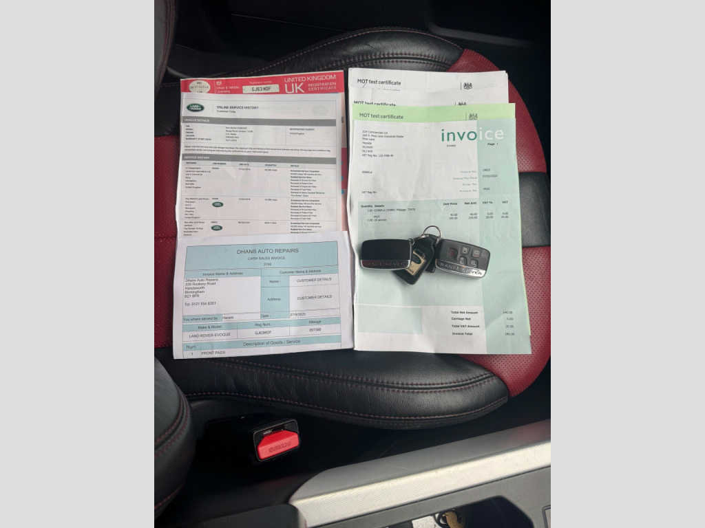 2013 Land Rover/ Range Rover EVOQUE 2.2 SD4 Dynamic SUV with a Diesel Engine and Automatic 4WD Transmission, 97000 Miles Comes With Full Service History, Next Service Due September 2026, Next MOT Due on 07/04/2026. RAC Vehicle Check Report is Available, 20 inch Sport Style Alloy Wheels, Air Conditioning & Climate Control, Cruse Control, Heated Red Leather Seats, Multi Function Steering Wheel, Keyless Start, Electrical Windscreen Washer Jets - Heated, heated door mirrors, Heated Window Screen, Power Folding and Memory Function Seats, Rear Spoiler, Waist finisher - High Gloss Black, 5in TFT Driver Information Centre, 8in High Resolution Touch Screen, Audio Connectivity System, Audio System - 380 Watt Meridian Sound System with Radio and Single Slot CD, Bluetooth Audio Streaming, Bluetooth Telephone Connectivity, DAB Radio, HDD Premium Navigation with Touch Screen, 8/6 Way - Electric driver seat adjustment, Dynamic Stability Control, Emergency Brake Assist, Electronic Brake-Force Distribution, Engine Drag Torque Control, Electronic Park Brake, Hill Descent Control, Hill Start Assist, Hazard Warning Lights Under Heavy Braking, ISOFIX Child Seat Anchor Points, Roll Stability Control, Front & Rear Parking Sensors with Reverse Camera, Range Rover Smart Key Controls, Traction Control System, Trailer Stability Assist, Adaptive Dynamics, Automatic Headlights, Headlight Power Wash, Xenon Headlamps with LED Signature, Delivery Available, Please Call to Arrange a Viewing or Test Drive., in alloy sport style 6 - sparkle silver, door mirrors - electrically adjustable - heated and power folding with memory function, global one-shot open/close windows, land rover - tyre repair system, locking wheel nuts, rear spoiler, waist finisher - high gloss black, windows - heated rear windscreen, windscreen - heated, windscreen washer jets - heated, 5in tft driver information centre, 8in high resolution touch screen, audio connectivity system, audio system - 380 watt meridian sound system with radio and single slot cd, bluetooth audio streaming, bluetooth telephone connectivity, digital audio broadcast radio - dab, hdd premium navigation with touch screen, 8/6 way - electric driver seat adjustment, aluminium pedal finisher kit, armrest - rear centre with storage compartment and 2 cupholders, carpet mat set - front and rear, centre console - covered storage compartment, climate control - automatic with air filtration, headlining - cirrus morzine, heated front seats, illuminated tread plates, illumination - footwell, illumination - glovebox, illumination - load compartment light, illumination - white lighting in door release and over head console downlighter, interior mood lighting, leather steering wheel, luggage compartment - anchor points, luggage cover, multi-function steering wheel, proximity sensing and touch detection for overhead map lights, push button start, rain sensing windscreen wipers, satin brushed aluminium centre console finisher, seats - 3 seat bench in rear, seats - 60/40 split, seats - rear centre head restraint, sun visors - illuminated vanity mirrors, textured aluminium centre console finisher and textured aluminium ip finisher, abs - anti lock braking system, airbags - driver knee, airbags - driver and passenger side, airbags - full size driver, airbags - full size passenger, dsc - dynamic stability control, eba - emergency brake assist, ebd - electronic brake-force distribution, edc - engine drag torque control, epb - electronic park brake, hdc - hill descent control, hsa - hill start assist, hazard warning lights under heavy braking, isofix child seat anchor points, rsc - roll stability control, range rover smart key controls - remote lock-unlock-double lock-lights on tailgate open, tcs - traction control system, tsa - trailer stability assist, adaptive dynamics, cruise control, epas - electronic power assisted steering, parking aid - front, parking aid - rear, parking aid - rear view camera, terrain response, torque vectoring, automatic headlights, front fog lights, headlight power wash, xenon headlamps with led signature