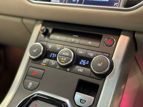 . 10 Speakers, 3.5mm Stereo Auxiliary Input Socket, 380W Meridian Surround Sound System, 5in TFT Driver Information Centre, 8in High Resolution Touch Screen, Audio Connectivity System, Audio System - 380 Watt Meridian Sound System with Radio and Single Slot CD, Audio System - DAB, Auxillary Power Sockets - front-rear and load space, Auxillary Power Sockets - Rear and Load Space, Bluetooth Telephone Connectivity, HDD Premium Navigation with Touch Screen, MP3 disc and file compatibility, Subwoofer, USB Connectivity, Cruise Control, Parking Aid - Front, Parking Aid - Rear, Parking Aid - Rear View Camera, Terrain Response, TMC - Dynamic route guidance, Voice Control - Say What You See, 19in Alloy Style 5 - sparkle silver, Door Mirrors - Electrically Adjustable - Heated and Power Folding with Memory Function, Evoque Badge in Silver, Exterior Mirrors - Auto Dipping in Reverse Gear, Four electric windows with one touch opening, Global opening for windows - windows open via remote key, Grille in Atlas, Land Rover - Tyre Repair System, Locking Wheel Nuts, Rear spoiler, Side fender blade lower door cladding insert and tailgate finisher in Atlas, Waist finisher - Bright Finisher, Windows - Heated Rear Windscreen, Windscreen - Heated, Windscreen Washer Jets - Heated, Automatic Headlight Levelling, Automatic Headlights, Cornering Lights, Front Fog Lights, Headlight Power Wash, Xenon Headlamps with LED Signature, Armrest - Rear Centre with Storage Compartment and 2 Cupholders, Auxiliary Heater - Electrical Positive Temperature Coefficient, Carpet Mats - Premium - Front and rear, Centre console - Covered Storage Compartment, Chrome Treadplates, Climate Control - Automatic with Air Filtration, Cupholders x2, Electric drivers and passenger seat adjustment, Heated Front Seats, Illumination - Footwell, Illumination - Front Header Cour with delay Theatre dimming + Maplights, Illumination - Glovebox, Illumination - Load Compartment Light, Illumination - White Lighting in door release and over head console downlighter, Interior Mood Lighting, Leather Gear Knob, Leather Steering Wheel, Light Pipe with Controllable Colour and Intensity x2 - LED, Luggage Compartment - Anchor Points, Luggage Cover, Lumbar Support, Memory and electric passengers recline, Proximity Sensing and Touch Detection For Overhead Map Lights, Push Button Start, Rain Sensing Windscreen Wipers, Satin Brushed Aluminium Centre Console Finisher and Satin Brushed Aluminium IP Finisher, Seats - 60/40 Split, Seats - Rear Centre Head Restraint, Steering Column - Manual For Height and Reach Adjustment, Steering Wheel Mounted Audio Controls, Sun Visors - Illuminated Vanity Mirrors, EPAS - Electronic Power Assisted Steering, ABS - Anti Lock Braking System, Airbags - Driver Knee, Airbags - full length curtain, Airbags - Full Size Driver, Airbags - Full Size Passenger, Alarm System - Volumetric, Audible Seat Belt Warning, DSC - Dynamic Stability Control, EBA - Emergency Brake Assist, EBD - Electronic Brake-Force Distribution, EDC - Engine Drag Torque Control, EPB - Electronic Park Brake, Hazard Warning Lights Under Heavy Braking, HDC - Hill Descent Control, HSA - Hill Start Assist, ISOFIX Child Seat Anchor Points, Range Rover Smart Key Controls - Remote lock-Unlock-Double Lock-Lights on Tailgate Open, Remote Central Locking, RSC - Roll Stability Control, TCS - Traction Control System, TSA - Trailer Stability Assist.