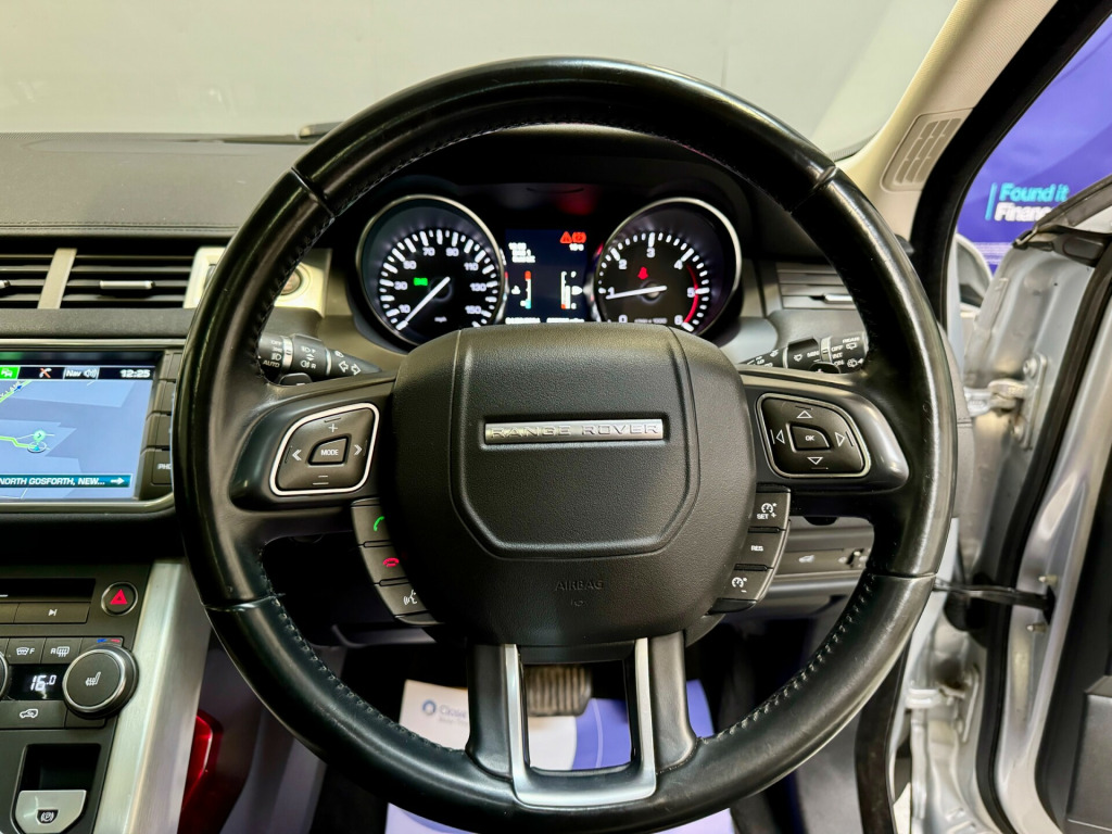 PARC LANE CARS OF GOSFORTH PRESENT THIS BEAUTIFUL 3 DOOR RANGE ROVER EVOQUE AUTOMATIC. FINISHED IN INDUS SILVER METALLIC WITH STUNNING EBONY GRAINED LEATHER!THIS EVOQUE HAS COVERED ONLY 79,100 MILES AND COMES WITH A COMPREHENSIVE SERVICE HISTORY, SERVICED AT THE FOLLOWING INTERVALS;10 MILES - PDI - 07/10/2014 - LAND ROVER8753 MILES - 05/10/2015 - LAND ROVER21406 MILES - 12/10/2016 - LAND ROVER40367 MILES - 18/12/2017 - LAND ROVER55559 MILES - 11/10/2019 - LAND ROVER59336 MILES - 17/03/2021 - INDEPENDENT64734 MILES - 07/03/2022 - INDEPENDENTSUPPLIED WITH 2 REMOTE KEYS AND FITTED WITH £4000 OF THE FOLLOWING FACTORY EXTRAS;Roof - Fixed Panoramic including Power BlindsMetallic paintContrast painted roof with matching spoiler (Santorini Black)Tyre Pressure Monitoring SystemPrivacy GlassFog Lamps - FrontSpare Wheel - Temporary steel 18'' (155/85) ilo Tyre Repair SystemHeadlamps AutomaticEbony Grained LeatherIndus Silver MetallicSatin Brushed AluminiumTHIS CAR IS SIMPLY STUNNING AND IS NOT TO BE MISSED!!FINANCE IS AVAILABLE AND PART EXCHANGE IS WELCOMEREG NO. DS64 WZG uetooth telephone connectivity, cruise control, drive select with paddle shift and sport mode, dynamic route guidance, epas, front parking aid, hdd premium navigation, audio server and cd storage, push button starter, rear parking aid, service interval indicator, trip computer, voice control system, diesel particulate filter, terrain response, audio connectivity system, auxiliary audio jack, dab digital radio, steering wheel mounted audio/cruise controls, usb connection, automatic headlamp activation, body coloured bumpers, dark atlas tailgate finish, heated rear windscreen, heated windscreen, heated windscreen washers, power front/rear windows with global close, rain sensor windscreen wipers, rear spoiler, rear wiper, trailer stability assist, 12v power point front, 12v power point in luggage area, 60/40 split folding rear seat, auto climate control with air filtration, auxiliary heater, centre console storage with lid, driver/passenger sunvisors and illuminated vanity mirrors, footwell illumination, front centre armrest, front head restraints, height/reach adjustable steering column, illuminated glovebox, interior mood lighting, isofix child seat preparation, lashing points, leather steering wheel, leather upholstery, luggage compartment lighting, luggage cover, proximity sensing and touch detection for overhead map lights, rear headrests, abs, driver and passenger airbags, drivers knee airbag, dsc - dynamic stability control, electronic parking brake, front seatbelt pretensioners with force limiters, front side airbags with curtain airbags, hill descent control, hill start assist, roll stability control, seatbelt warning, traction control, tyre pressure monitoring system, alarm, immobiliser, locking wheel nuts, remote central locking, satin brushed aluminium inserts, 18'' Alloys