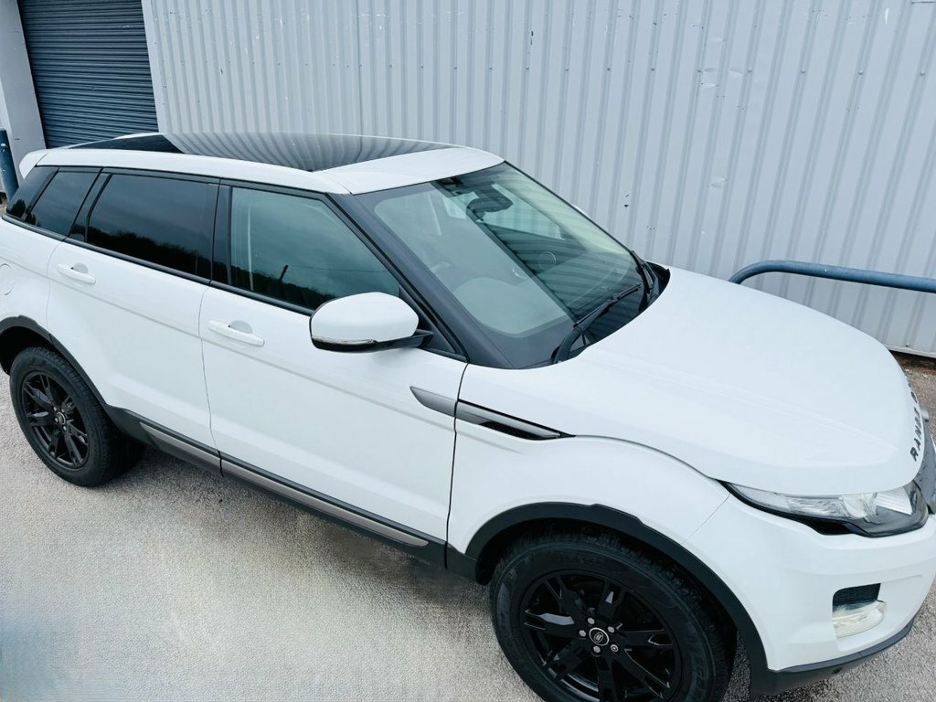 1 Owner Car LAND ROVER RANGE ROVER EVOQUE 2.2 SD4 Pure with Tech Pack worth £2000 in FuJi White with Full Black Heated Leather Seats. Interior Features include - Full Colour Satellite Navigation, DAB Digital Radio, Bluetooth Phone Connectivity with Music Streaming through the Meridian Surround Sound Speaker System, Multi - Function steering Wheel with Cruise Control, Interior Ambient Mood Lighting, Auto Headlights. To the Exterior there is a Glass Panoramic Roof With a Power Blind making this stunning 1 Owner Range Rover Evoque feel light and airy. The Sporty Looks is Complemented with a Contrast Roof and Spoiler and sits on 19" Black 7 Spoke Alloy Wheels, Additional Exterior Features include Black Electric and Folding Door Mirrors with an Evoque Puddle Light that shows on the Floor at night time, Front Fog Lights and a Heated Front and Rear Windscreen. This Sporty Looking Evoque is a rare find and is Complemented with Low Miles, Full Service History - Last Service October 2025, 12 Month MOT with No Advisories, Cam Belt has been replaced, 2 Keys and 3 Month Warranty. ***** We have over 650 Five Star Reviews on Auto Trader ***** and Highly Rated Award Winner for the 8th Year Running for Customer Service. Call Adrian on 07831 695 637 Tech Pack, Door Mirrors - Electric Adjustment - Hea, Grained Leather - Ebony/Ebony, Automatic Headlights, Front Fog Lights, Rain Sensing Windscreen Wipers, Auto-Dimming Interior Mirror, Glass - Privacy - Rear of B Post, Roof - Fixed Panoramic, Contrast Painted Roof with Matching Spoi, 19in Alloy Style 5 - sparkle silver, 10 Speakers, 18in Alloy Style 2 - Sparkle Silver, 3.5mm Stereo Auxiliary Input Socket, 380W Meridian Surround Sound System, 5in TFT Driver Information Centre, 8in High Resolution Touch Screen, ABS - Anti Lock Braking System, Airbags - Driver Knee, Airbags - Full Size Driver, Airbags - Full Size Passenger, Airbags - full length curtain, Alarm System - Volumetric, Armrest - Re