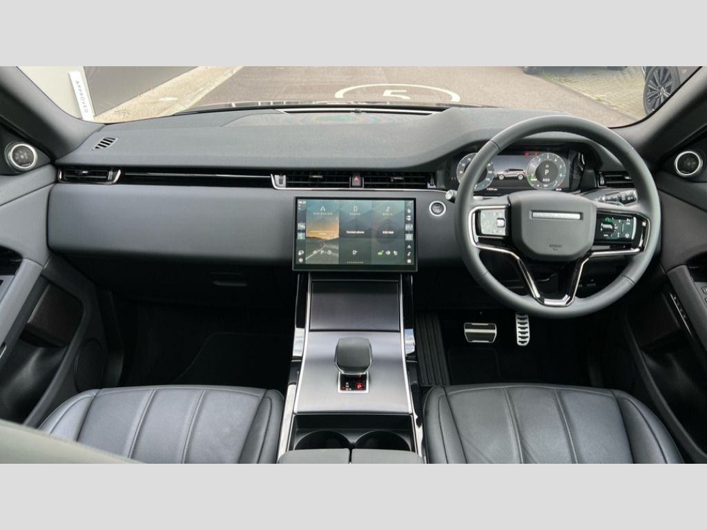 Land Rover Range Rover Evoque 1.5 P270e Edition 5dr Auto 11.4" touch screen, 3D 360 degree surround camera with wade sensing, Adaptive cruise control, Android Auto, Apple car play, Blind spot assist, Bluetooth connectivity, Brake pad wear indicator warning light, Driver condition monitor, eCall emergency system, Eco mode, Electronic power assisted steering (EPAS), Front and rear parking aid, InControl remote, Interactive driver display, Land Rover InControl apps, Lane keep assist, Pivi pro connected includes diamond pivi variant, smart settings, connected navigation pro, nuance speech licence, Powered tailgate/boot lid, Rear collision monitor, Rear traffic monitor, Tailgate, Traffic sign recognition with adaptive speed limiter, Voice control system, Wireless device charging, All terrain progress control, Electric rear axle drive, Home charging cable, Large fuel tank, Passive suspension, Public charging cable, Terrain Response 2, Digital Audio Broadcast radio-DAB, Meridian sound system with 400W subwoofer and 11 speakers, Steering wheel mounted controls, Acoustic laminated windscreen, Auto dimming interior rear view mirror, Auto headlights, Auto high beam assist, Automatic headlight levelling, Black contrast roof, Electric windows with one touch open/close and anti trap, Fixed panoramic sunroof with powered sunblind, Flush deployable exterior door handles, Front and rear recovery eyes, Heated rear window with timer, Heated washer jets, Heated windscreen, LED headlights with signature DRL and LED tail Lights, Metallic paint, Power fold, auto-dimming, heated door mirrors with approach lights and auto dimming driver side, Privacy glass, Rain sensing windscreen wipers, Rear animated directional indicators, Rear fog lights, Rear side wing doors, Rear wiper, Tailgate spoiler, Third brake light, Winter wiper park position, 12 way driver memory and 10 way passenger electric front seats with 2 way manual headrest + 4 way lumbar support, 40:20:40 split folding rear seats with centre headrest and armrest, Bright metal pedals, Cabin lighting, Carpet mats, Chrome tread plates with range rover branding Includes stainless steel loadspace scuff plate with etched graphic, Customer configurable single point entry, Front and rear cupholders, Grained Leather upholstery, Heated front seats, Heated steering wheel, Isofix system on outer rear seats, Manually adjustable steering column, Overhead lighting console, Overhead stowage for sunglasses, Passive front head restraints, Rear air vents, Rear head restraints, Satin chrome gearshift paddles, Single passenger seat, Standard steering wheel with Moonlight Bezel, Sunvisors with illuminated vanity mirrors, Twin sliding front centre armrest, Two zone climate control, Black exterior styling pack - Evoque, Power socket pack 2 - Evoque, 3 rear 3 point seatbelts, Anti-lock braking system (ABS), Black brake calipers, Brake hold function, Customer configurable autolock, DSC - Dynamic Stability Control, Electronic brake force distribution, Electronic parking brake, Electronic traction control, Emergency braking, Front and rear seatbelt reminder, Hill descent control, Hill launch assist, Low traction launch, Occupant protection assist, Passenger seat occupant detector, Power operated child locks, Roll stability control, Six airbags - Driver and passenger airbags/driver knee airbag/front side airbag and curtain airbags, Torque vectoring brake, Tyre pressure monitoring system, Alarm, Immobiliser, Intrusion sensor, Keyless entry, Locking wheel nuts, Secure tracker pro, Black brushed aluminium finisher, 19" gloss black alloy wheels - Style 5136, All season tyres, Tyre repair system
