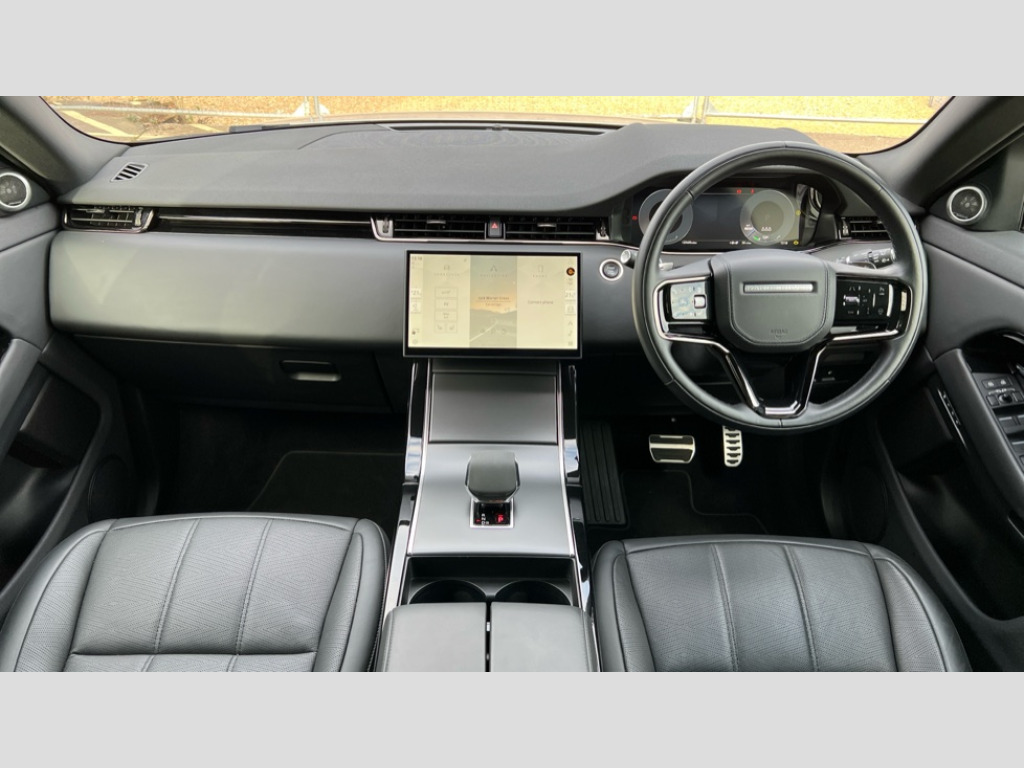 Land Rover Range Rover Evoque 1.5 P300e Dynamic HSE 5dr Auto 11.4" touch screen, Adaptive cruise control, Android Auto, Apple car play, Blind spot assist, Bluetooth connectivity, Brake pad wear indicator warning light, Driver condition monitor, eCall emergency system, Eco mode, Electronic power assisted steering (EPAS), Front and rear parking aid, InControl remote, Interactive driver display, Land Rover InControl apps, Lane keep assist, Pivi pro connected includes diamond pivi variant, smart settings, connected navigation pro, nuance speech licence, Powered tailgate/boot lid, Rear collision monitor, Rear traffic monitor, Traffic sign recognition with adaptive speed limiter, Voice control system, Wireless device charging, All terrain progress control, Electric rear axle drive, Home charging cable, Large fuel tank, Passive suspension, Public charging cable, Terrain Response 2, Digital Audio Broadcast radio-DAB, Steering wheel mounted controls, Acoustic laminated windscreen, Auto headlights, Automatic headlight levelling, Electric windows with one touch open/close and anti trap, Flush deployable exterior door handles, Front and rear recovery eyes, Front fog lights, Heated rear window with timer, Heated washer jets, Heated windscreen, Pixel LED headlights with signature DRL and LED tail Lights, Power fold, auto-dimming, heated door mirrors with approach lights and auto dimming driver side, Rain sensing windscreen wipers, Rear animated directional indicators, Rear fog lights, Rear side wing doors, Rear wiper, Side repeater indicators in mirror, Tailgate spoiler, Third brake light, Winter wiper park position, 14 way driver memory electric front seats with 2 way manual headrests + 4 way lumbar support, bolsters, 40:20:40 split folding rear seats with centre headrest and armrest, Ambient interior lighting, Bright metal pedals, Carpet mats, Chrome tread plates with range rover branding Includes stainless steel loadspace scuff plate with etched graphic, Customer configurable single point entry, Electrically adjustable steering column with memory function and easy entry/exit, Front and rear cupholders, Heated steering wheel, Isofix system on outer rear seats, Overhead lighting console, Overhead stowage for sunglasses, Passive front head restraints, Rear air vents, Rear head restraints, Satin chrome gearshift paddles, Single passenger seat, Sunvisors with illuminated vanity mirrors, Twin sliding front centre armrest, Online pack with data plan - Evoque, Power socket pack 2 - Evoque, 3 rear 3 point seatbelts, Anti-lock braking system (ABS), Brake hold function, Customer configurable autolock, DSC - Dynamic Stability Control, Electronic brake force distribution, Electronic parking brake, Electronic traction control, Emergency braking, Front and rear seatbelt reminder, Hill descent control, Hill launch assist, Low traction launch, Occupant protection assist, Passenger seat occupant detector, Power operated child locks, Roll stability control, Six airbags - Driver and passenger airbags/driver knee airbag/front side airbag and curtain airbags, Torque vectoring brake, Tyre pressure monitoring system, Alarm, Immobiliser, Intrusion sensor, Keyless entry, Locking wheel nuts