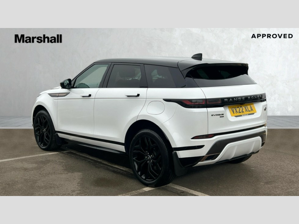 Land Rover Range Rover Evoque 1.5 P300e R-Dynamic SE 5dr Auto Android Auto, Apple car play, Blind spot assist, Bluetooth connectivity, Brake pad wear indicator warning light, Clear exit monitor, Driver condition monitor, eCall emergency system, Electronic power assisted steering (EPAS), Front and rear parking aid, InControl remote, Land Rover InControl apps, Lane keep assist, Pivi pro connected includes upgraded infotainment, connected navigation pro, Nuance speech licence, Push button starter, Rear traffic monitor, Traffic sign recognition with adaptive speed limiter, Voice control system, 7 kW onboard charger, All terrain progress control, Electric rear axle drive, Home charging cable, Large fuel tank, Passive suspension, Public charging cable, Terrain Response 2 Auto, Digital Audio Broadcast radio-DAB, Steering wheel mounted controls, Auto headlights, Automatic headlight levelling, Electric windows with one touch open/close and anti trap, Evoque and R-Dynamic badge, Flush deployable exterior door handles, Heated rear window with timer, Heated washer jets, Heated windscreen, P300e badge, Power fold, auto-dimming, heated door mirrors with approach lights and auto dimming driver side, Rain sensing windscreen wipers, Rear fog lights, Rear side wing doors, Rear wiper, Tailgate spoiler, Third brake light, 40:20:40 split folding rear seats with centre headrest and armrest, Ambient interior lighting, Bright metal pedals, Isofix system on outer rear seats, Overhead lighting console, Overhead stowage for sunglasses, Passive front head restraints, Rear air vents, Rear centre headrest, Rear head restraints, Satin chrome gearshift paddles, Single passenger seat, Sunvisors with illuminated vanity mirrors, Twin sliding front centre armrest, 3 rear 3 point seatbelts, Anti-lock braking system (ABS), Customer configurable autolock, DSC - Dynamic Stability Control, Electronic brake force distribution, Electronic parking brake, Electronic traction control, Emergency braking, Front and rear seatbelt reminder, Hill descent control, Hill launch assist, Low traction launch, Power operated child locks, Roll stability control, Six airbags - Driver and passenger airbags/driver knee airbag/front side airbag and curtain airbags, Torque vectoring brake, Tyre pressure monitoring system, Alarm, Immobiliser, Intrusion sensor, Keyless entry, Locking wheel nuts