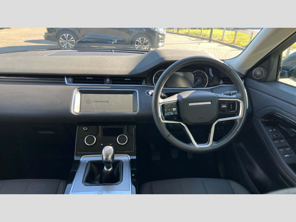 Land Rover Range Rover Evoque 2.0 D165 5dr 2WD 10" touch screen, Android Auto, Apple car play, Bluetooth connectivity, Brake pad wear indicator warning light, Cruise control + speed limiter, Driver condition monitor, eCall emergency system, Electronic power assisted steering (EPAS), Front and rear parking aid, InControl remote, Land Rover InControl apps, Lane keep assist, Push button starter, Voice control system, Passive suspension, Terrain Response 2, Digital Audio Broadcast radio-DAB, Steering wheel mounted controls, Auto headlights, Daytime running lights, Electric windows with one touch open/close and anti trap, Evoque badge, Flush deployable exterior door handles, Heated rear window with timer, Rain sensing windscreen wipers, Rear fog lights, Rear side wing doors, Rear wiper, Tailgate spoiler, Third brake light, 40:20:40 split folding rear seats with centre headrest and armrest, Ambient interior lighting, Isofix system on outer rear seats, Overhead lighting console, Overhead stowage for sunglasses, Passive front head restraints, Rear air vents, Rear centre headrest, Rear head restraints, Single passenger seat, Sunvisors with illuminated vanity mirrors, Twin sliding front centre armrest, 3 rear 3 point seatbelts, Anti-lock braking system (ABS), Customer configurable autolock, DSC - Dynamic Stability Control, Electronic brake force distribution, Electronic parking brake, Electronic traction control, Emergency braking, Front and rear seatbelt reminder, Hill launch assist, Power operated child locks, Roll stability control, Six airbags - Driver and passenger airbags/driver knee airbag/front side airbag and curtain airbags, Tyre pressure monitoring system, Alarm, Immobiliser, Intrusion sensor, Locking wheel nuts