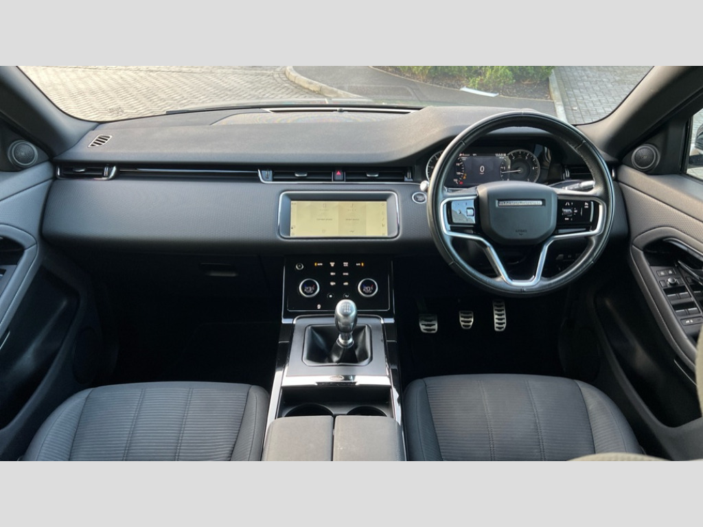 Land Rover Range Rover Evoque 2.0 D165 R-Dynamic 5dr 2WD 10" touch screen, Android Auto, Apple car play, Bluetooth connectivity, Brake pad wear indicator warning light, Cruise control + speed limiter, Driver condition monitor, Electronic power assisted steering (EPAS), Front and rear parking aid, InControl remote, Land Rover InControl apps, Lane keep assist, Push button starter, Voice control system, Passive suspension, Digital Audio Broadcast radio-DAB, Steering wheel mounted controls, Electric windows with one touch open/close and anti trap, Evoque and R-Dynamic badge, Flush deployable exterior door handles, Heated rear window with timer, Heated washer jets, Heated windscreen, Rain sensing windscreen wipers, Rear fog lights, Tailgate spoiler, 40:20:40 split folding rear seats with centre headrest and armrest, Ambient interior lighting, Bright metal pedals, Isofix system on outer rear seats, Overhead lighting console, Overhead stowage for sunglasses, Passive front head restraints, Rear air vents, Rear centre headrest, Sunvisors with illuminated vanity mirrors, Twin sliding front centre armrest, 3 rear 3 point seatbelts, Anti-lock braking system (ABS), Customer configurable autolock, DSC - Dynamic Stability Control, Electronic brake force distribution, Electronic parking brake, Electronic traction control, Emergency braking, Front and rear seatbelt reminder, Hill launch assist, Power operated child locks, Roll stability control, Six airbags - Driver and passenger airbags/driver knee airbag/front side airbag and curtain airbags, Tyre pressure monitoring system, Alarm, Immobiliser, Intrusion sensor, Locking wheel nuts