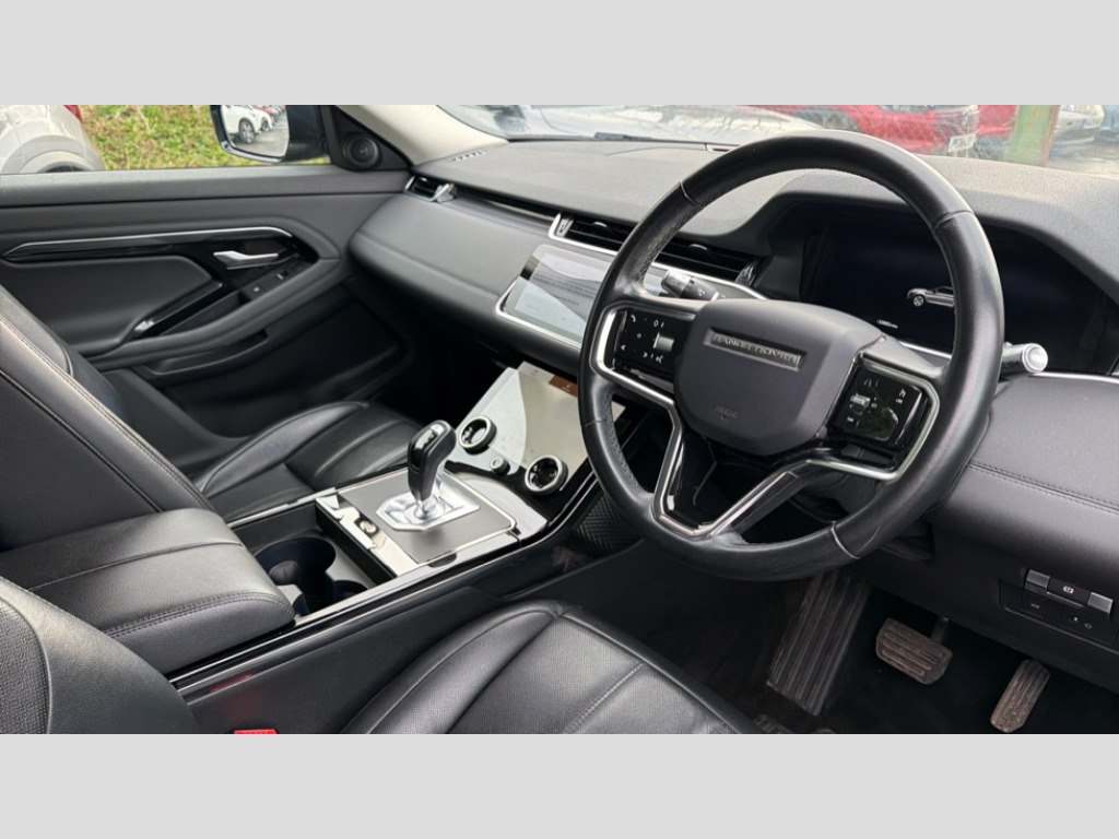 Land Rover Range Rover Evoque 2.0 D165 SE 5dr Auto 3D 360 degree surround camera, Android Auto, Apple car play, Blind spot assist, Bluetooth connectivity, Brake pad wear indicator warning light, Clear exit monitor, Driver condition monitor, Duo touch pro, eCall emergency system, Electronic power assisted steering (EPAS), InControl remote, Interactive Driver display instrument cluster, Land Rover InControl apps, Lane keep assist, Pivi pro connected includes upgraded infotainment, connected navigation pro, Nuance speech licence, Push button starter, Rear traffic monitor, Traffic sign recognition with adaptive speed limiter, Voice control system, Wade Sensing, All terrain progress control, Efficient Driveline, Passive suspension, Terrain Response 2 Auto, Digital Audio Broadcast radio-DAB, Steering wheel mounted controls, Animated directional indicators, Auto headlights, Automatic headlight levelling, Electric windows with one touch open/close and anti trap, Evoque badge, Flush deployable exterior door handles, Heated rear window with timer, Heated washer jets, Heated windscreen, Power fold, auto-dimming, heated door mirrors with approach lights and auto dimming driver side, Rain sensing windscreen wipers, Rear fog lights, Rear side wing doors, Rear wiper, Tailgate spoiler, Third brake light, 40:20:40 split folding rear seats with centre headrest and armrest, Ambient interior lighting, Isofix system on outer rear seats, Overhead lighting console, Overhead stowage for sunglasses, Passive front head restraints, Rear air vents, Rear centre headrest, Rear head restraints, Single passenger seat, Sunvisors with illuminated vanity mirrors, Twin sliding front centre armrest, 3 rear 3 point seatbelts, Anti-lock braking system (ABS), Customer configurable autolock, DSC - Dynamic Stability Control, Electronic brake force distribution, Electronic parking brake, Electronic traction control, Emergency braking, Front and rear seatbelt reminder, Hill descent control, Hill launch assist, Low traction launch, Power operated child locks, Roll stability control, Six airbags - Driver and passenger airbags/driver knee airbag/front side airbag and curtain airbags, Torque vectoring brake, Tyre pressure monitoring system, Alarm, Immobiliser, Intrusion sensor, Locking wheel nuts