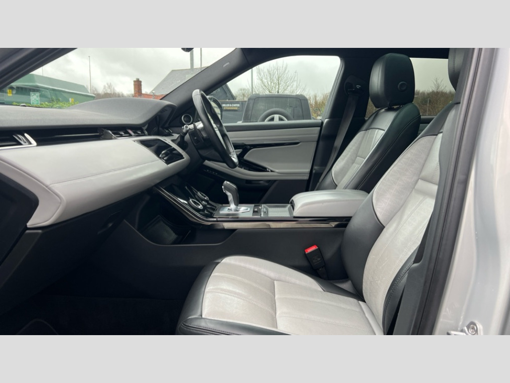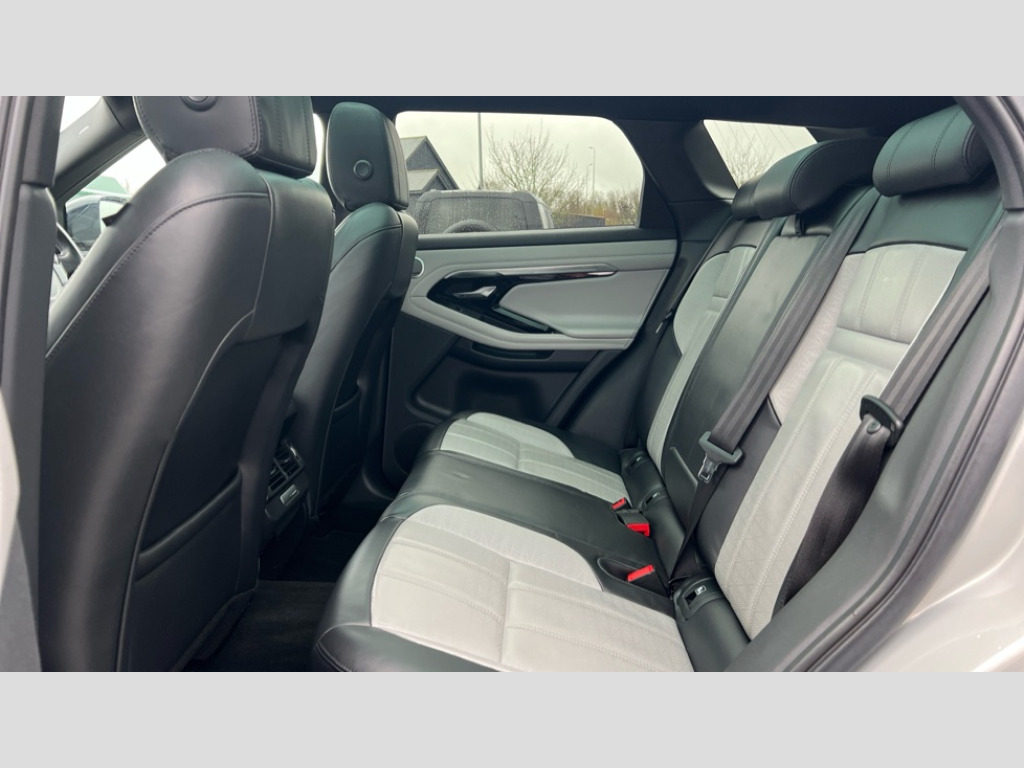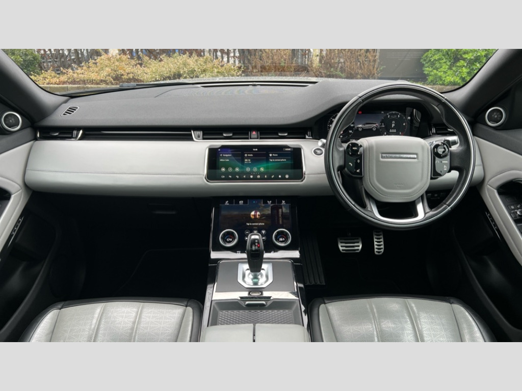 Land Rover Range Rover Evoque 2.0 D180 R-Dynamic HSE 5dr Auto 360 degree parking aid, Adaptive cruise control, Android Auto, Apple car play, Blind spot assist, Bluetooth connectivity, Brake pad wear indicator warning light, Clear exit monitor, Driver condition monitor, Duo touch pro, Electronic power assisted steering (EPAS), InControl remote, Interactive Driver display instrument cluster, Land Rover InControl apps, Lane keep assist, Navigation pro system, Park assist - Parallel, perpendicular and parking exit, Powered gesture tailgate/boot lid, Pro services and wifi hotspot, Push button starter, Rear traffic monitor, Smart settings, Traffic sign recognition with adaptive speed limiter, Voice control system, All terrain progress control, Efficient Driveline, Passive suspension, Terrain Response 2 Auto, Digital Audio Broadcast radio-DAB, Steering wheel mounted controls, Automatic headlight levelling, ClearSight interior rear view mirror, Electric windows with one touch open/close and anti trap, Evoque and R-Dynamic badge, Flush deployable exterior door handles, Heated rear window with timer, Heated washer jets, Heated windscreen, Power fold, auto-dimming, heated door mirrors with memory and approach lights, Rain sensing windscreen wipers, Rear fog lights, Shadow atlas bonnet and tailgate script, Tailgate spoiler, 40:20:40 split folding rear seats, Black gearshift paddles, Bright metal pedals, Isofix system on outer rear seats, Overhead lighting console, Overhead stowage for sunglasses, Passive front head restraints, Rear air vents, Rear centre headrest, Sunvisors with illuminated vanity mirrors, Twin front cupholders with cover, Twin sliding front centre armrest, Two zone climate control, Anti-lock braking system (ABS), Customer configurable autolock, DSC - Dynamic Stability Control, Electronic brake force distribution, Electronic parking brake, Electronic traction control, Front and rear seatbelt reminder, High speed emergency braking, Hill descent control, Hill launch assist, Low traction launch, Power operated child locks, Roll stability control, Six airbags - Driver and passenger airbags/driver knee airbag/front side airbag and curtain airbags, Torque vectoring brake, Tyre pressure monitoring system, Alarm, Immobiliser, Intrusion sensor, Keyless entry, Locking wheel nuts
