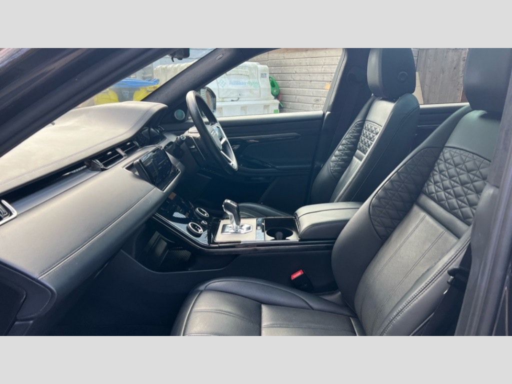 Land Rover Range Rover Evoque 2.0 D200 Autobiography 5dr Auto 10" deployable touchscreen with lower touchscreen, Adaptive cruise control, Android Auto, Apple car play, Blind spot assist, Bluetooth connectivity, Brake pad wear indicator warning light, Clear exit monitor, Driver condition monitor, eCall emergency system, Electronic power assisted steering (EPAS), Front and rear parking aid, InControl remote, Land Rover InControl apps, Lane keep assist, Pivi pro connected includes upgraded infotainment, connected navigation pro, Nuance speech licence, Powered gesture tailgate/boot lid, Push button starter, Rear collision monitor, Rear traffic monitor, Traffic sign recognition with adaptive speed limiter, Voice control system, Adaptive dynamics, All terrain progress control, Configurable dynamics, Efficient Driveline, Terrain Response 2 Auto, Digital Audio Broadcast radio-DAB, Meridian surround sound system with 650W subwoofer and 14 speakers, Steering wheel mounted controls, Auto headlights, Autobiography badge, Automatic headlight levelling, ClearSight interior rear view mirror, Electric windows with one touch open/close and anti trap, Evoque and R-Dynamic badge, Flush deployable exterior door handles, Heated rear window with timer, Heated washer jets, Heated windscreen, Matrix LED headlights with signature DRL, intelligent high beam assist, signature Hi-Line tail lights and animated directional indicators, Power fold, auto-dimming, heated door mirrors with approach lights and auto dimming driver side, R-Dynamic branding illuminated metal tread plates in loadspace and row 1 with brand name script and non illuminated metal in row 2, Rain sensing windscreen wipers, Rear fog lights, Rear side wing doors, Rear wiper, Tailgate spoiler, Third brake light, 14 way electric heated/cooled front and rear seats with driver memory, 2 way man headrest, electric 4 way lumbar support, bolsters + headrest adj, 40:20:40 split folding rear seats with centre headrest and armrest, Ambient interior lighting, Bright metal pedals, Electrically adjustable steering column with memory function and easy entry/exit, Full extended leather upgrade, Heated steering wheel, Isofix system on outer rear seats, Overhead lighting console, Overhead stowage for sunglasses, Passive front head restraints, Perforated full leather steering wheel, Premium cabin lighting, Premium carpet mats, Rear air vents, Rear centre headrest, Rear head restraints, Satin chrome gearshift paddles, Single passenger seat, Sunvisors with illuminated vanity mirrors, Twin sliding front centre armrest, 3 rear 3 point seatbelts, Anti-lock braking system (ABS), Customer configurable autolock, DSC - Dynamic Stability Control, Electronic brake force distribution, Electronic parking brake, Electronic traction control, Emergency braking, Front and rear seatbelt reminder, Hill descent control, Hill launch assist, Low traction launch, Power operated child locks, Red brake calipers, Roll stability control, Six airbags - Driver and passenger airbags/driver knee airbag/front side airbag and curtain airbags, Torque vectoring brake, Tyre pressure monitoring system, Alarm, Immobiliser, Intrusion sensor, Keyless entry, Locking wheel nuts